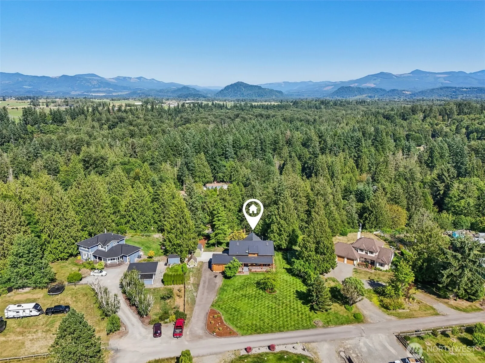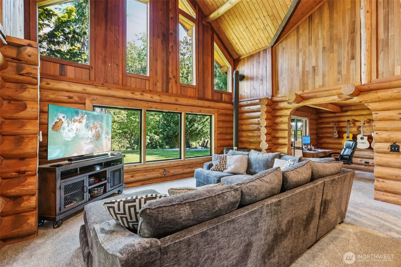 Buckley Meadows offers a unique 1 acre opportunity w/ a Custom Built 3 bedroom LOG HOME, close to amenities in town while maintaining a quiet COUNTRY Lifestyle. This home offers SERENE panoramic mt. views from several areas of the property. This well maintained home Features Interior: carved-out doorways, Single Pole Timber Beams w/ soaring ceilings heights & refreshed wood finishings. The view from the Great room includes tall timber, & mountain peaks w/ a cozy freestanding fireplace. Head thru to the office area offering versatility. Primary Bedroom is located on the main floor includes Full Ensuite Bathrm w/shared acces for main use. Head upstairs for a lofty feel to the 3 bedrooms w/ bonus room. Home has A/C, RV parking & Garage.