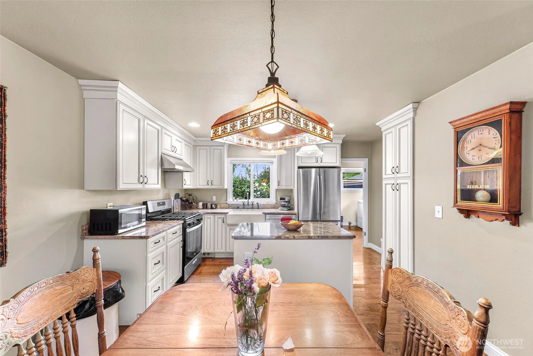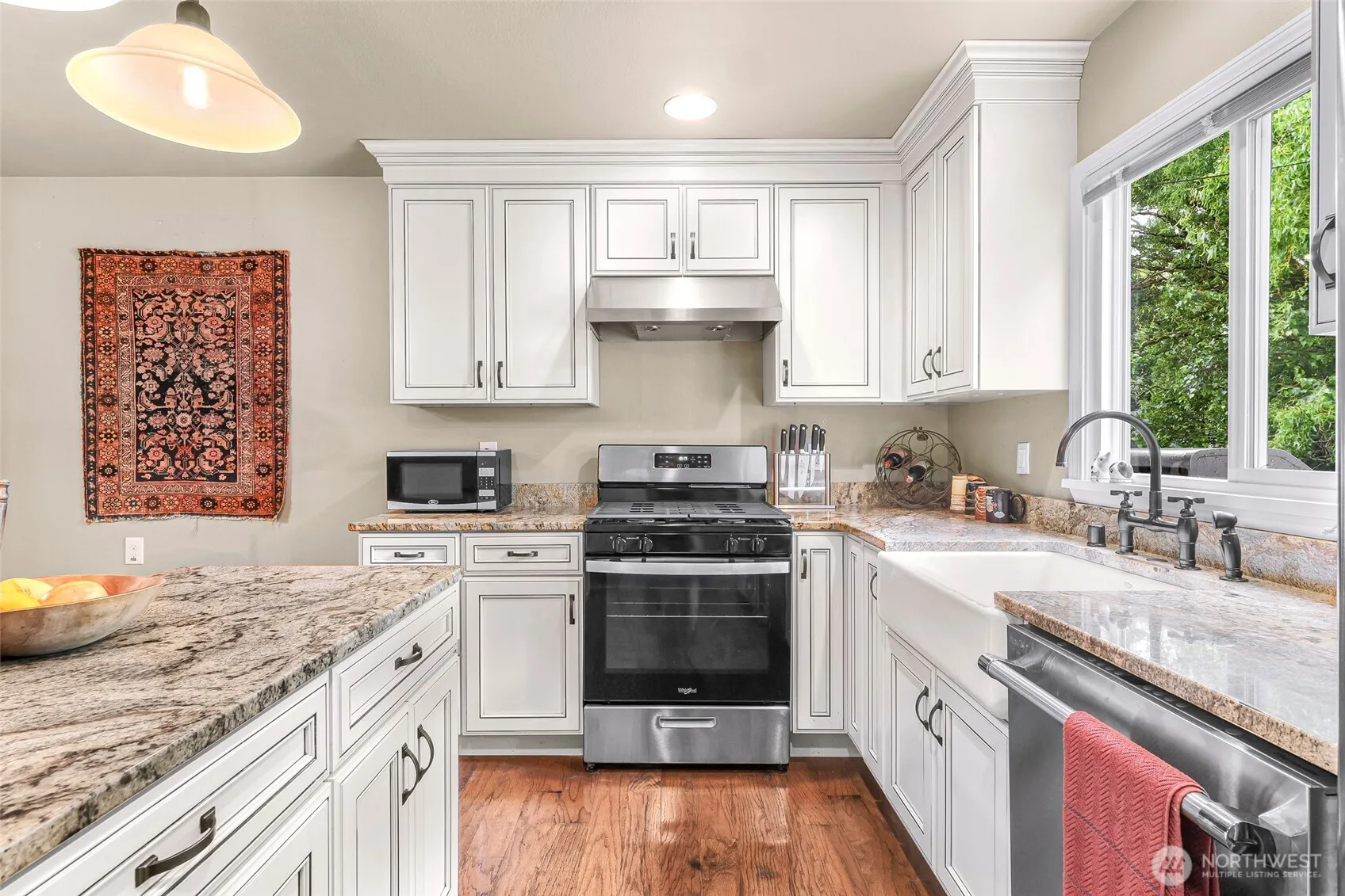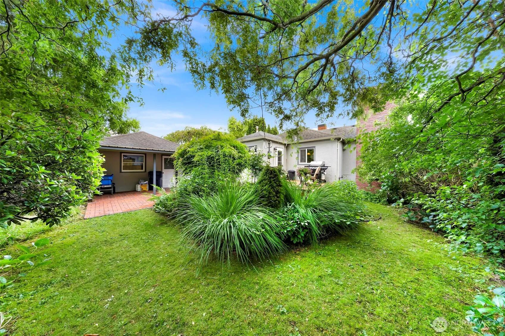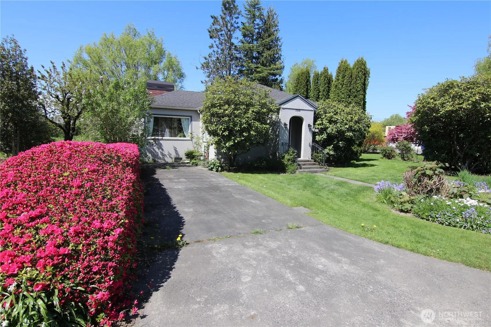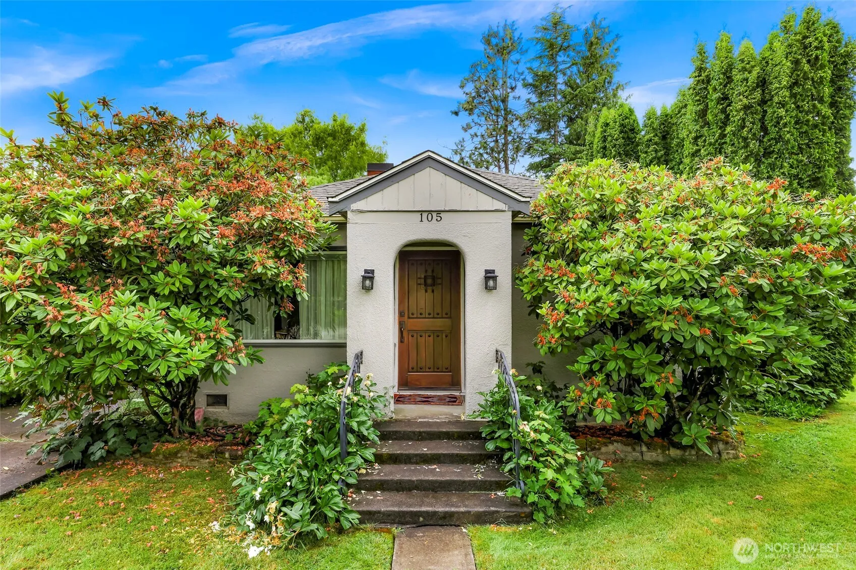 Hard to find “Mid-Century Modern” well built 1951 Stucco Home on a huge, colorful corner lot within walking distance of just about anything you need! Hardwood & fir floors complement an amazing kitchen and the updated custom bath combines new tile with a walk-in shower. The architectural touches combined with a very nice flow produces a warm living experience. Comfort yourself with an old school fireplace in the formal living room, and entertain in the dining room. The kitchen was tastefully remodeled recently with custom cabinets, beautiful granite & hardwood flooring. A detached garage & additional off street parking provide convenience. If you like colorful flowers, shrubs and trees then you will appreciate this gorgeous setting.