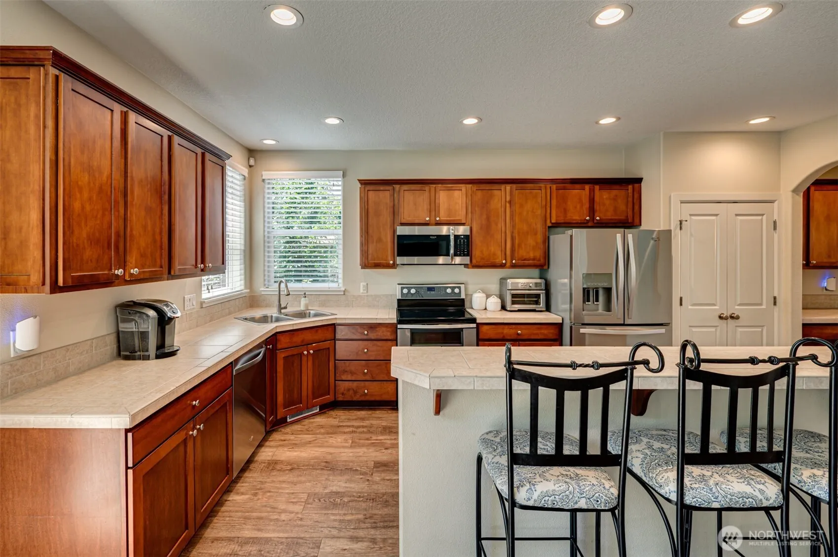 Meticulously maintained gem in sought after Meriwether neighborhood! Enjoy 4 spacious bedrooms, a loft, and a main floor primary suite, 2.5 baths, and over 2900 sq ft of well-designed living space. LVP floors, high ceilings, gorgeous kitchen with an island and double ovens, and a cozy gas fireplace. Fenced and low maintenance backyard with a water feature and privacy. Two-car attached garage plus an extended driveway for extra parking! Great location, only a few mins from freeways, schools, and shopping. Meriwether offers private use of its community pool, clubhouse, and park.