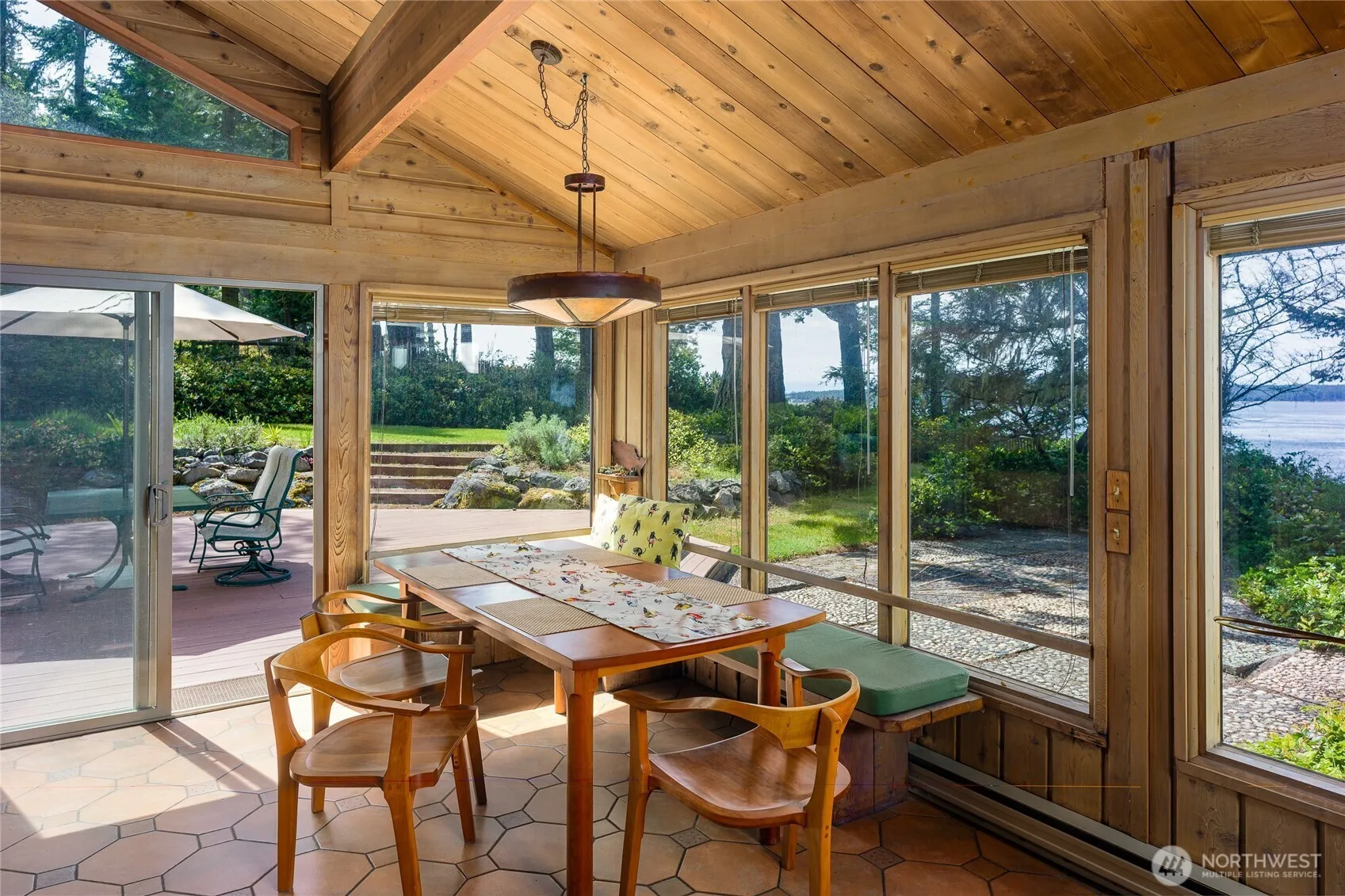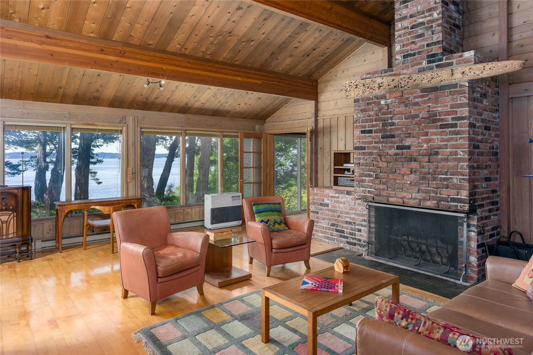 Westside, all cedar beach house tucked at the end of a quiet road offers 295 ft WF & views over San Juan Channel, the Straits & Olympic Mtns. Easy trail to miles of some of the best beach on Lopez. The single-level, 2bd/2ba home has vaulted ceilings open to walls of windows to capture the views & vibrant sunsets. Inside maple floors, warm cedar walls & ceilings, cozy brick FP. den/office & project room. Step outside to a large deck, hot tub & beach pebble patio to enjoy the natural tranquility. Detached garage with separate exercise/guest space, well finished shop, greenhouse, storage building, fruit trees & garden. Set on 5 wooded park-like acres with walking trail. Close to the golf course and a 10 minute drive to the Village.