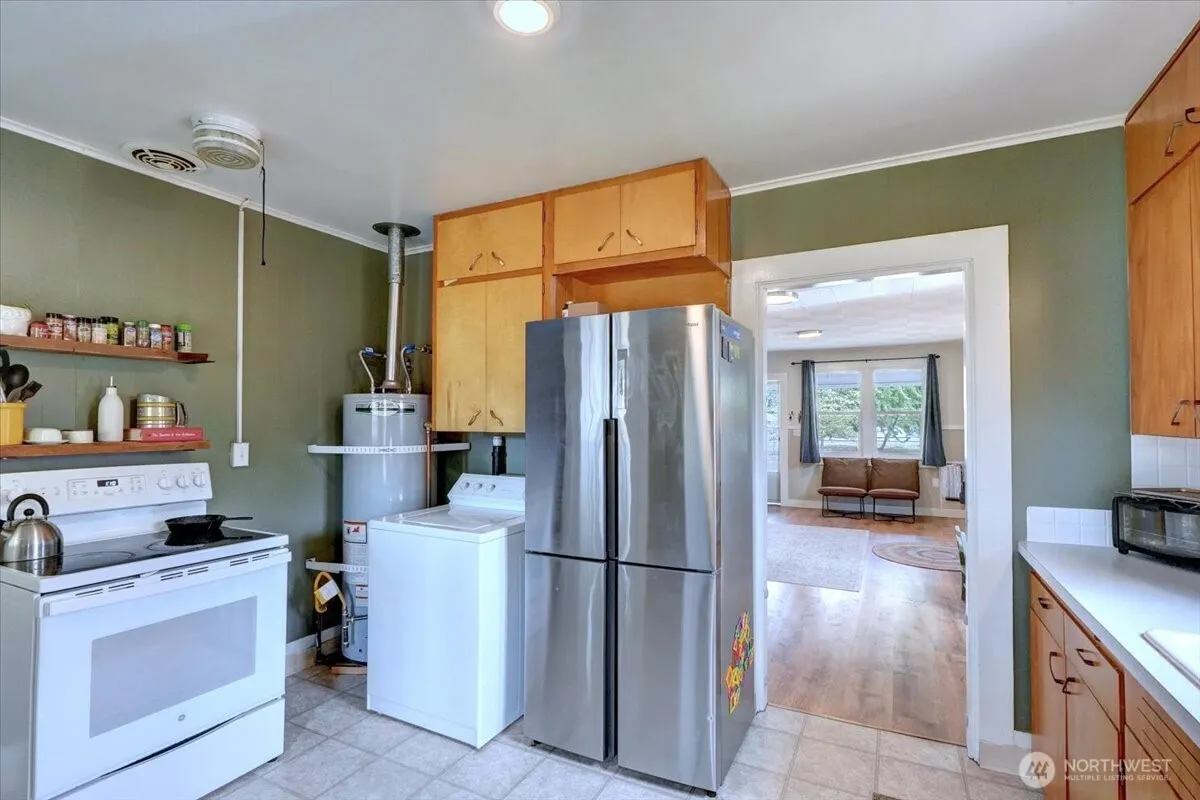 Your private oasis in Yelm awaits! This cute-as-a-button 2-bed bungalow is nestled on a huge, fully fenced double lot, offering ultimate privacy just a stroll from the city center. Carefree living is yours with major updates already done: a newer roof, new vinyl windows, and an updated electrical panel. The easy-maintenance floors are a breeze! Need space? The detached garage is perfect for storage or hobbies. Meticulously maintained and bursting with charm, this gem offers an incredible opportunity for space, convenience, and endless possibilities. Don’t wait!