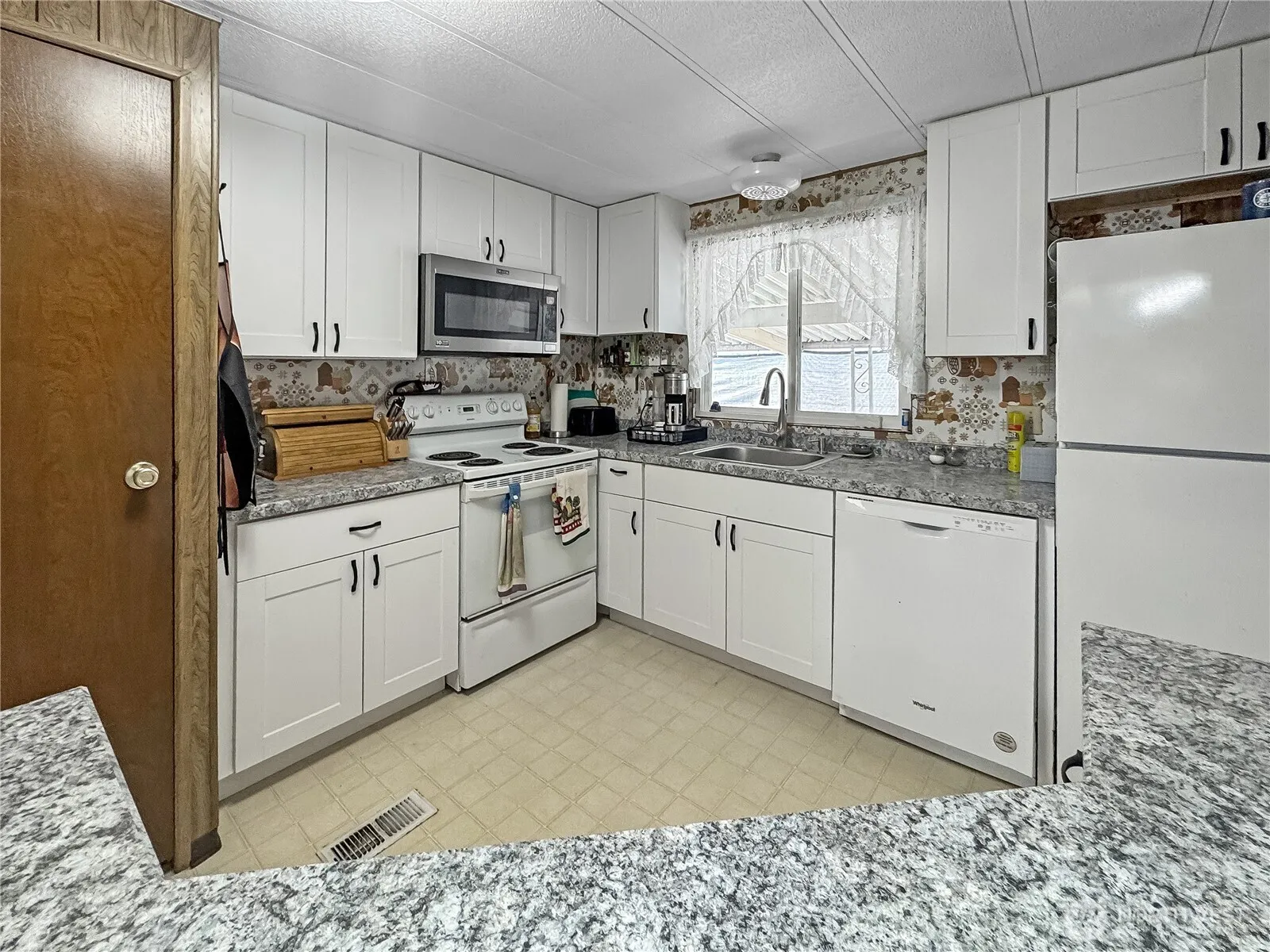 Step into comfort with this well-maintained manufactured home featuring a spacious and functional layout. The updated kitchen offers modern finishes and flows seamlessly into a large open living room and attached dining area—perfect for everyday living or entertaining. Just off the kitchen, you’ll find a bonus living space ideal for a den, TV room, or home office. The primary suite includes an updated bathroom with a walk-in shower, while the second bedroom is generously sized for guests or additional needs. Enjoy year-round comfort with a newer AC system. Outside, the home features dual carports, providing ample covered parking, plus a handy shed for extra storage.