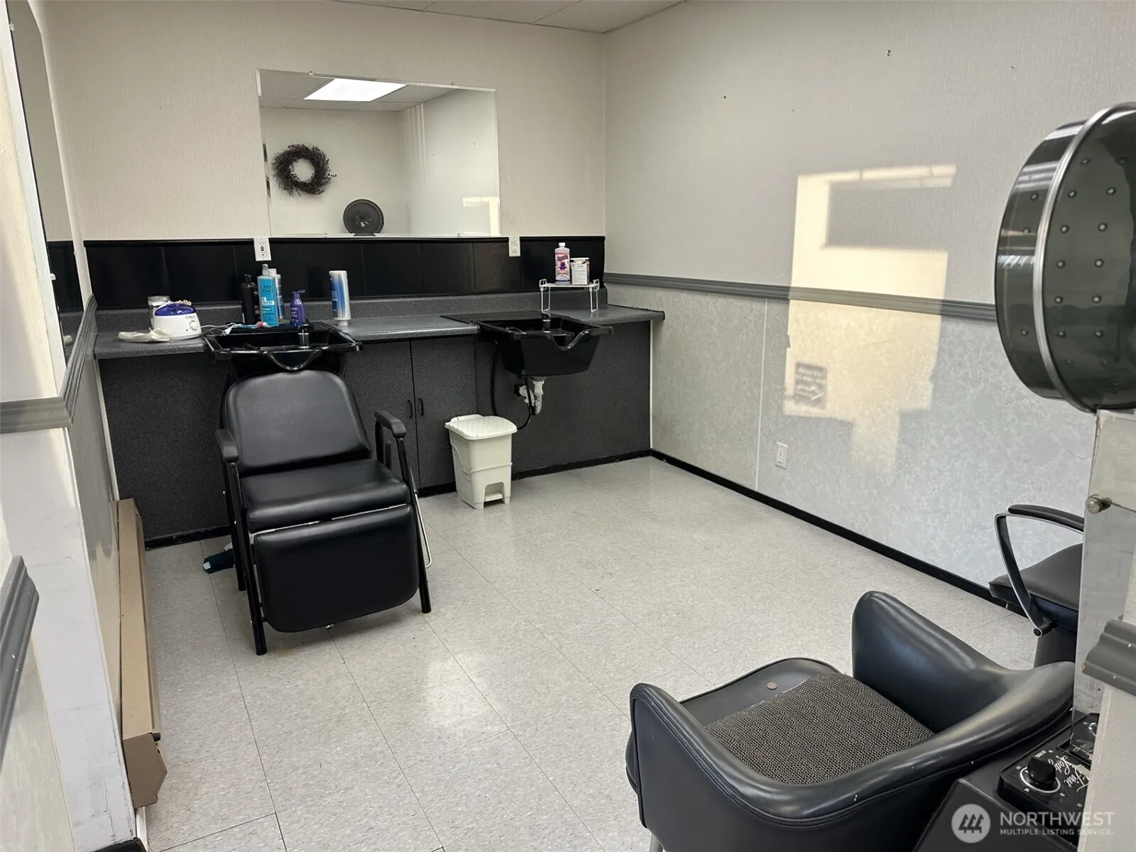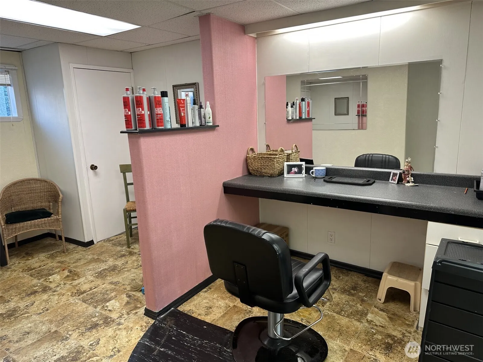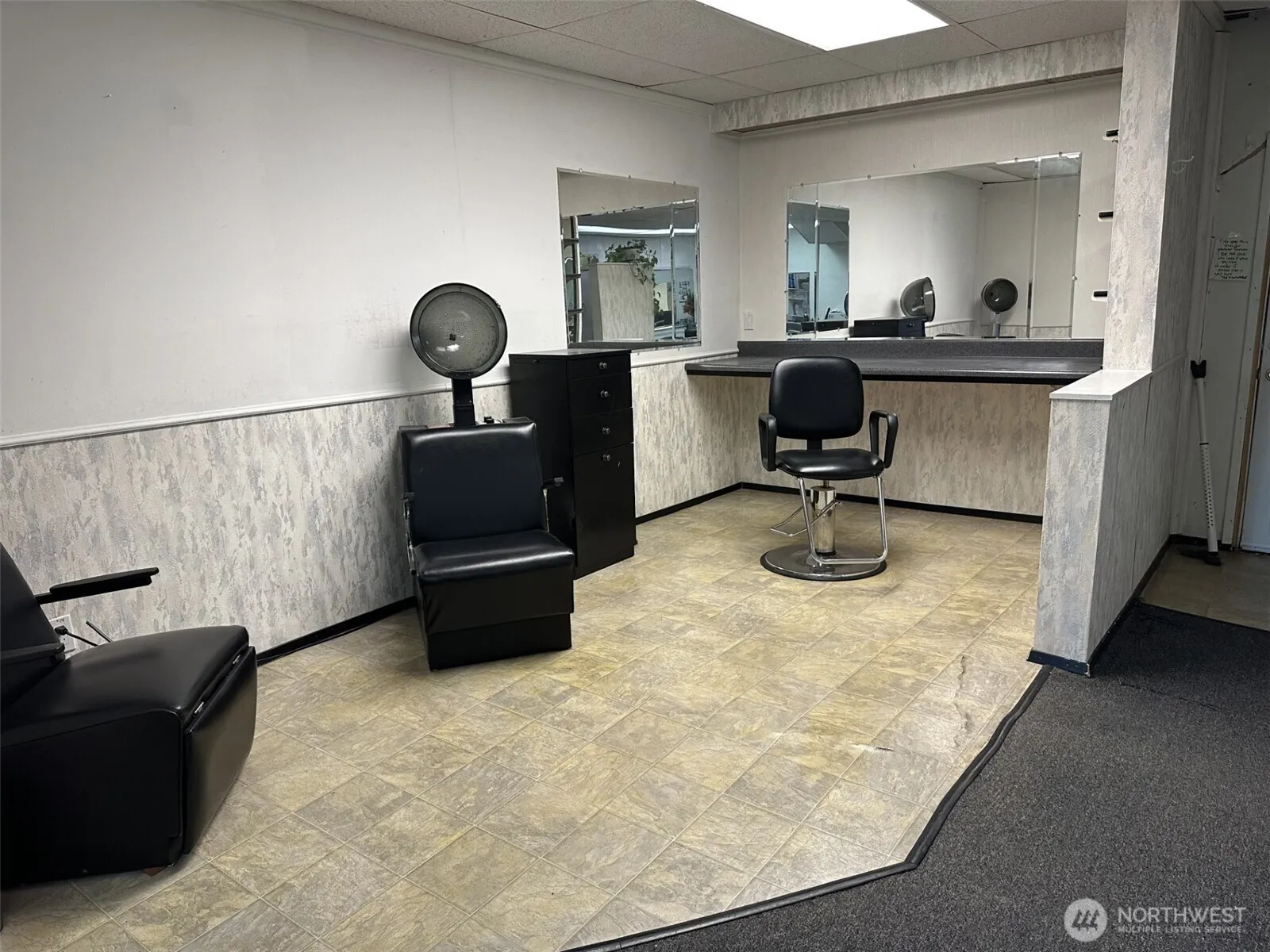 Owner/operator opportunity! Gig’s Hair Salon is located in the iconic Pine Cone Cafe building, in the University Place Business District, just off 27th St W. With six rented stations and room for a seventh (or a massage therapy room), this end unit rental space has 2 bathrooms, a washer and dryer area and a kitchenette space with lockers. Great opportunity to step into a viable business that is up and running located just off a main thoroughfare, in a friendly building with great tenants. Most equipment and fixtures included! Great visibility! Enjoyable warm neighborhood vibes!