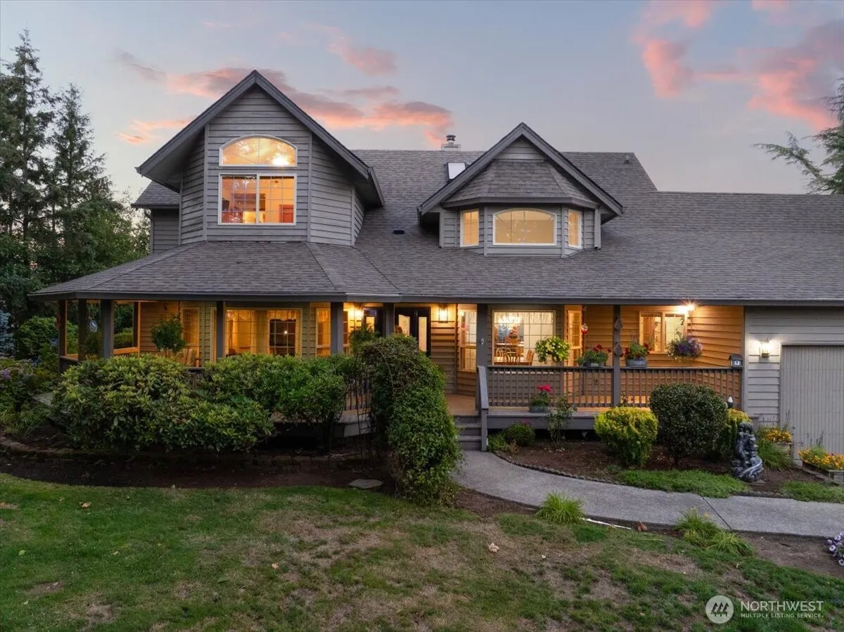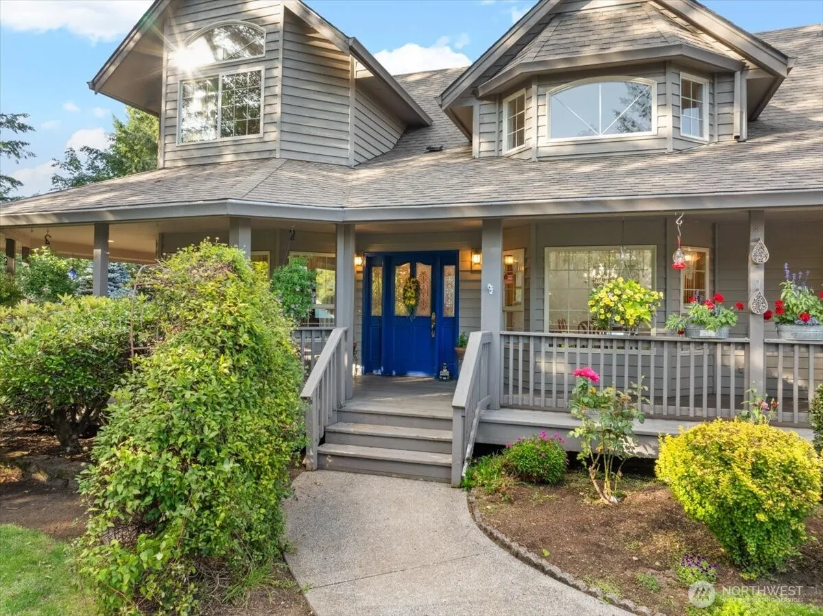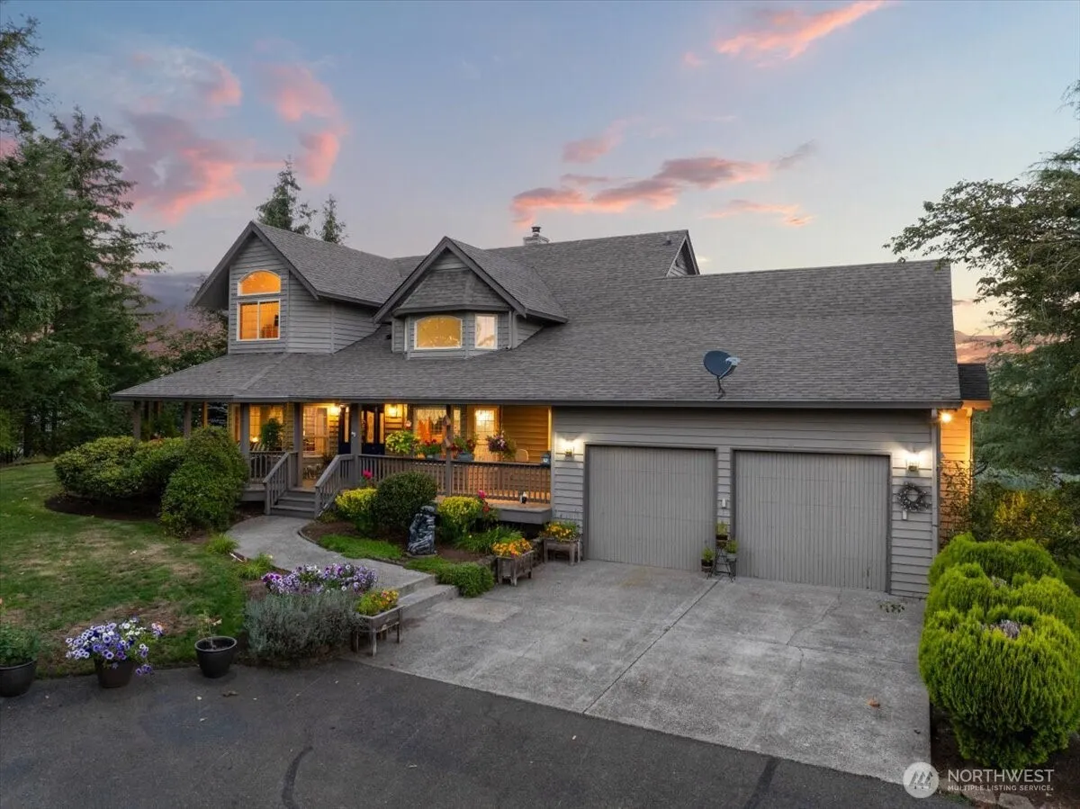 Gated 10-acre country property with panoramic views of Mt. St. Helens, Mt. Adams, Tum Tum, and Chelatchie Prairie. Includes two 5-acre parcels—one preserved to protect your view. This 4-bed, 3-bath custom home spans over 3,300 sq ft with vaulted ceilings, abundant natural light, and a main-level primary suite. Covered front porch and large back deck invite outdoor living. The 4-stall barn with heated tack room doubles as a flex-use shop. Fenced and cross-fenced pastures, mature trees, and a layout built for Northwest lifestyle, rural living, and equestrian use. Just 45 mins to PDX.
