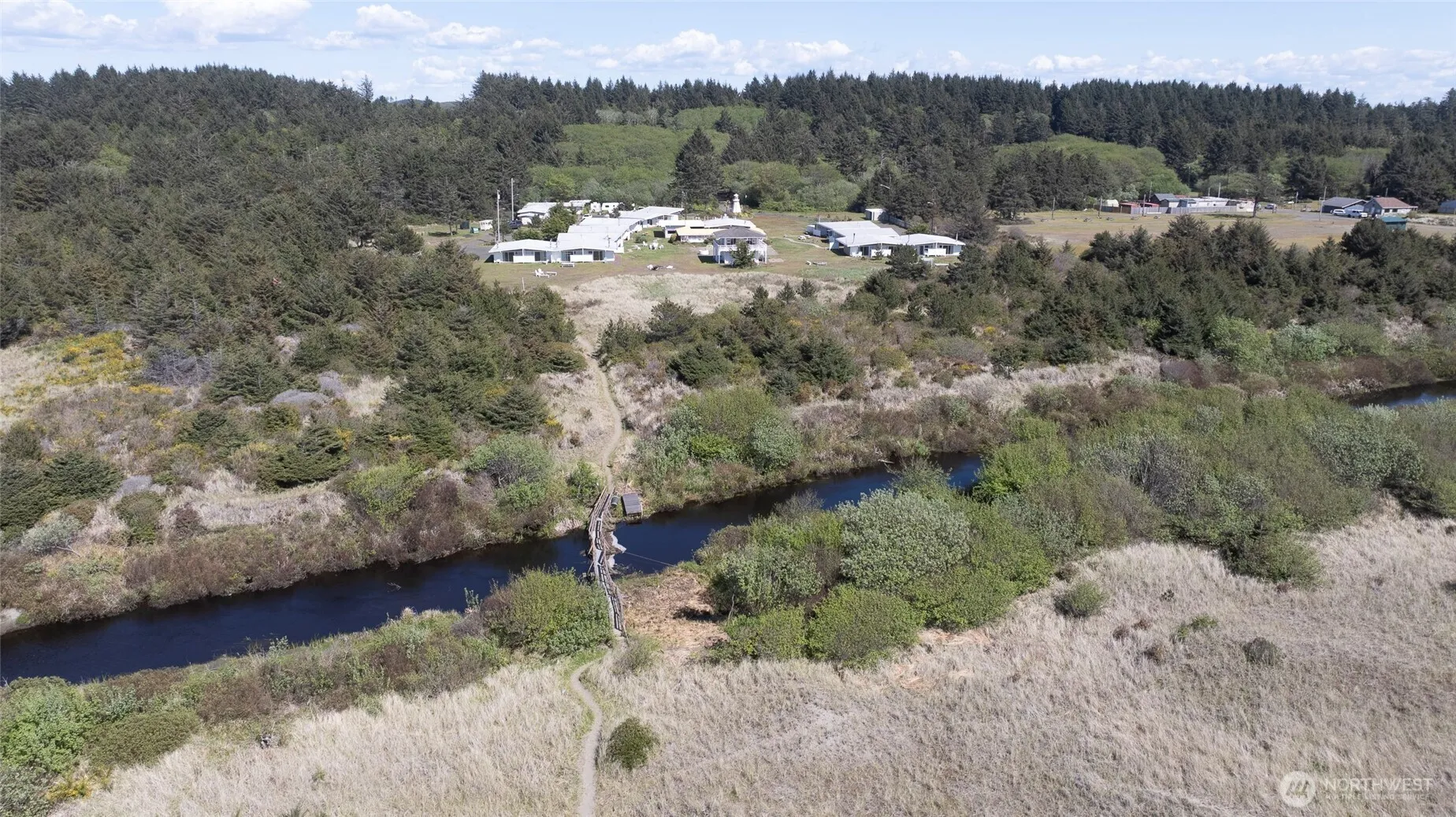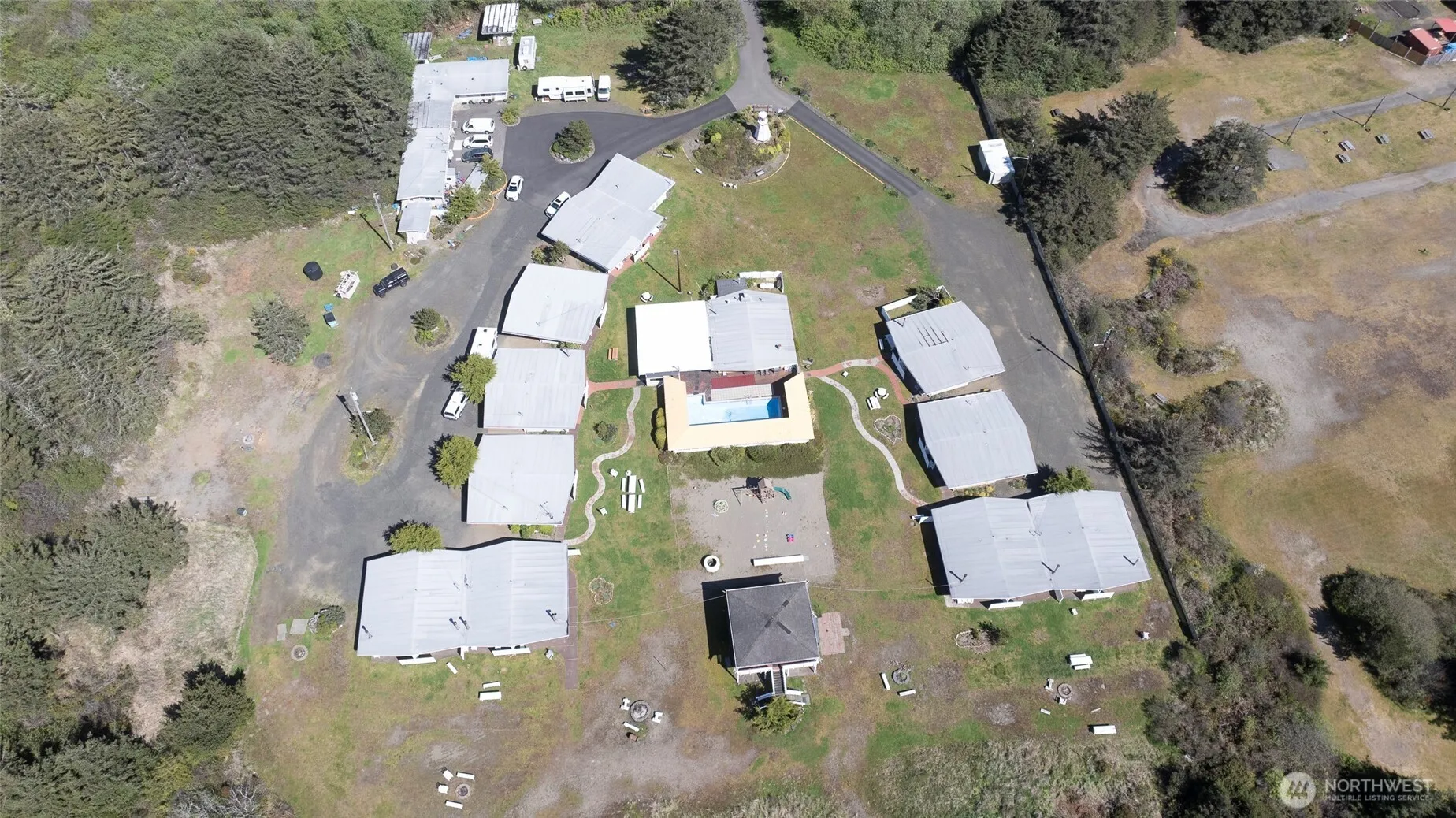 Failed sale creates excellent opportunity to purchase this resort at a great discounted price for a cash, quick sale.. Located between Ocean Shores and Seabrook. Property consists of 15.72 acres, 335 ft of creek & ocean frontage, 20 – 1 bdm condos (650 SF) with full kitchens and large living rooms. Office with 1 bdrm apt., 2 bdrm apt, 2 studios, laundry and storage facility, seasonal outdoor pool, hot tub, clubhouse with ping pong & pool tables and meeting space. Solarium with exercise equipment and sauna. Trail to ocean. Room for expansion for RVs/glamping or multi-level ocean view condos. Ideal opportunity to market to groups, reunions, weddings and company retreats. Could consider monthly rentals. Treed entrance sets a calming tone.