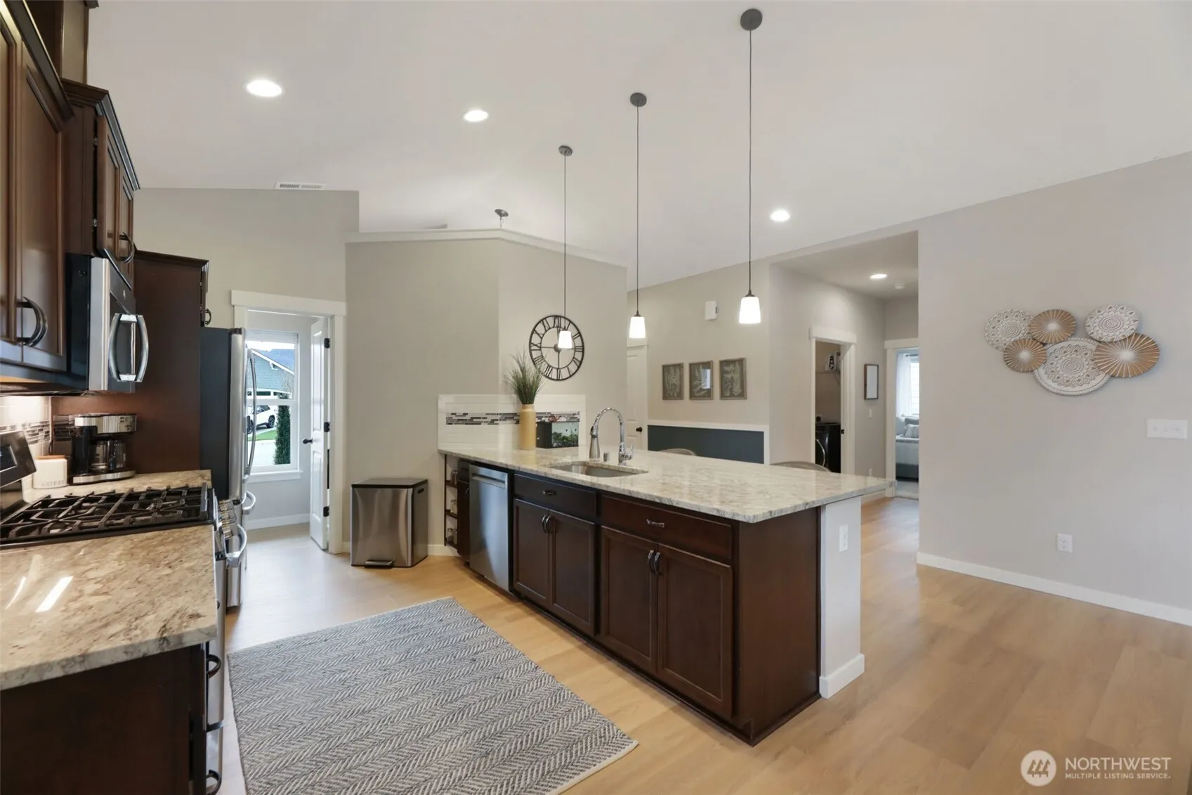 Discover this bright and inviting rambler that is flooded with natural light, highlighted by a cozy fireplace that adds warmth to the space. The spacious kitchen boasts ample storage, a walk-in pantry, and plenty of counter space, making it perfect for culinary adventures. It seamlessly connects to the open-concept living area. Set on just under a quarter-acre lot, the oversized, fully fenced south-facing backyard is ideal for indoor-outdoor entertaining. A/C heat pump for added comfort in the summertime. This home is Conveniently located, just moments away from parks, trails, boat launch, a variety of delightful restaurants, shopping destinations, schools, and convenient commuting options. This home truly embodies comfort and convenience.