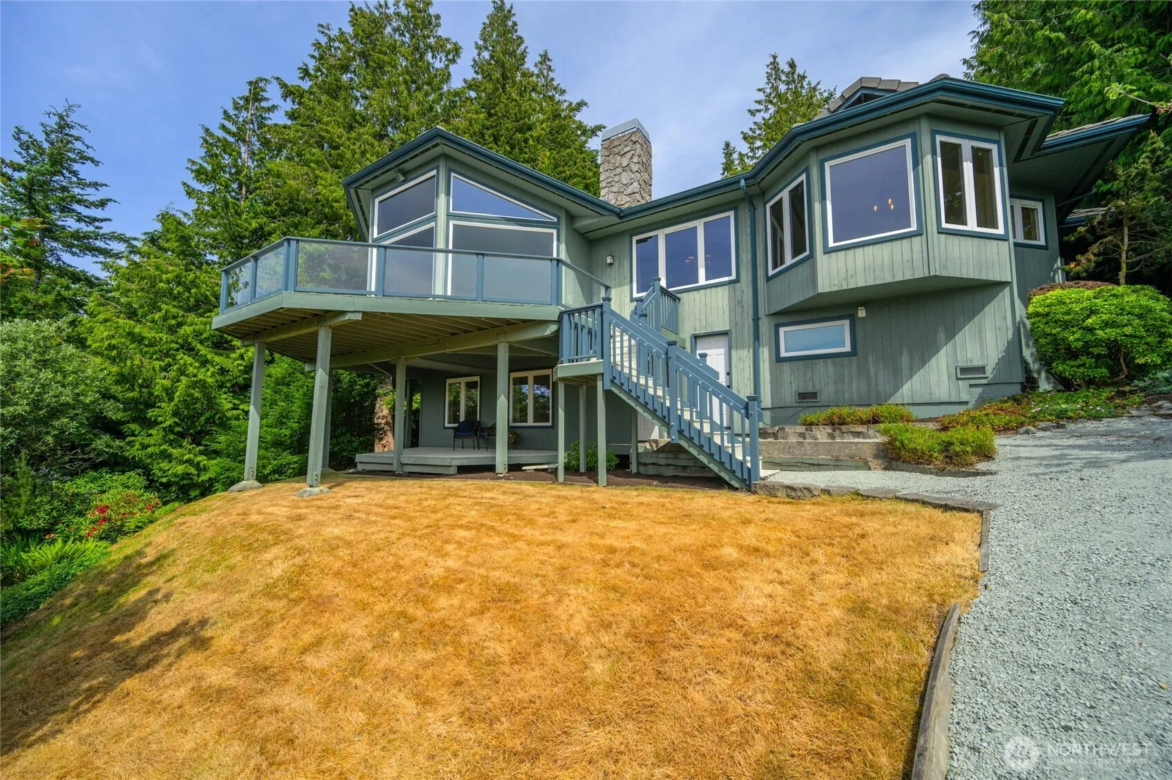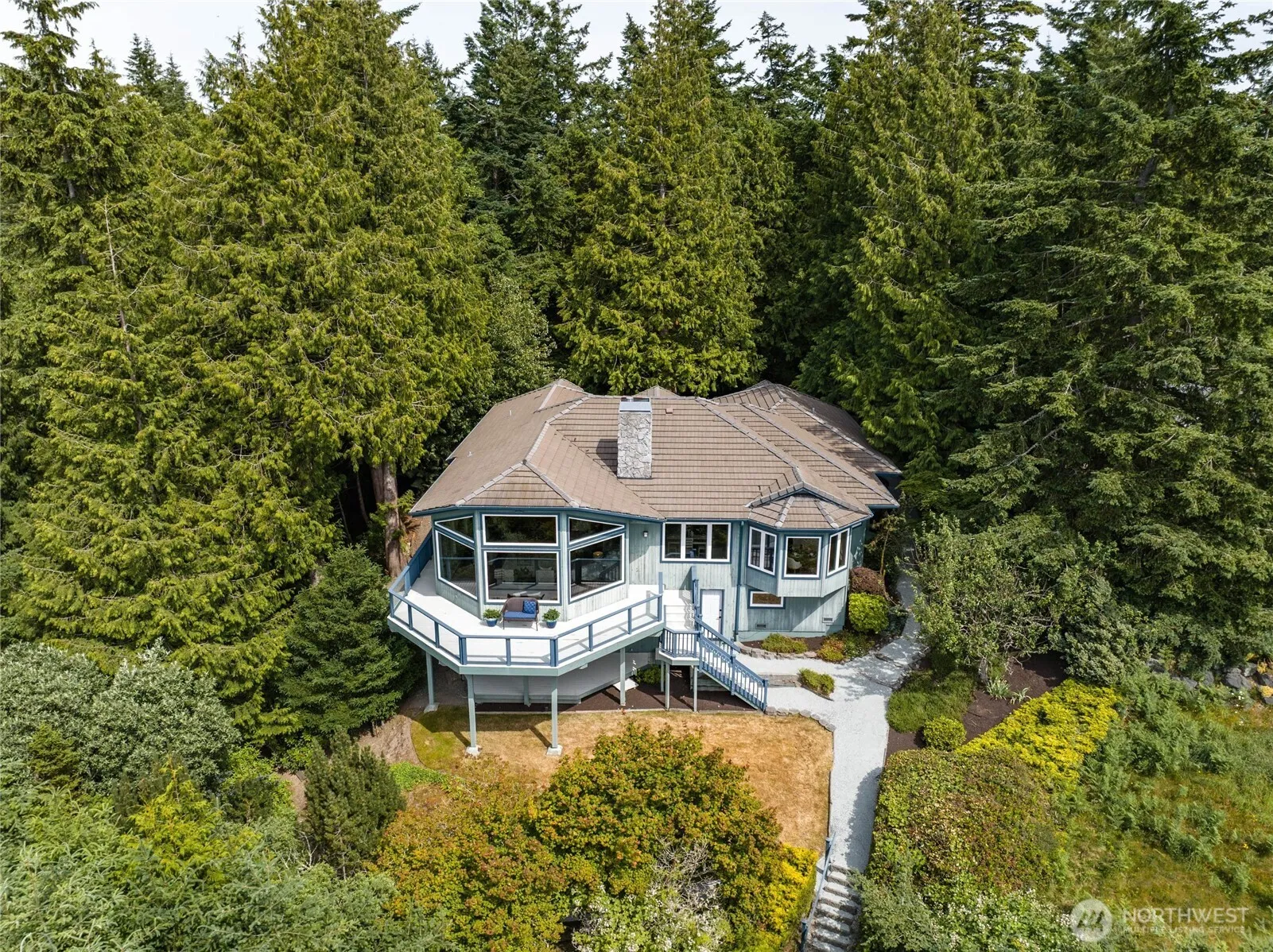 Step into a world where elegance, comfort, and natural beauty converge. Perched above Puget Sound in the coveted Seaview community, this rare custom-built home offers front-row seats to unforgettable sunsets. A soaring vaulted living room with a striking stone fireplace creates a grand yet welcoming atmosphere, while expansive windows frame sweeping views and fill the home with light. The main-floor primary suite is a private sanctuary, complete with deck access, spacious walk-in closet, and a spa-inspired bath featuring a cedar sauna. The inviting lower level- with its own private outdoor access- offers the perfect space for guests. All of this is tucked away on over half an acre of lush, secluded grounds. Come home to exceptional living.
