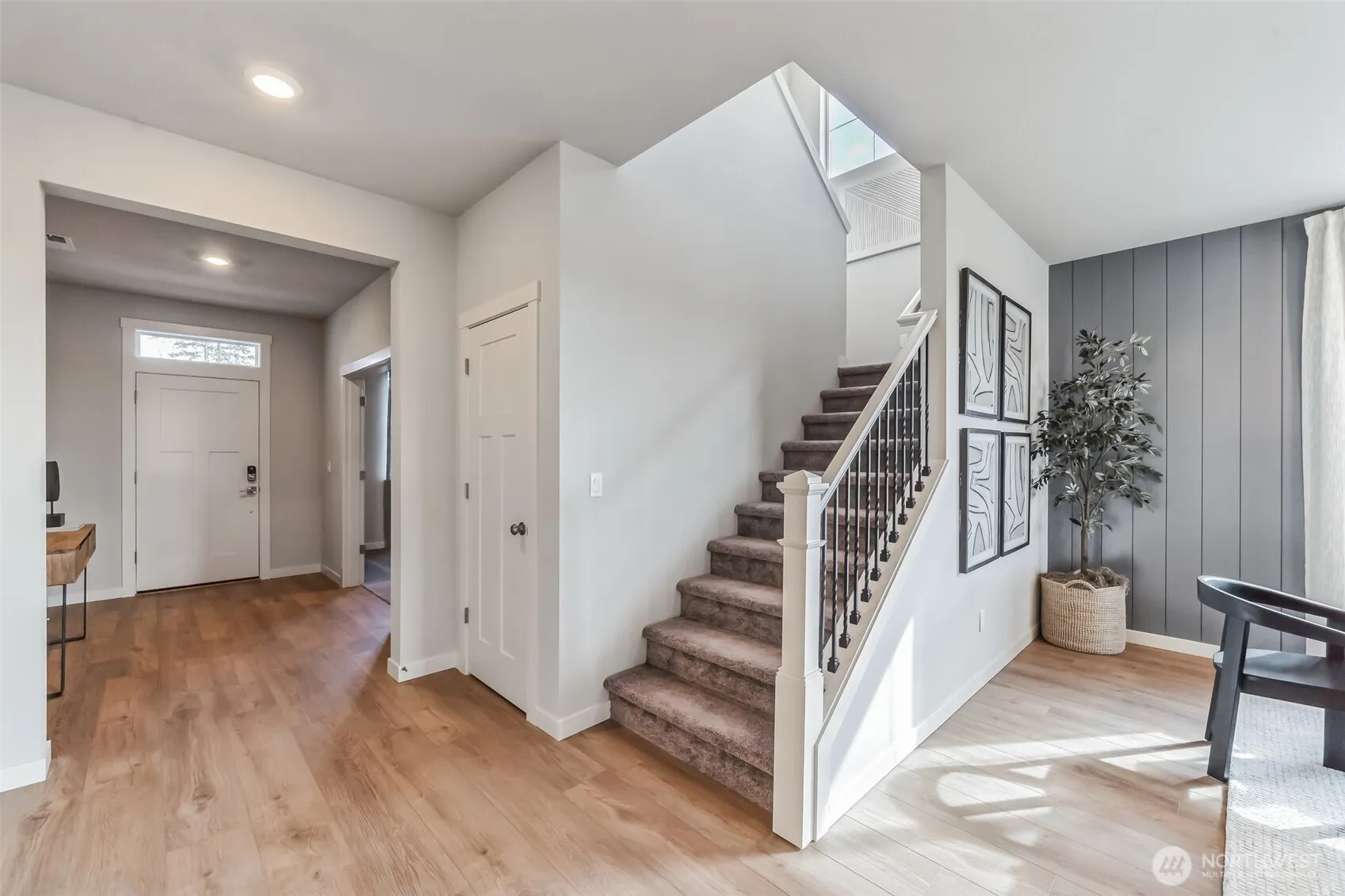 Entertainer’s dream home kitchen features a huge quartz island with shaker cabinets, a convection oven, an gas cooktop, built in microwave and SS refrigerator. Expansive LVP floors extend through the entry, dining, and kitchen areas. There is a den and a guest bedroom with a full bath on the main level. Primary includes sitting room, tiled shower, tiled soak tub, LVT, and quartz counters. Enjoy the sunny south facing home with a covered back patio overlooking fully landscaped yard. Home includes, Washer and Dryer, Refrigerator, and blinds. Just 25 mins to PDX. Sample Photos from another model home, finishes may vary. Incentives available when financing with preferred lender! Homesite # 114, estimated completion September 2025.