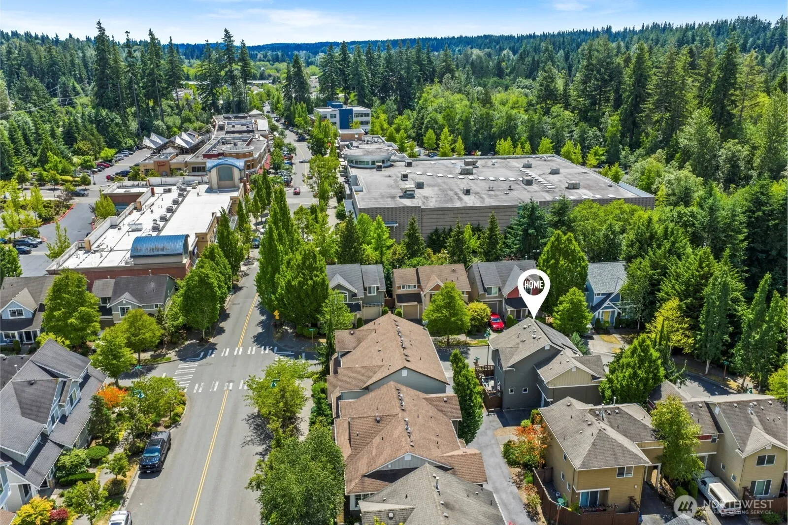 Quality Lozier home across from Greenbelt, pond & Trails. Sunny, private lot just steps from Mill Creek Town Center shops, dining, gyms & groceries. This beautifully maintained home has a light-filled interior w/almost all new windows and slider, tubular skylights, added insulation & AC for year-round comfort. Enjoy granite counters in the kitchen w/gas range & tall cabinets, a cozy fireplace in living/dining area, and a king-sized primary suite w/walk-in closet. Energy-saving solar panels, EV charging ability, newer water heater & washer + extras like Arlo video, security, Toto Washlet & gutter guards. Fresh exterior paint, covered front porch & private patio complete the package! Perfect blend of natural serenity & urban convenience!