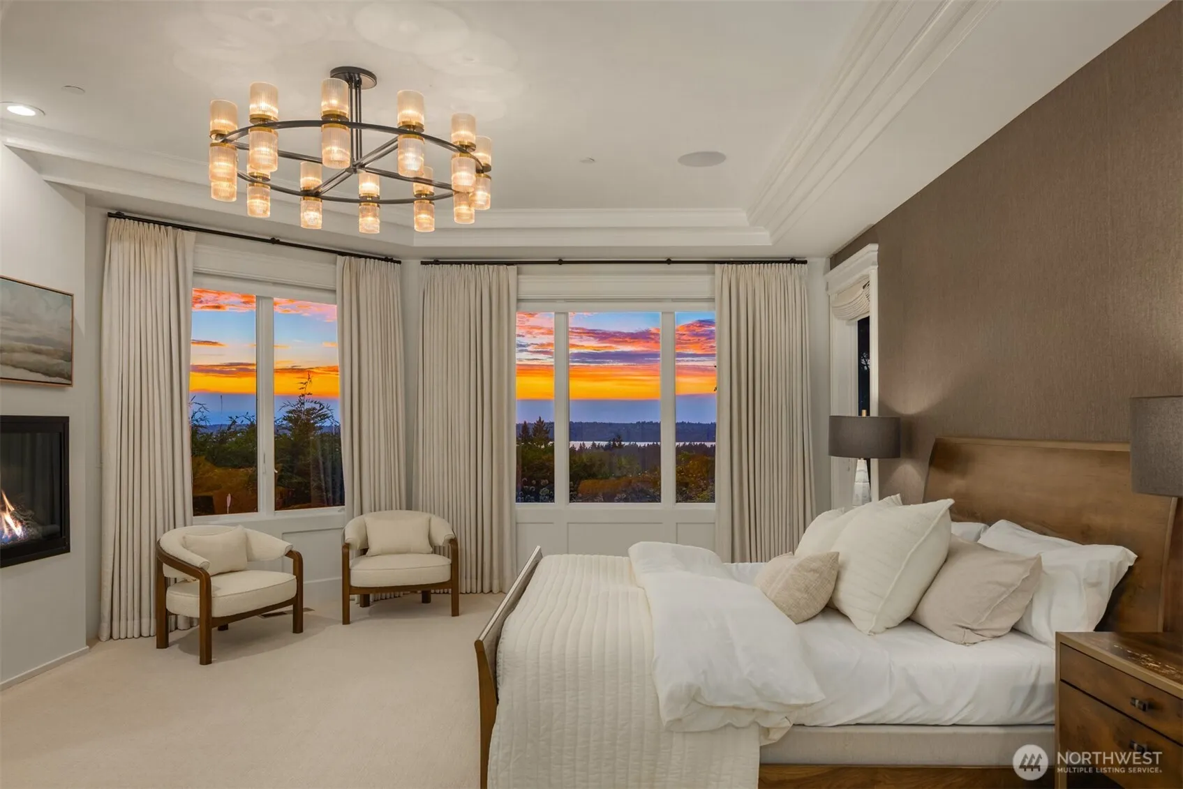 Experience sunsets & sweeping vistas from this stunning Clyde Hill luxury home. A 2022 renovation made this residence into a move-in ready home w/panoramic views of mountains & Lake WA. The main floor is an open layout connecting bright, spacious living areas. The gourmet kitchen is a masterpiece of design & function. The family room provides spectacular views. The primary suite incls a fireplace, spa-inspired bath & a Nordstrom-worthy walk-in closet. Downstairs, three ensuite beds, a large theater, a rec room w/wet bar, a wine cellar & a 2nd laundry. The highlight: a full generational living suite/ADU featuring its own kitchen & private single-car garage. This is the pinnacle of Clyde Hill living. Mins from Bellevue, Seattle, parks & more.