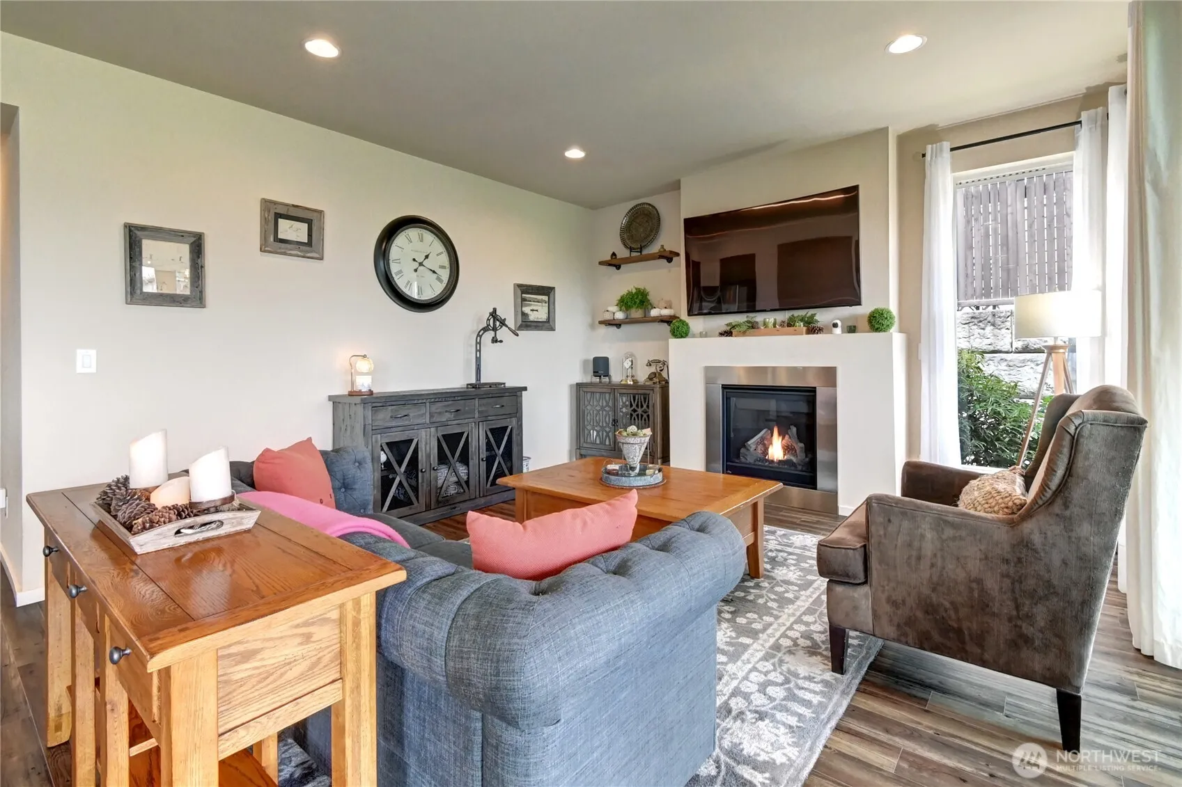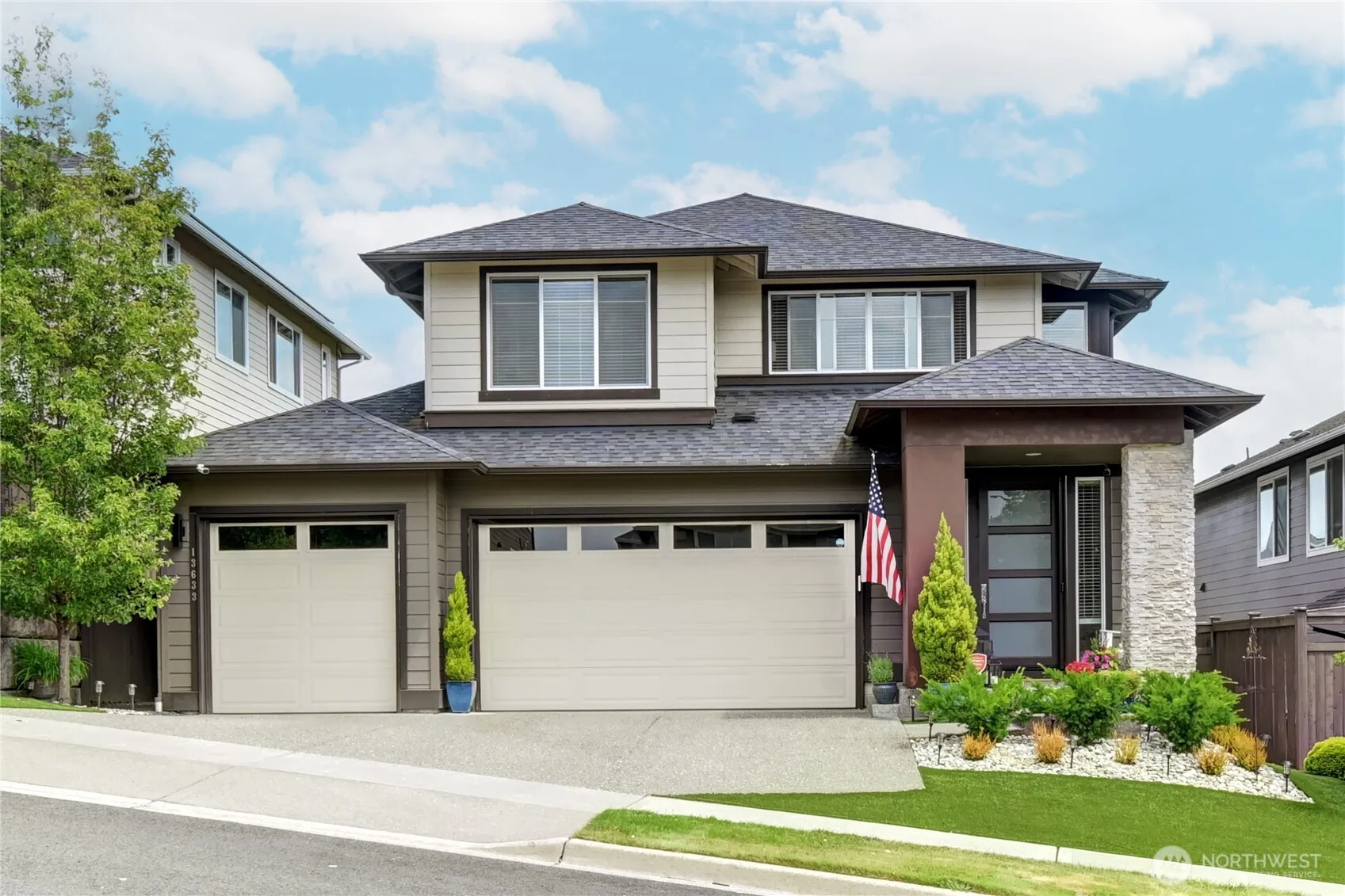 Impeccable 2600+ sq ft MainVue at Eaglemont Resale: with 4 bedroom 2.5 baths, open concept indoor/outdoor living. The upgrades throughout this home are endless. From the large open concept great room to the beautiful chef’s kitchen with floor to ceiling doors that seamlessly connect to your outdoor living space. Enjoy the cozy full size fireplace on your covered deck for year round entertaining. Generous primary has a luxurious 5 piece bathroom and 2 walk in closets/dressing rooms, a wall filled with windows that provide natural light and breathtaking views of the mountains. 3 car garage with EV charger, custom remote blinds, his and hers primary closets, bonus living space loft and dedicated flex room/office on main. You can have it all!