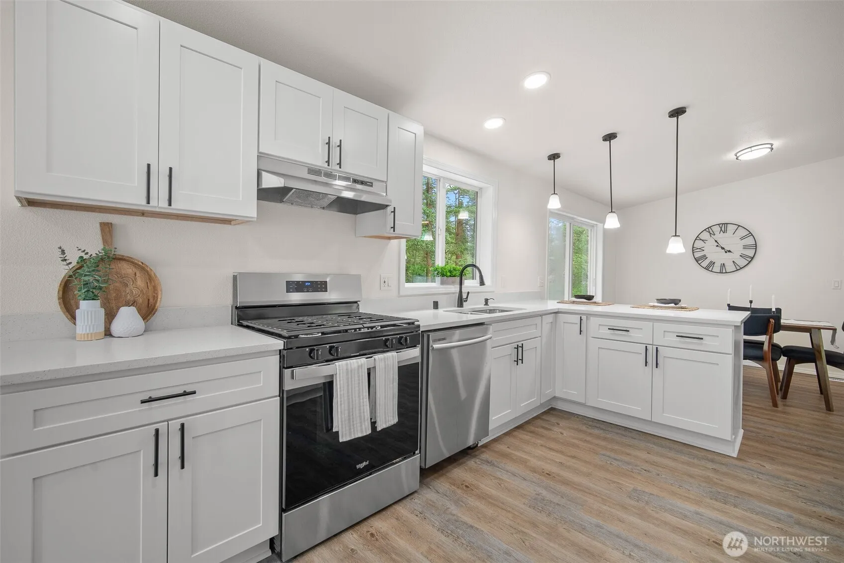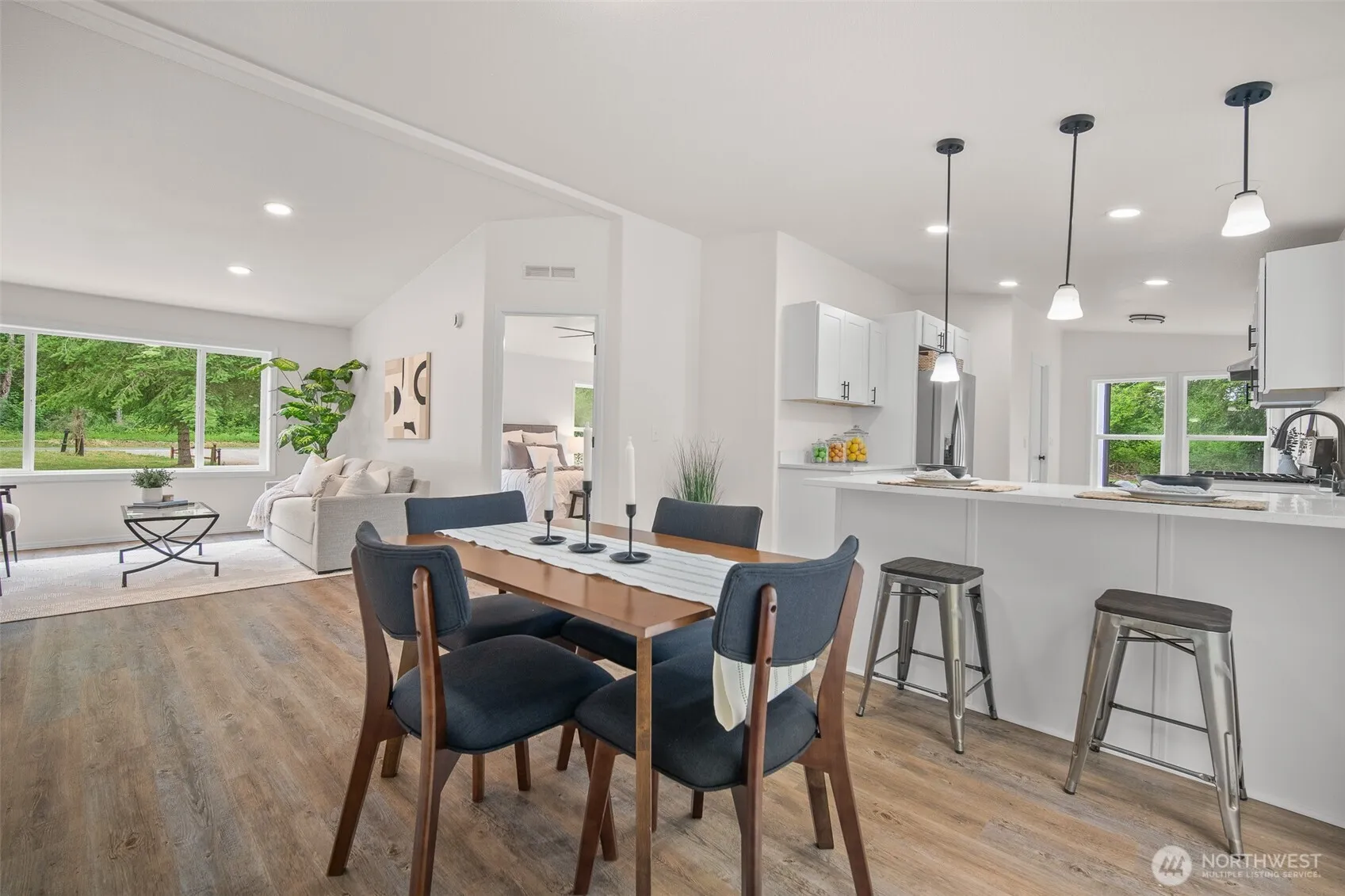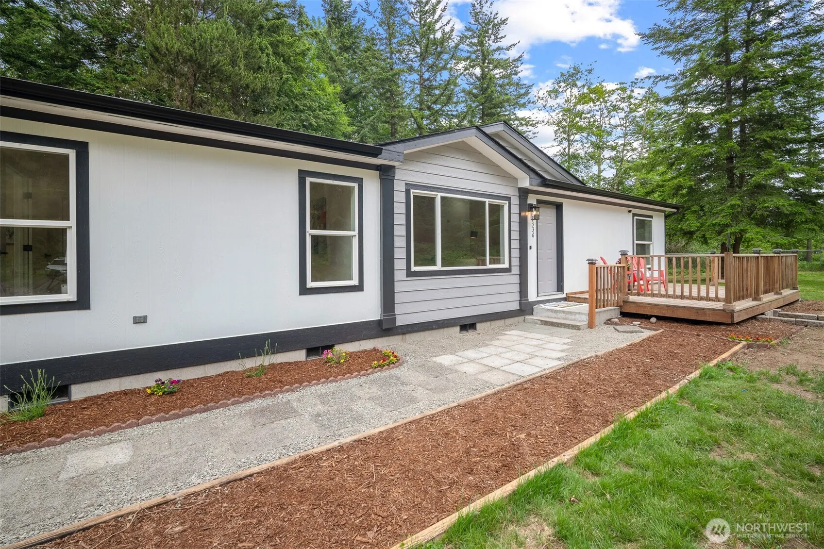 Welcome to this gorgeous home, 3 bed, 2 bath plus Den/Office, that sits on level 2.5+ acres. Open floor concept plan with modern kitchen quartz counters w/ extra cabinets for storage and new appliances. The bright living room offers easy access to the den/office for convenience. Spacious primary suite with double sink, tile floors, walk in shower and tub. Two large bathrooms with large closets included. Long driveway for extra parking. Detached large shop/garage. Back yard with trees for those spring/summer days, that back up to a pond. New paint inside and out, new insulation, new roof, new gutters, and flooring. No HOA. Tunk Key! This is a must see.