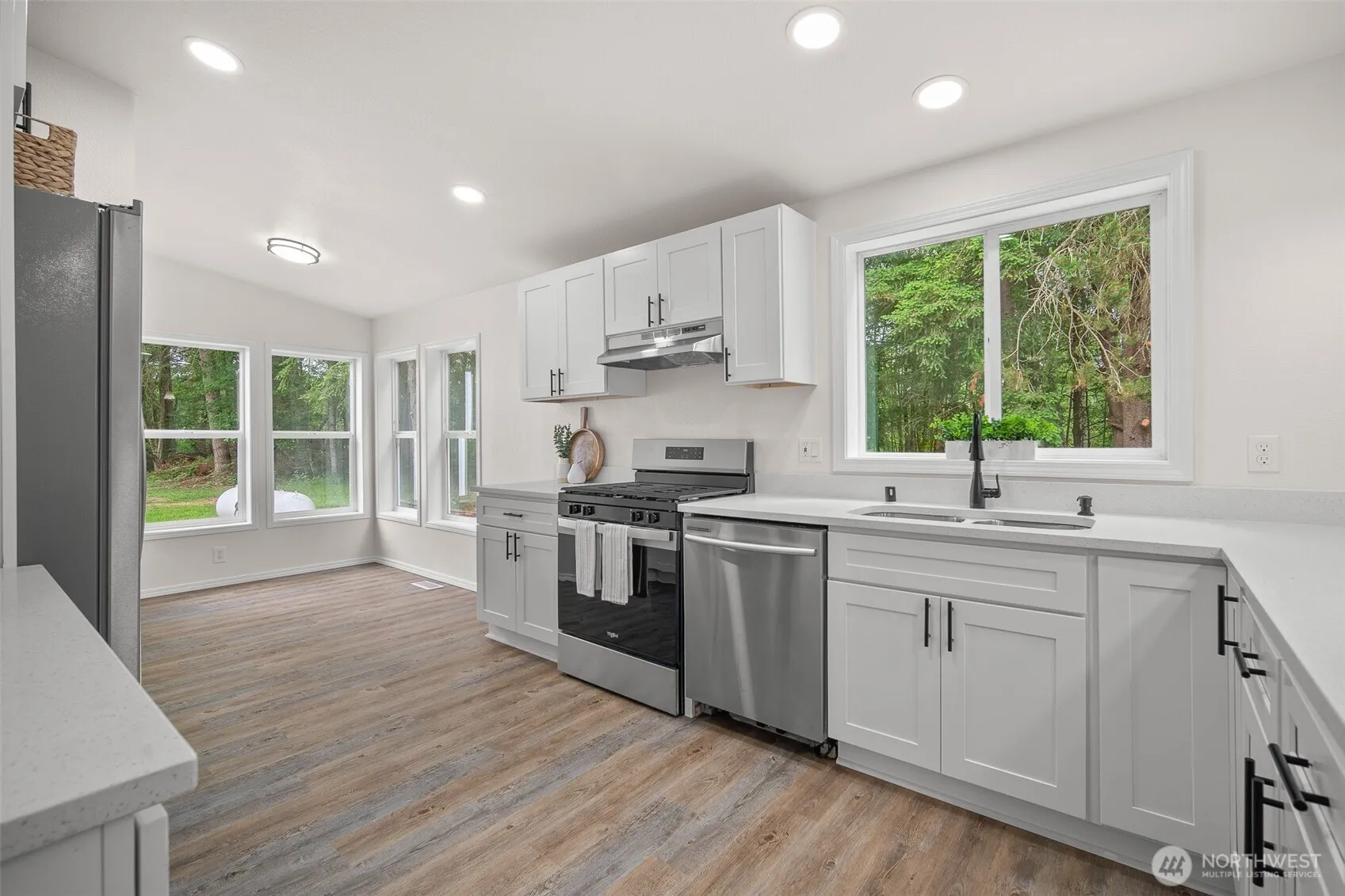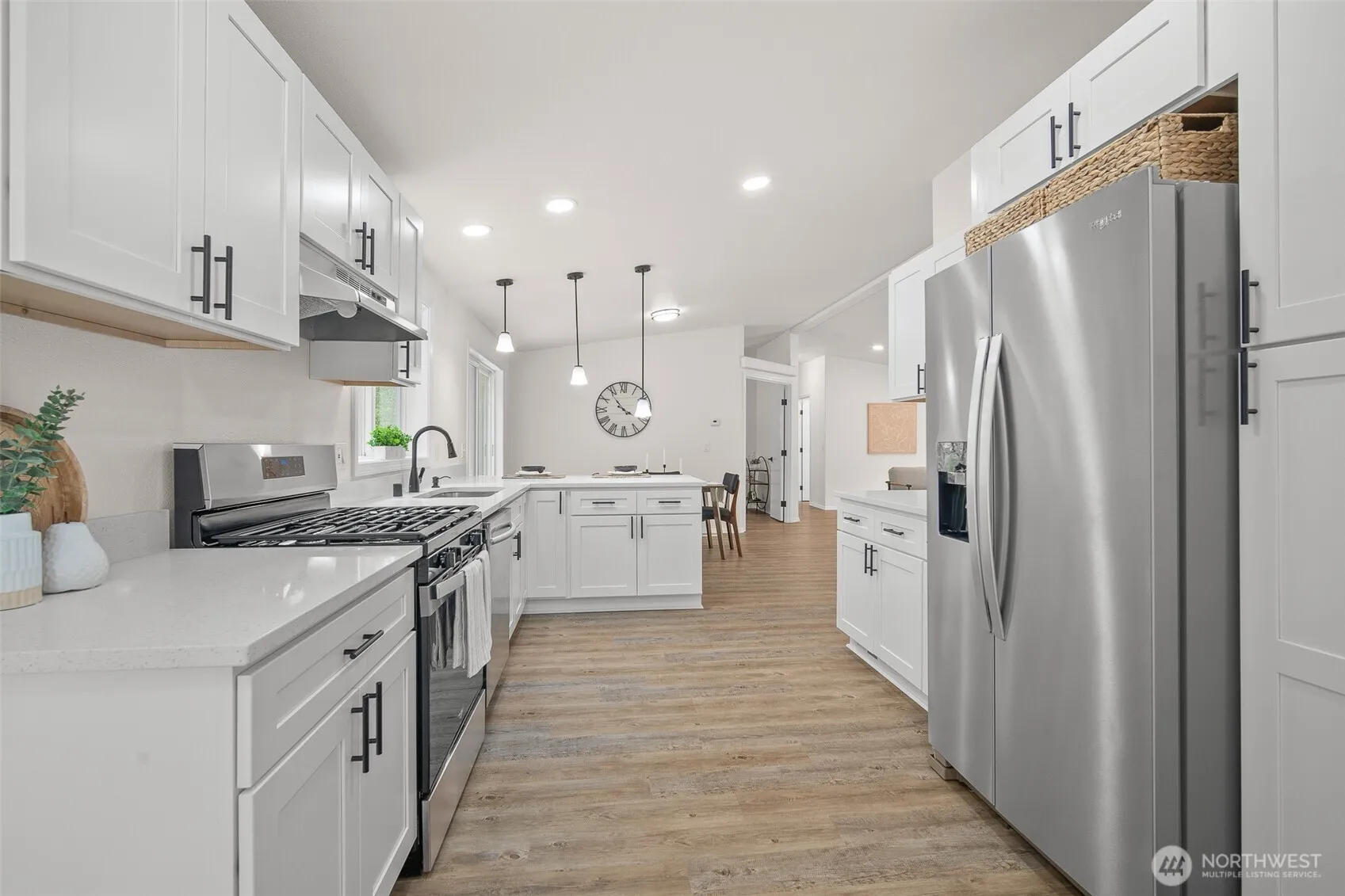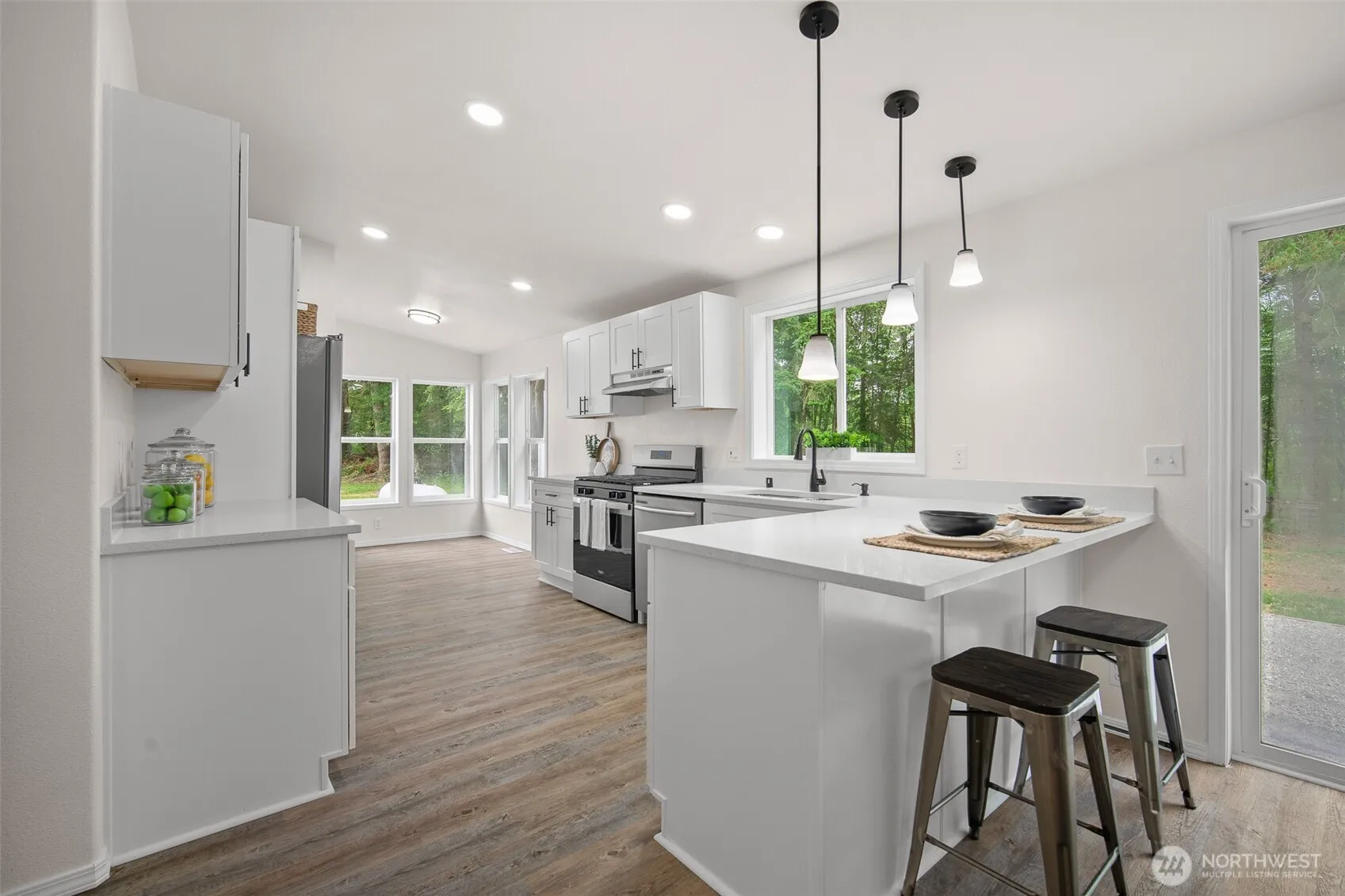 Welcome to this gorgeous home, 3 bed, 2 bath plus Den/Office, that sits on level 2.5+ acres. Open floor concept plan with modern kitchen quartz counters w/ extra cabinets for storage and new appliances. The bright living room offers easy access to the den/office for convenience. Spacious primary suite with double sink, tile floors, walk in shower and tub. Two large bathrooms with large closets included. Long driveway for extra parking. Detached large shop/garage. Back yard with trees for those spring/summer days, that back up to a pond. New paint inside and out, new insulation, new roof, new gutters, and flooring. No HOA. Tunk Key! This is a must see.