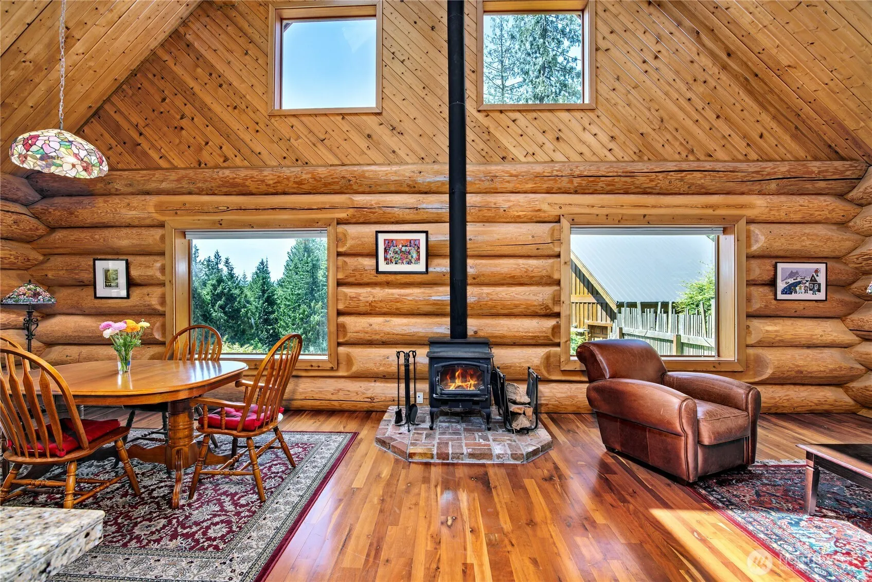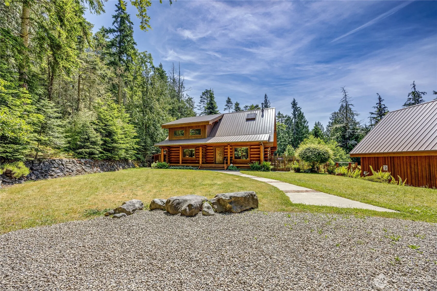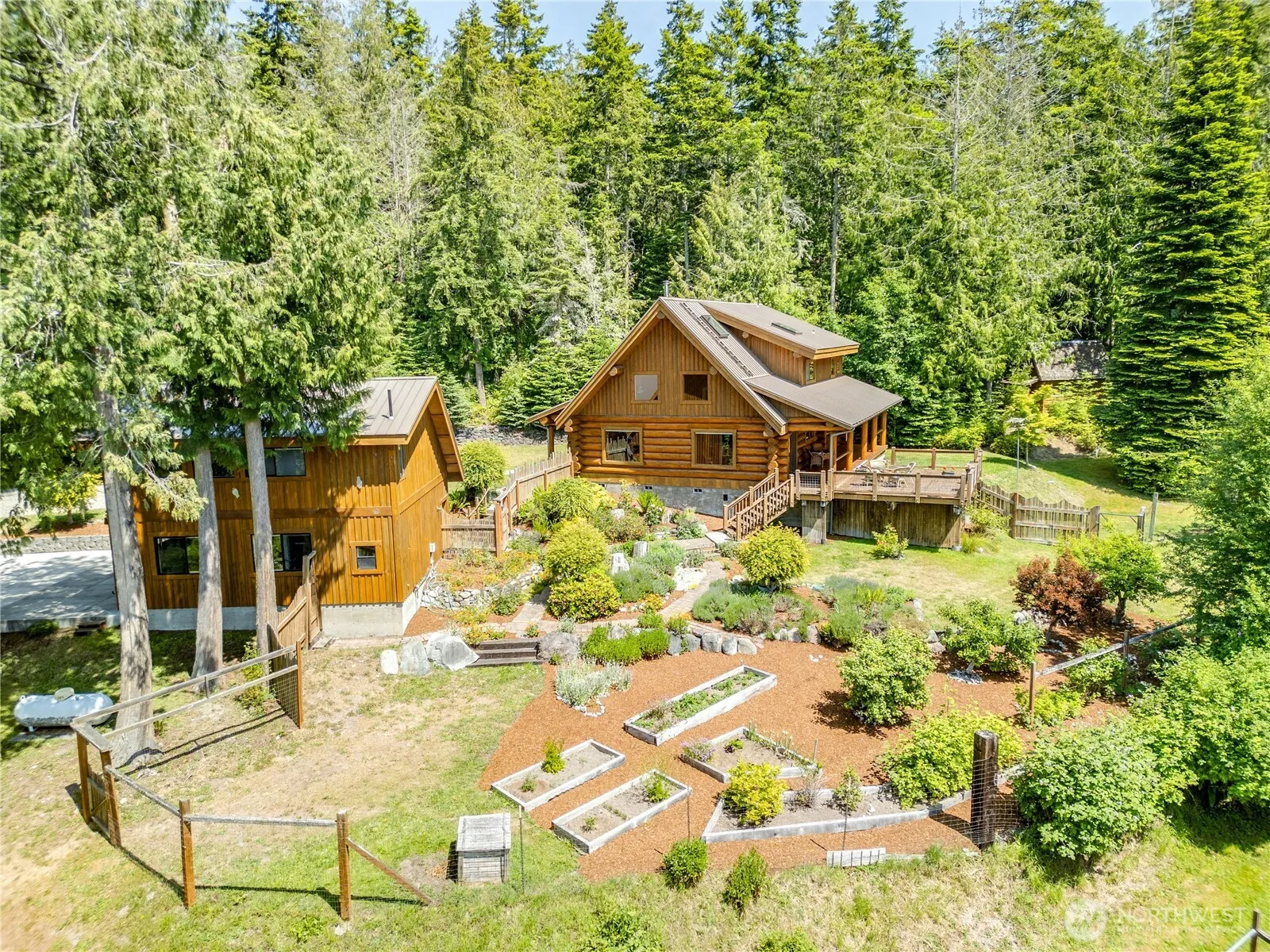 Imagine your dream log home on 5 sunny acres with a whimsical fenced garden, wooded playhouse, and great solar exposure making this a home of youthful dreams. This quality Weins Log Home features cherry wood floors with radiant heat, fir trim, and a gourmet kitchen with granite counters and high-end appliances. Vaulted ceilings and skylights invite the western light. French doors open to a spacious deck perfect for entertaining or sunset watching. Enjoy a private office loft and a detached guest space over the finished garage with bathroom, plus RV hook-up. Minutes from the charm of historic Port Townsend, with its vibrant arts scene, waterfront dining, and year-round festivals—yet nestled in the quiet privacy of Protection Ridge.