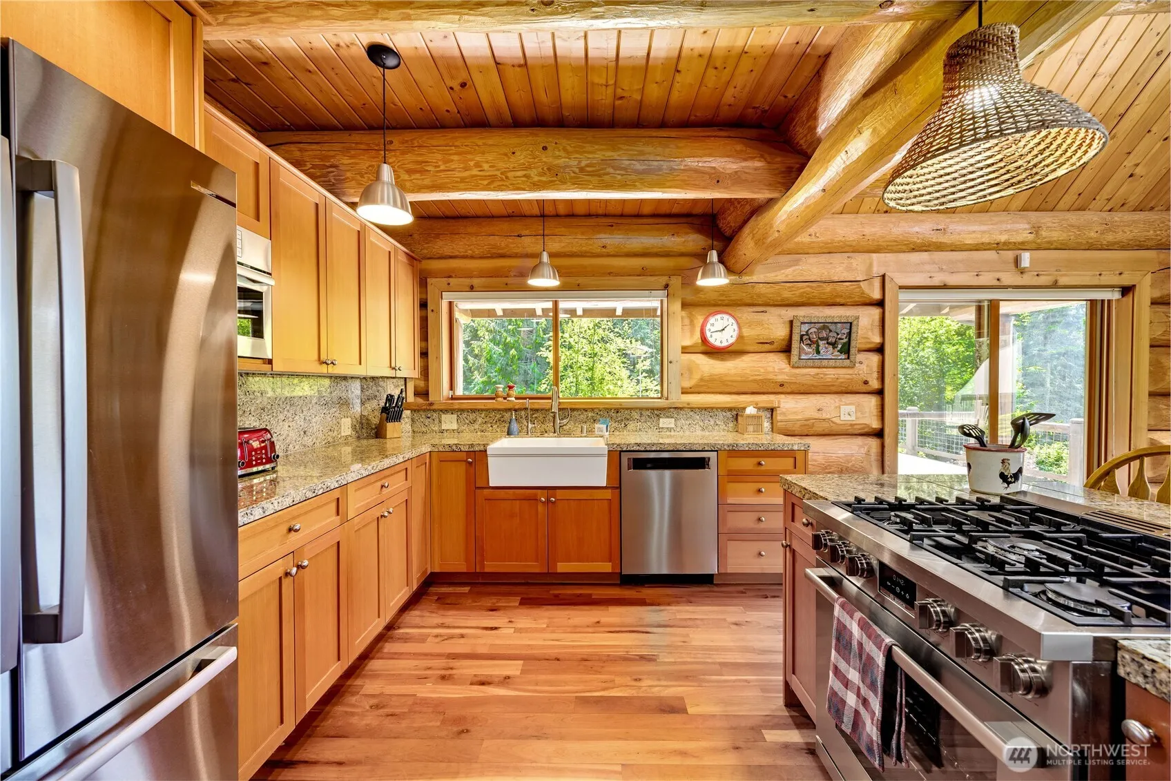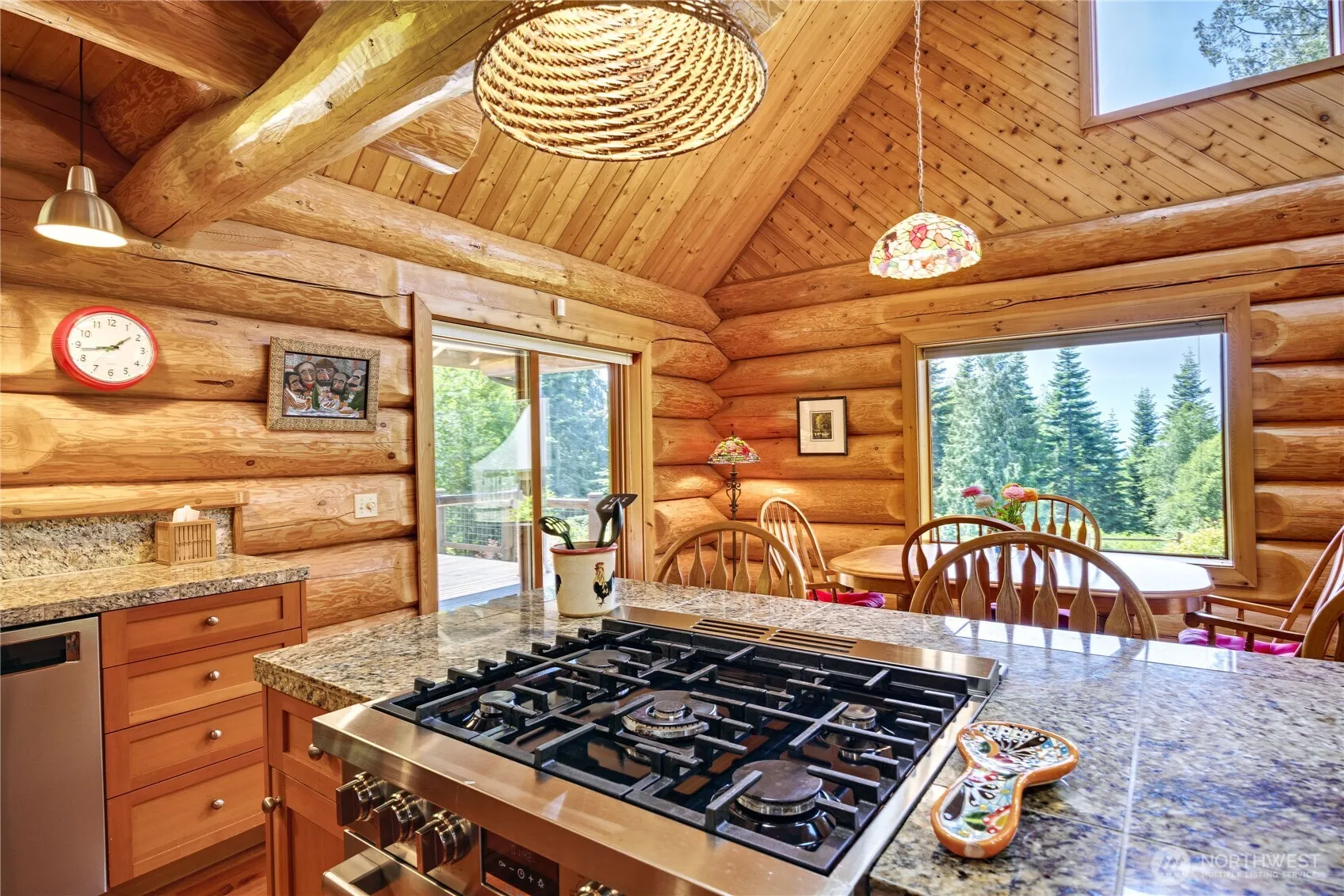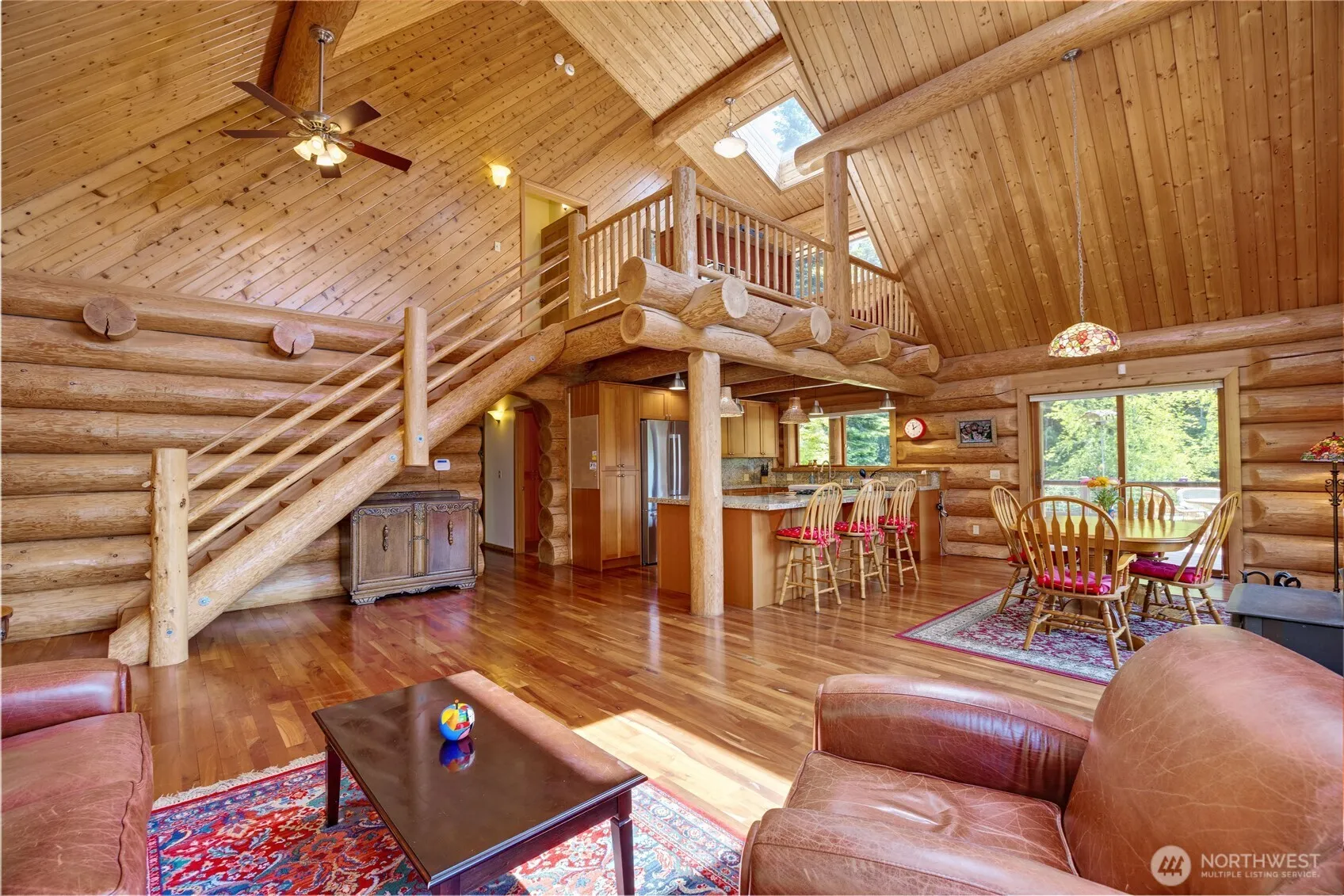 Imagine your dream log home on 5 sunny acres with a whimsical fenced garden, wooded playhouse, and great solar exposure making this a home of youthful dreams. This quality Weins Log Home features cherry wood floors with radiant heat, fir trim, and a gourmet kitchen with granite counters and high-end appliances. Vaulted ceilings and skylights invite the western light. French doors open to a spacious deck perfect for entertaining or sunset watching. Enjoy a private office loft and a detached guest space over the finished garage with bathroom, plus RV hook-up. Minutes from the charm of historic Port Townsend, with its vibrant arts scene, waterfront dining, and year-round festivals—yet nestled in the quiet privacy of Protection Ridge.