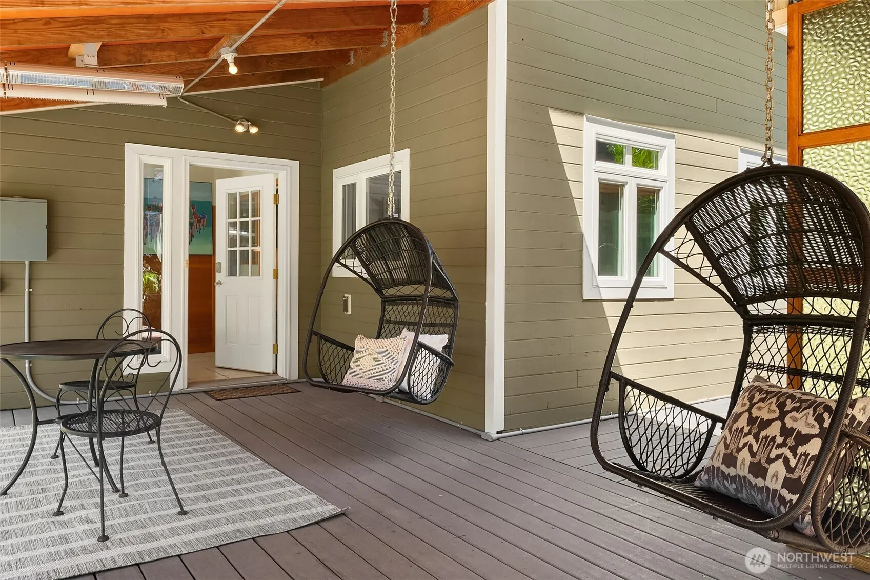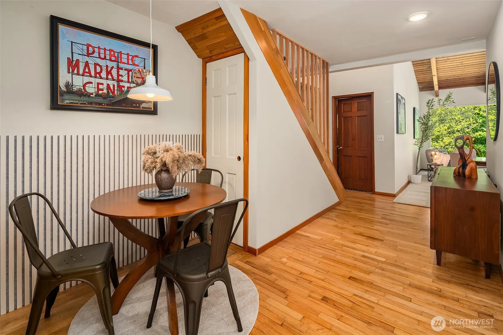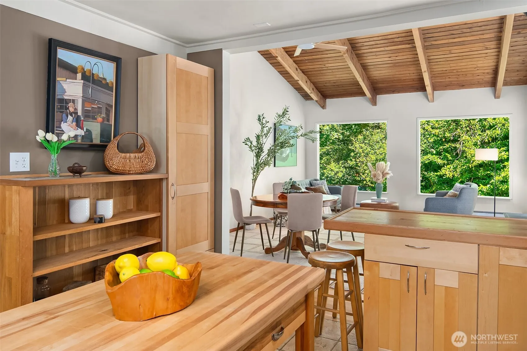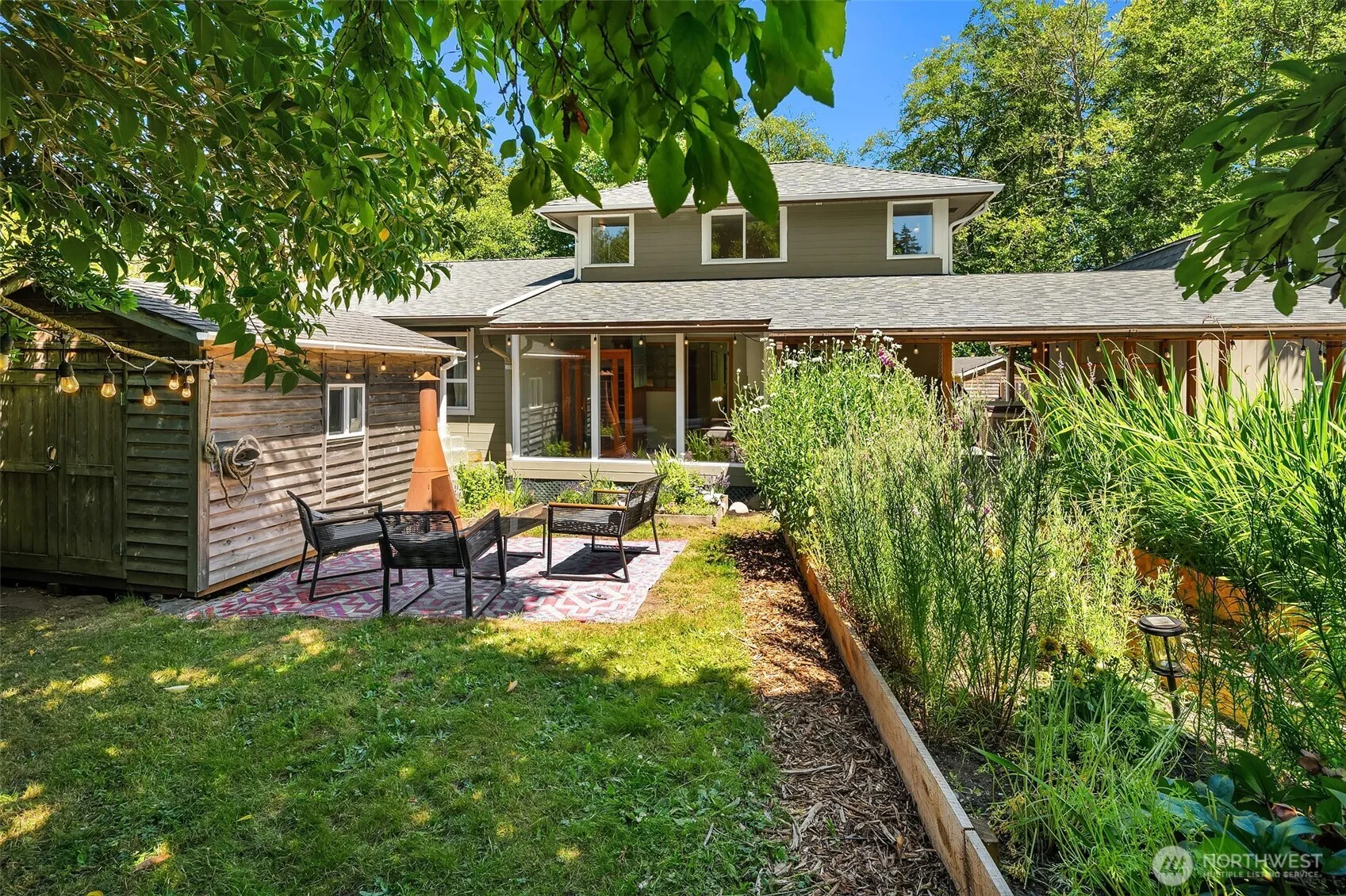 Tucked on a shy acre just moments from the north end ferry, this beautifully remodeled mid-century home blends timeless charm with thoughtful updates. Vaulted ceilings, an open kitchen, and oak hardwoods throughout create a warm, light-filled interior. The tranquil primary suite features an en suite bath, and all bedrooms are generously oversized for comfort. A versatile half-story bonus room offers flexible space for work or play. Outside, enjoy sunny lawns, raised gardens, and a covered, heated deck. A separate bunk house with loads of character and a cozy sleeping loft is perfect for guests. Complete with a sauna, hot tub, and unbeatable convenience, this is a stunning island retreat.