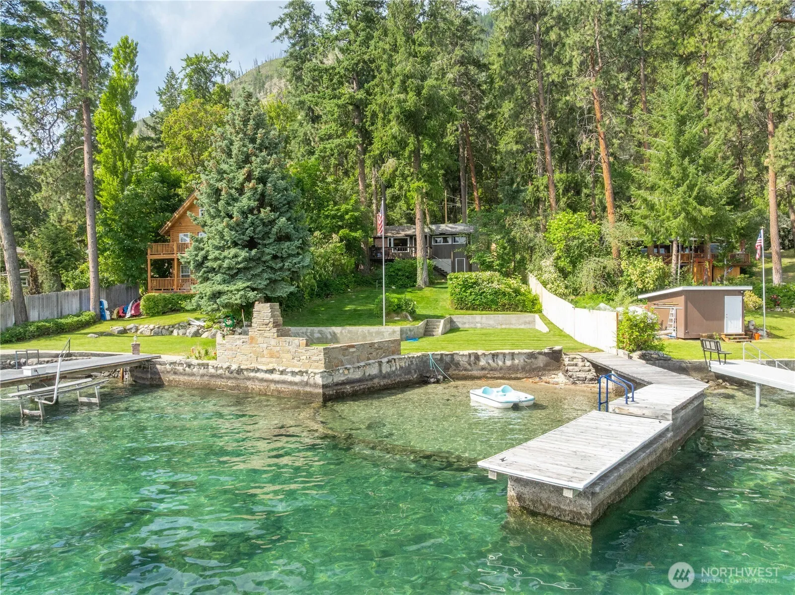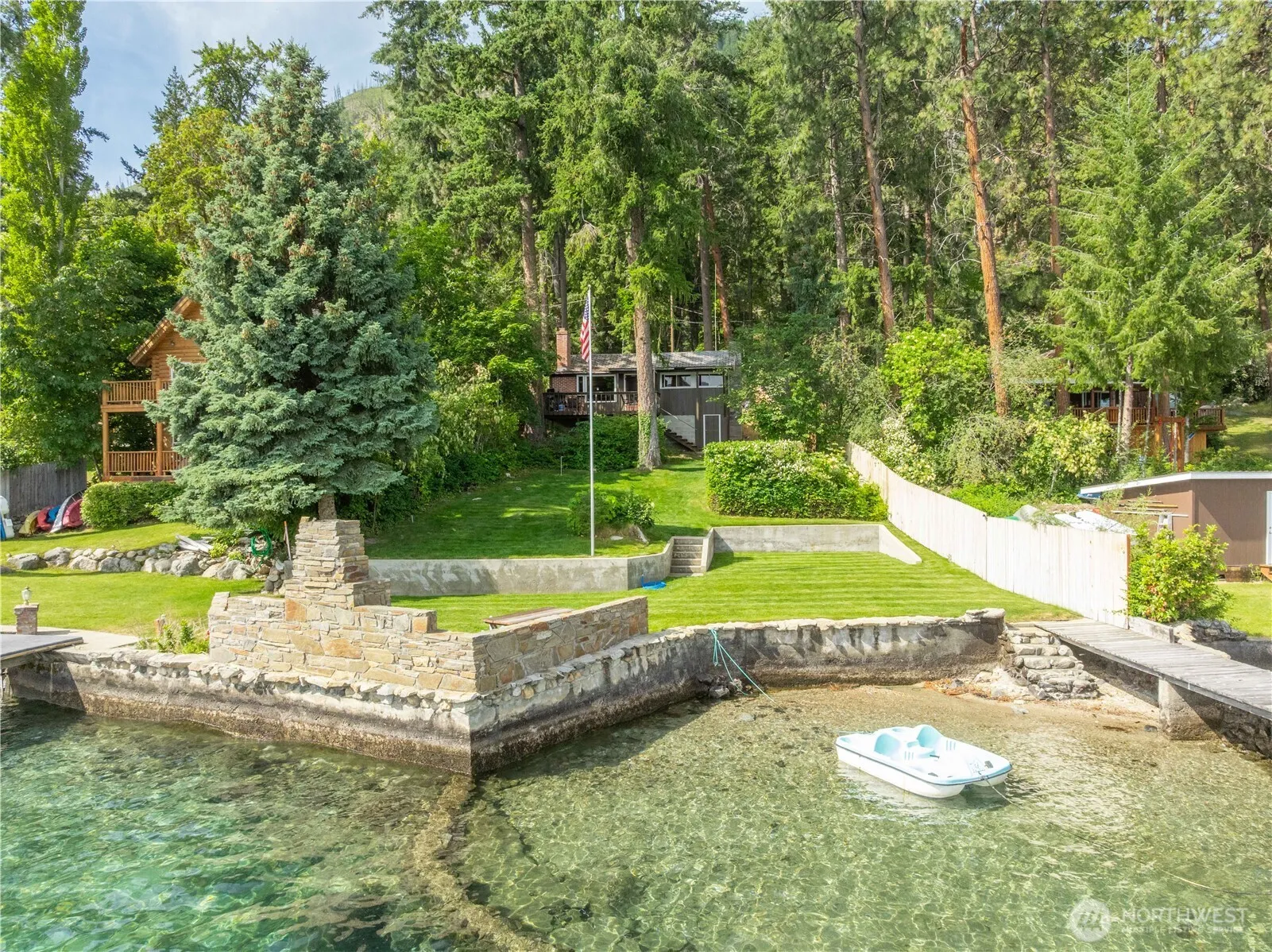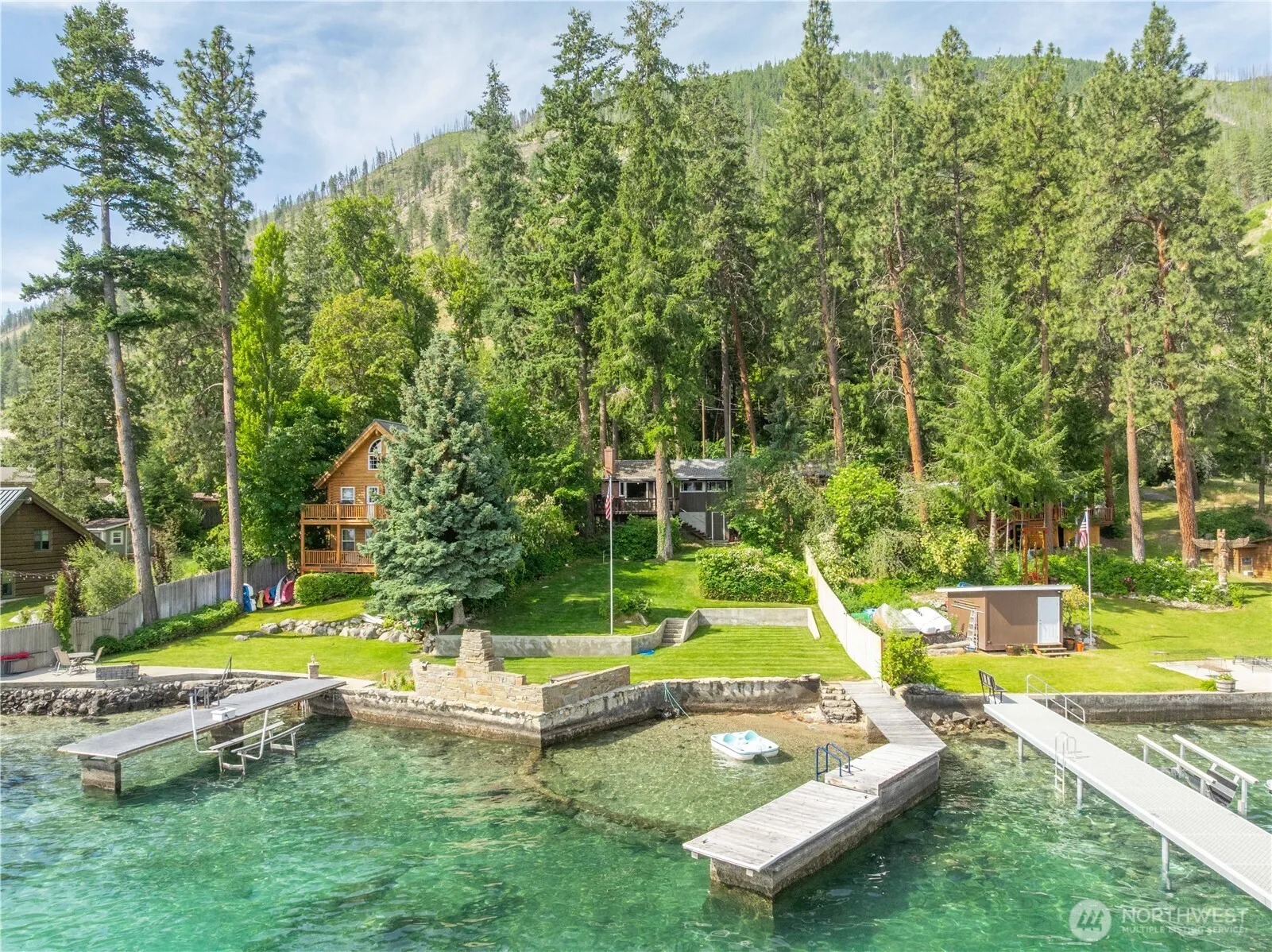 Once-in-a-century Lake Chelan waterfront gem! Nearly 100 years in one family, this classic cabin retreat is full of old Chelan charm. The two-bed, one-bath cabin features pine walls and ceilings, hardwood floors, and a cozy masonry fireplace. Enjoy a flat grassy yard perfect for lawn games, next to a beautifully crafted outdoor fireplace. A poured concrete angled dock provides easy lake access and a protected wading area. This unique lot offers endless potential to build your dream waterfront home. A true legacy property- don’t miss your chance to own a piece of Lake Chelan history!
