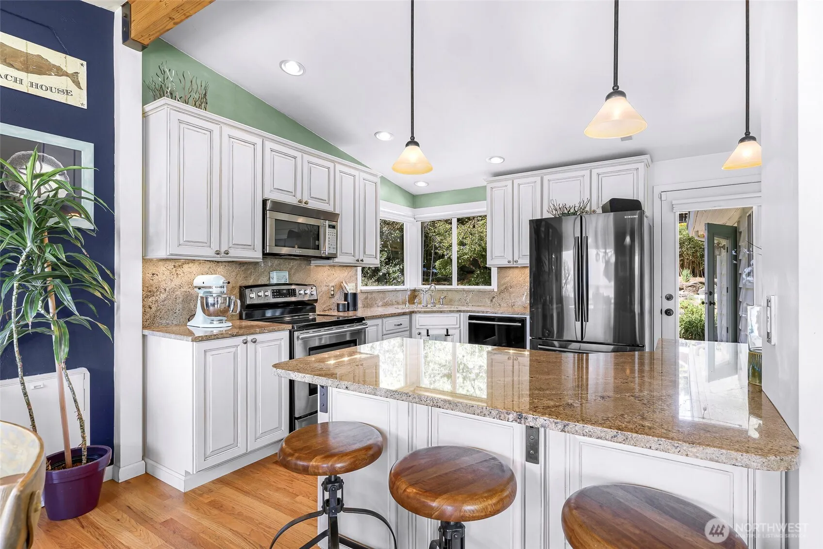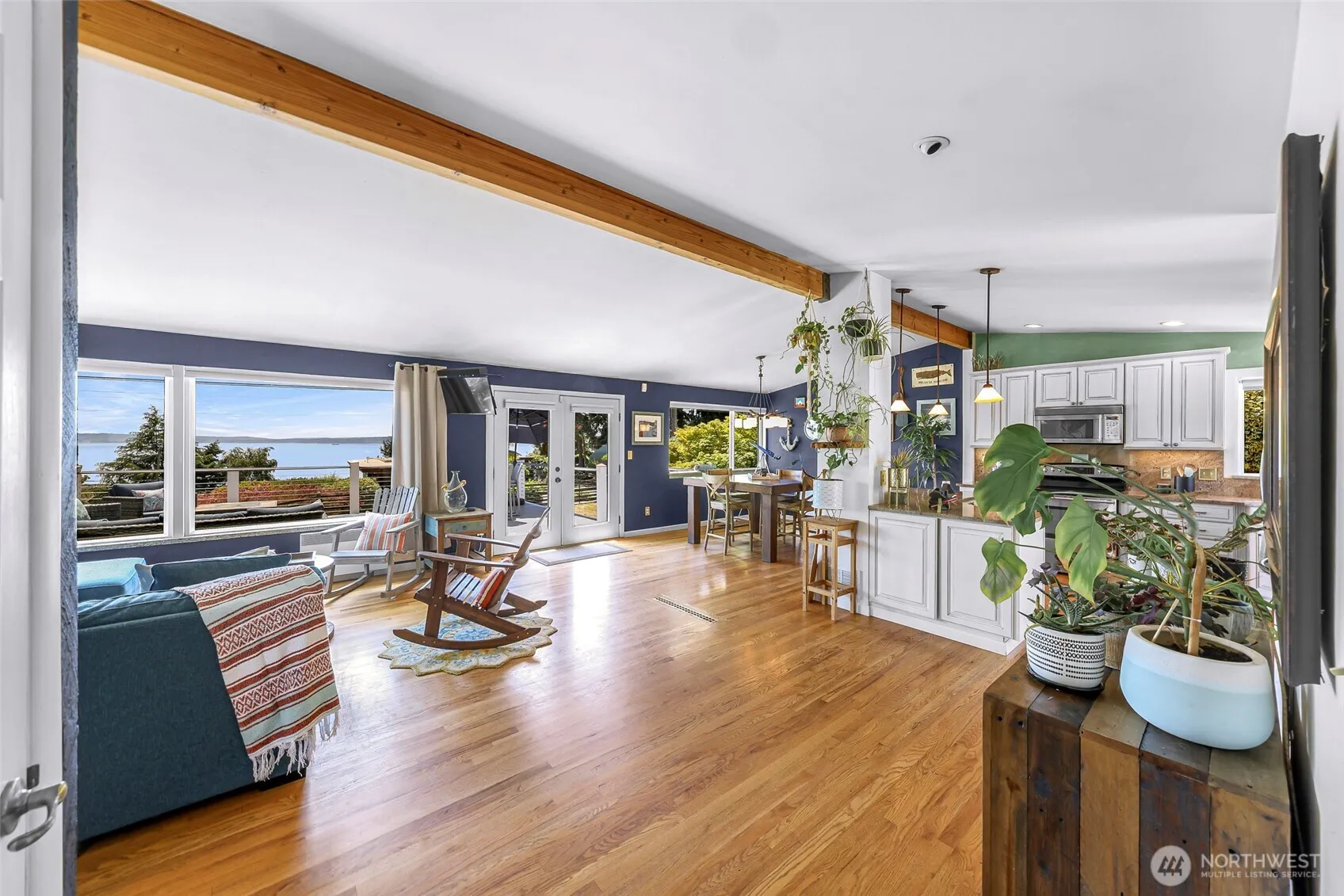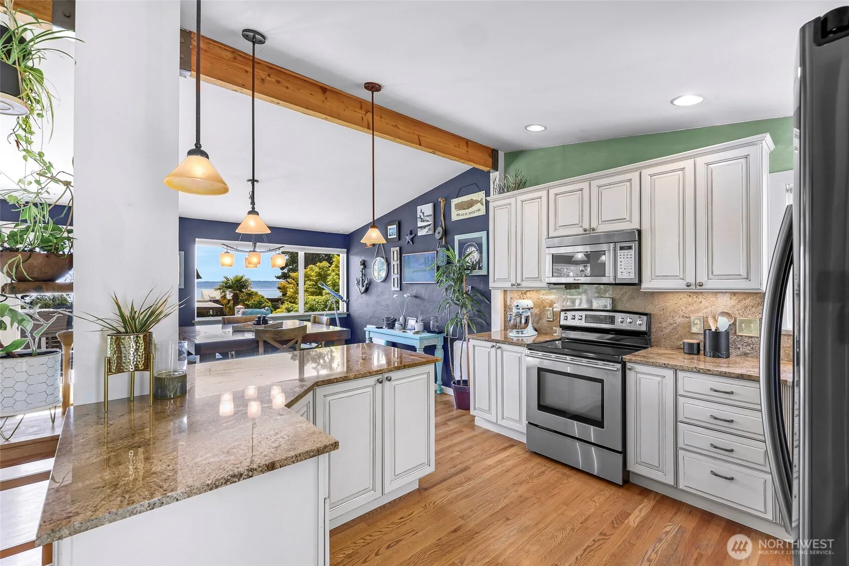 Welcome Home! Live your best life in the Shorewood on the Sound community! Enjoy stunning Sound views from this 3+ bed home on a spacious 1/3-acre lot just moments from the beach (private beach access) The kitchen features Thomasville cabinetry, slab granite counters, a large island, and high-end appliances. The open-concept great room boasts vaulted ceilings, hardwood floors and French doors that step out to a large entertainment style deck. A spacious primary suite w/bonus space w/ french doors. Downstairs offers flexible living with an additional bedroom, rec room with heated stone floors, a 3/4 bath, washer/dryer, and 2nd kitchen—perfect for extended stays or multi-use space. Fenced yards, bluestone patios, lush landscaping & Central AC
