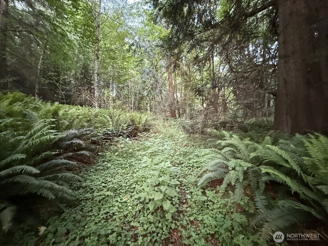 Square, mostly level, parcel – what little slope there is from NE to SW. Nicely timbered w/moderate understory (sword ferns) & a lovely & inviting seasonal creek that runs diagonally across the SW quarter of the parcel. Creek has been reviewed by a wetlands biologist & determined to be non-fish bearing (as the County map indicates), with a probable set back of 50′. Property is served by an extension of Seatter Road (easement). Dirt road across rear (S) boundary line is on the property. Septic feasibility is complete (Nathan Cleaver) & determined to be a gravity system. Wells in the immediate vicinity are fairly shallow (70′ to 89′ – see attachments). Power transformer on a pole at the NW corner of the parcel.
