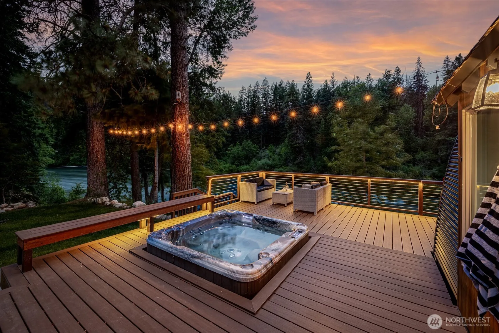 A luxurious, fully turnkey investment retreat on a magical stretch of the Wenatchee River awaits its next owner. Fully furnished and thoughtfully reimagined, this cabin blends contemporary style with natural beauty. Guests enjoy a striking interior remodel and multiple outdoor living spaces on a generous parcel just under three-quarters of an acre, with over 130 feet of sparkling riverfront, tucked away on a quiet dead-end street. Located in the heart of Plain, it’s a short stroll to the local grocery, hardware store, and winery. Generating approximately $150K per year in rental income, this rare riverfront gem offers both a peaceful escape and a proven short-term investment opportunity.