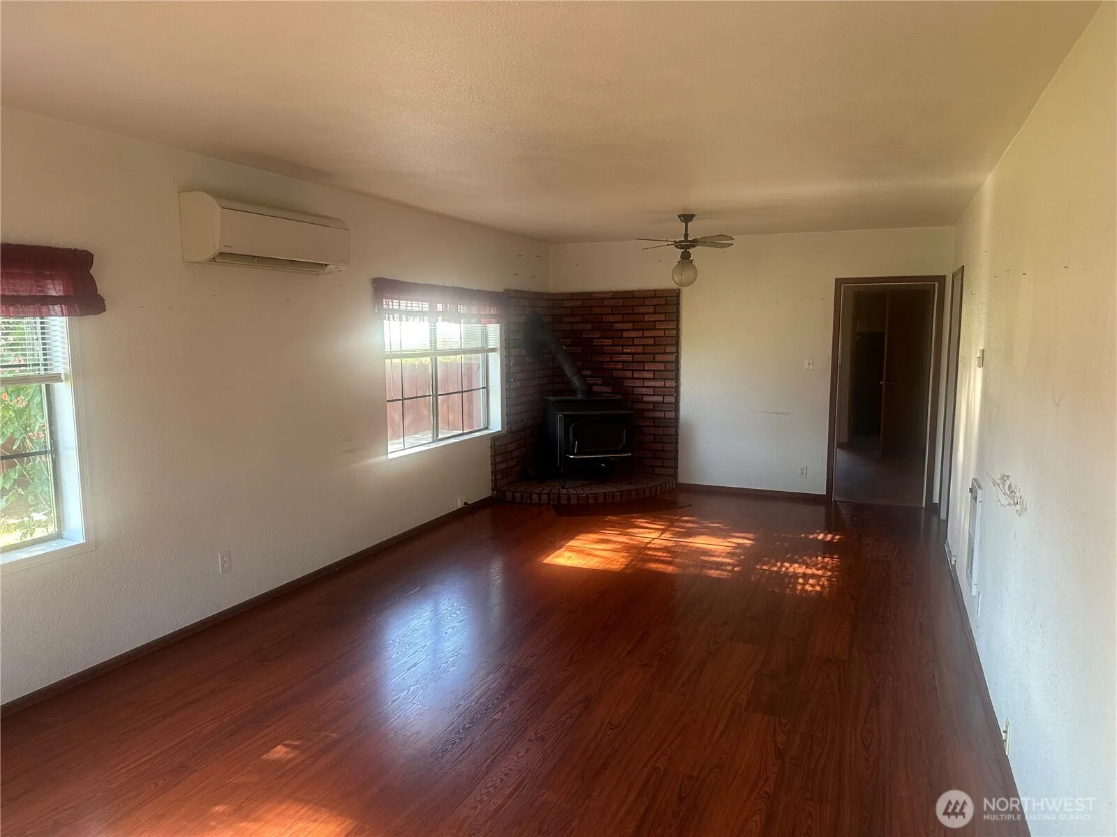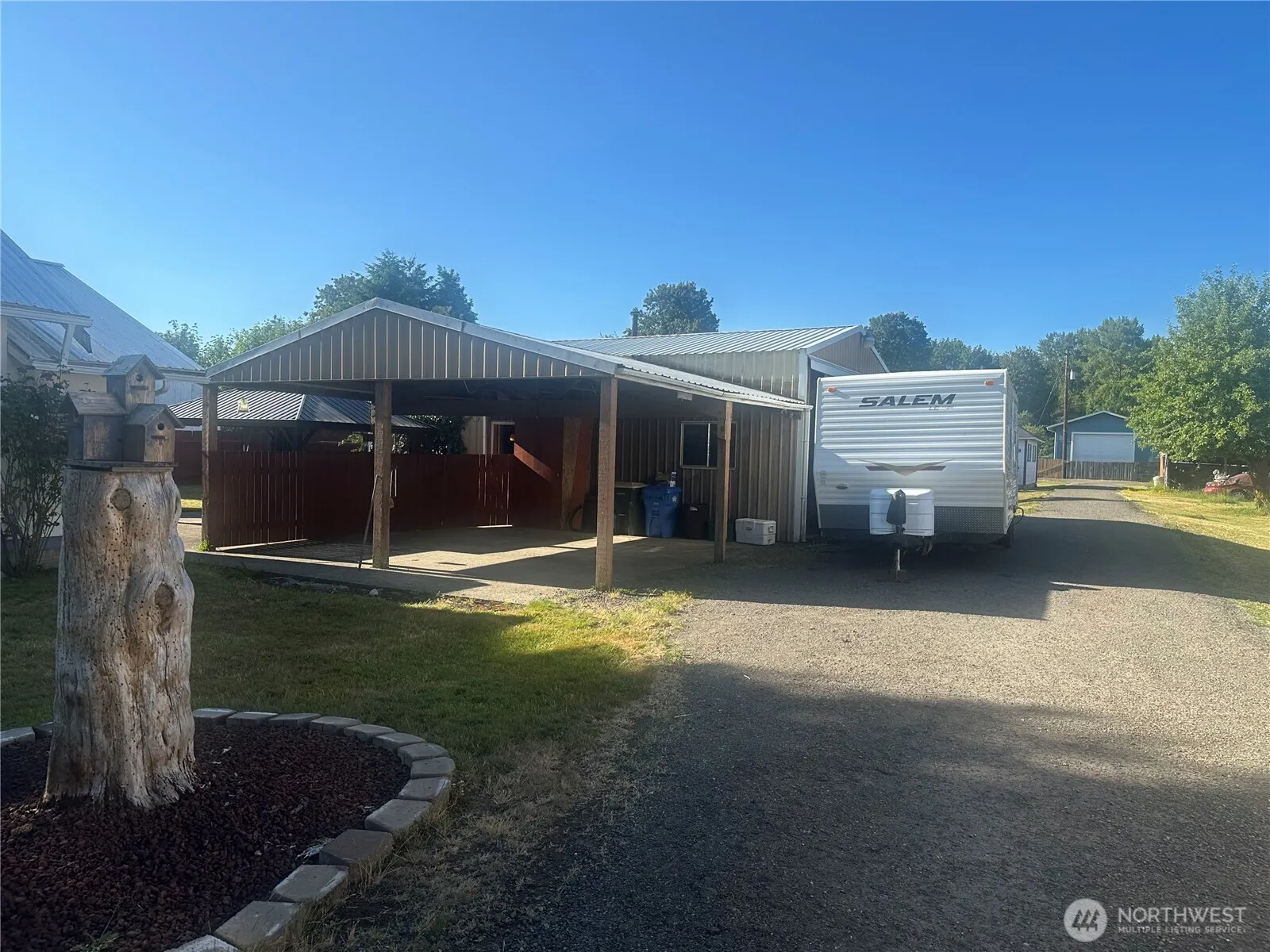 1372 sq ft. 3 bed 1 bath 1 1/2 story home on city lot. Large living room with wood stove. Kitchen with good cupboard space and eating bar. 2 bedrooms downstairs, 2 up with a den/office. 36×24 shop with work benches and wood stove. Large 2 bay carport both with alley access. Fenced back yard, large patio w/ gazebo, brick root cellar, ductless heat pump. Walking distance to all city business including schools.