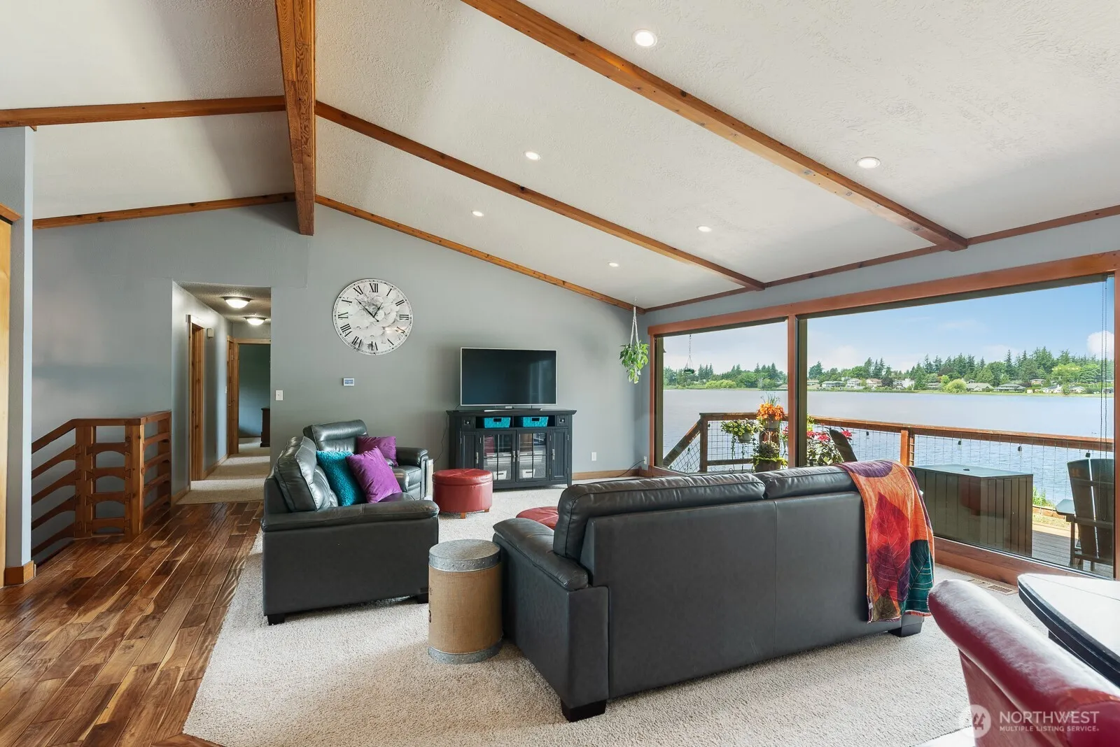 Experience the best of Northwest living in your private lakefront retreat. Secluded, yet minutes to Bellingham & Lynden. A private drive with no traffic and no HOA, this versatile home blends comfort and function. Recent upgrades include a new roof, septic, furnace, A/C, hot water, lower-level flooring, appliances and more. The upper level features vaulted ceilings, a modern kitchen with an expansive island, and picture windows framing 104 feet of no-bank shoreline—perfect for boating, kayaking, or fishing from your own backyard. A primary with lake views, two more bedrooms, and a full bath complete the main floor. Downstairs offers a rec room, two more bedrooms, a bath, hobby room, and laundry with backyard and lake access. A must see!