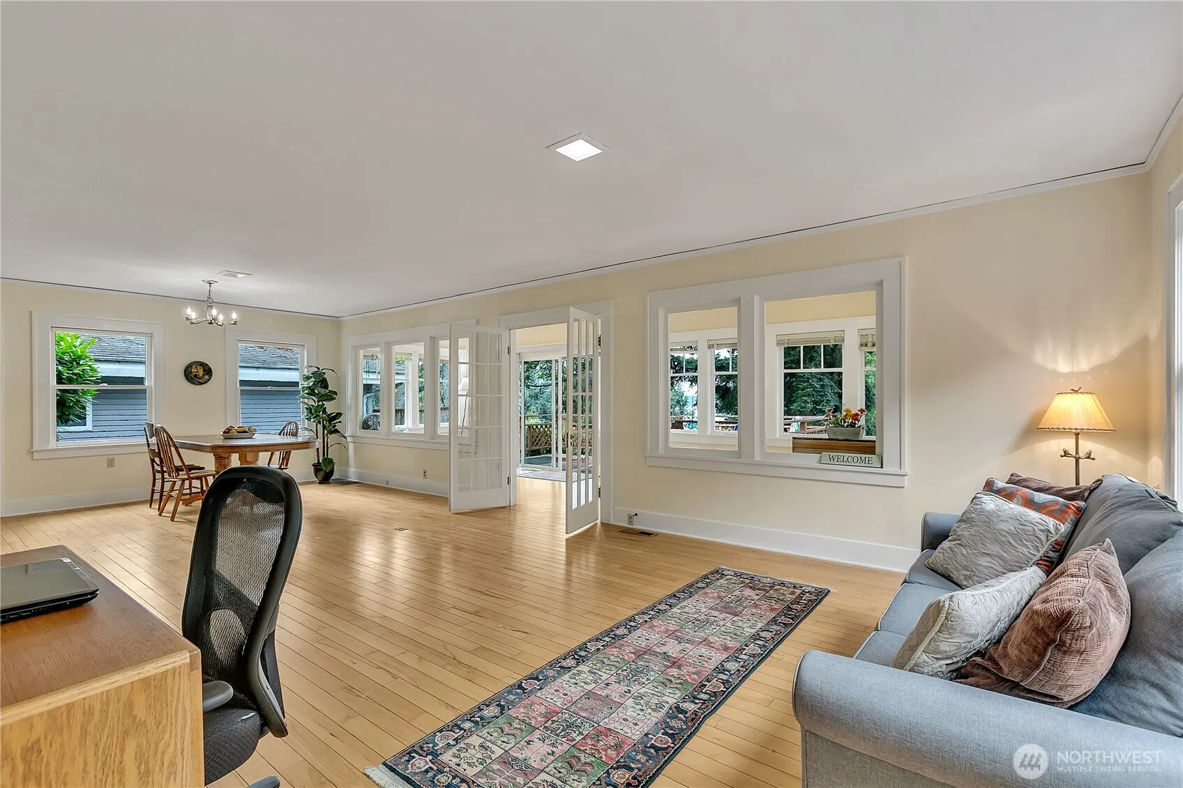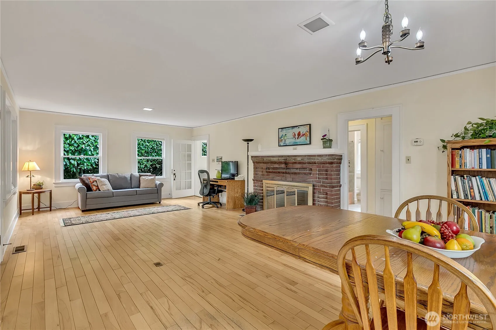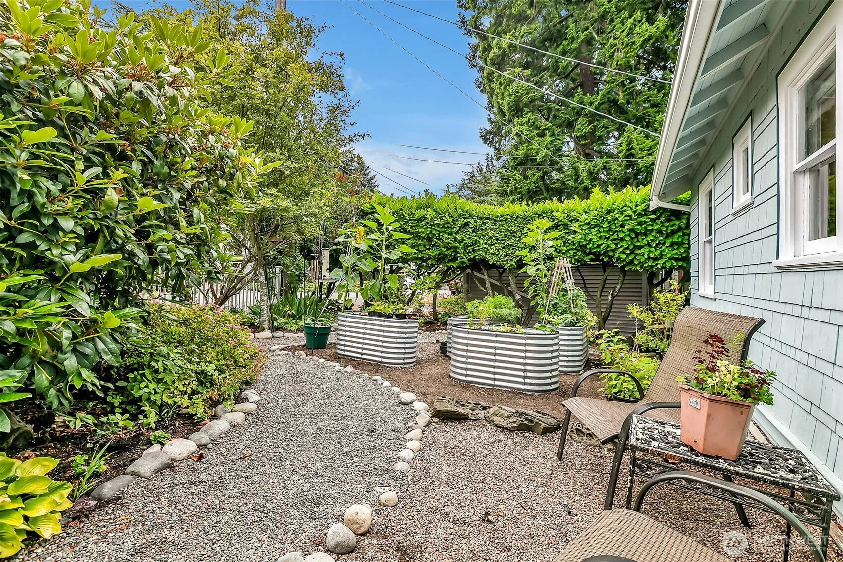 Delightful early 20th century 1 bedroom/1 bath cottage in quiet Seahurst locale w/ sm. Sound & Island views. Circular main floor charm is left intact w/ brick fireplace, original blond wood flooring thru-out bedroom/living/dining & sunroom. An unfinished basement (separate outside entry), plus detached studio/home office, w/ secure storage below, offer expanded opportunities for this unique property. Updates include electrical panel & vinyl sliding door to deck, kitchen garden window and easy maintenance landscaping including raised garden beds. A medium sized rear deck is accessed from sunroom – great for entertaining or relaxing while offering the privacy you will appreciate and enjoy.