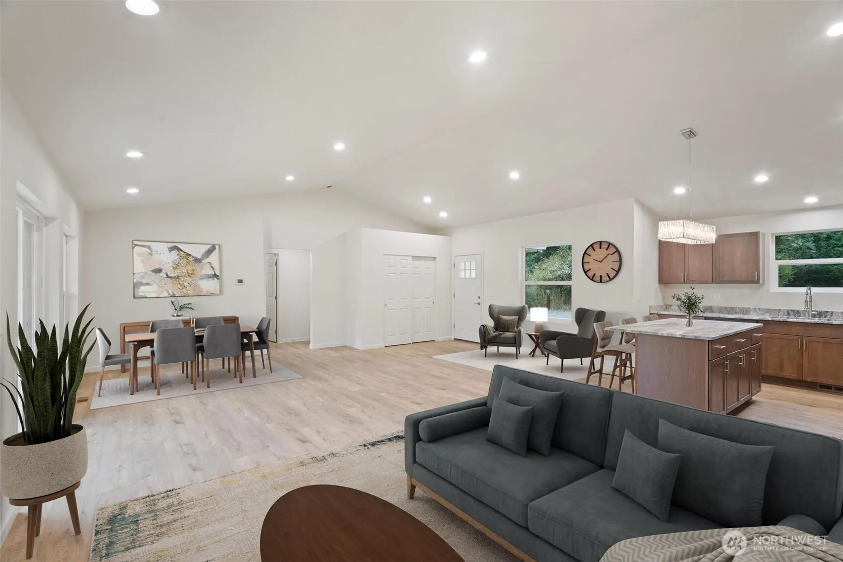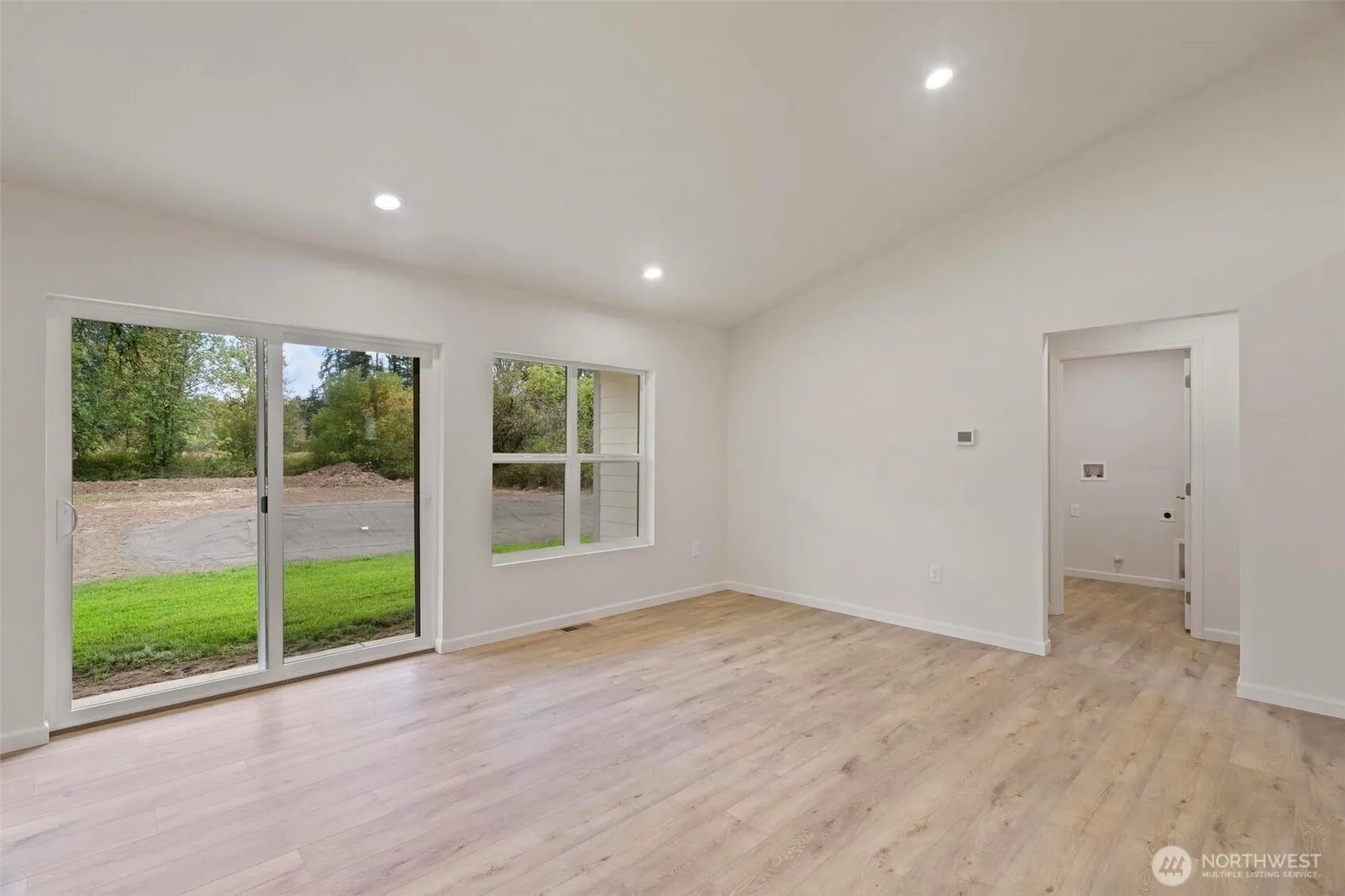 Custom Built, New 3Bd 2Bth, single-level home on half acre. Open concept w/vaulted ceilings & waterproof LVP flooring throughout. Kitchen w/new modern color cabinetry, island, granite counters & backsplash. Stainless appliances including dishwasher, stove, fridge & microwave. Stainless undermount sink w/disposal. Primary suite on opposite side of home from other bedrooms w/attached bath, double sinks, custom tiled 60in walk-in shower & walk-in closet. Energy efficiency features w/heat recovery ventilation, extra attic insulation, window u-factor .24, hybrid water heater, high efficiency forced air heat & ac. Wired for Fiber Internet. Large concrete driveway w/side trailer parking. No HOA. Home is move-in-ready.