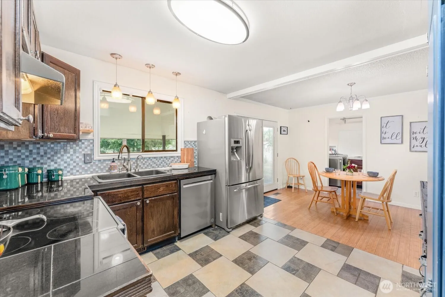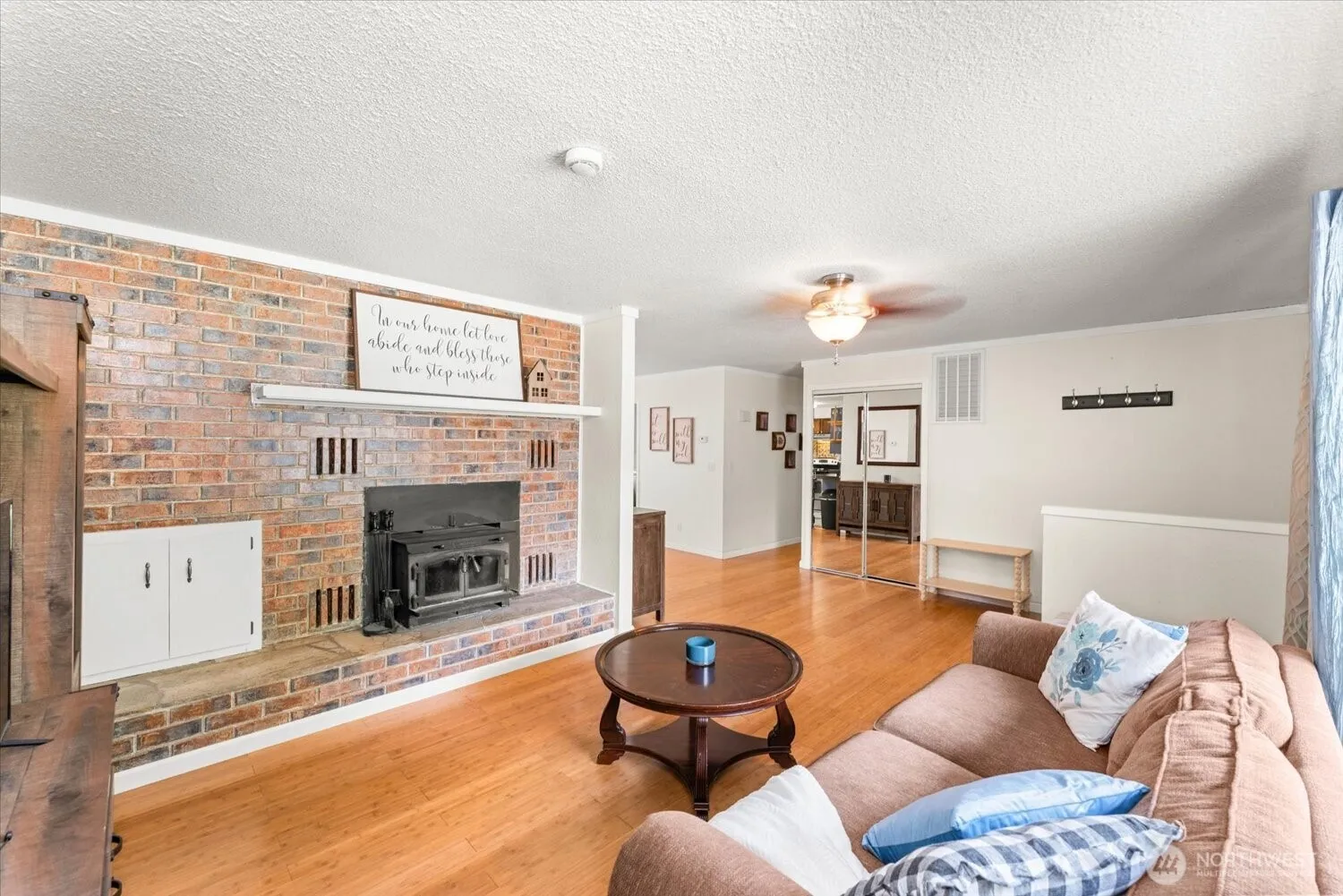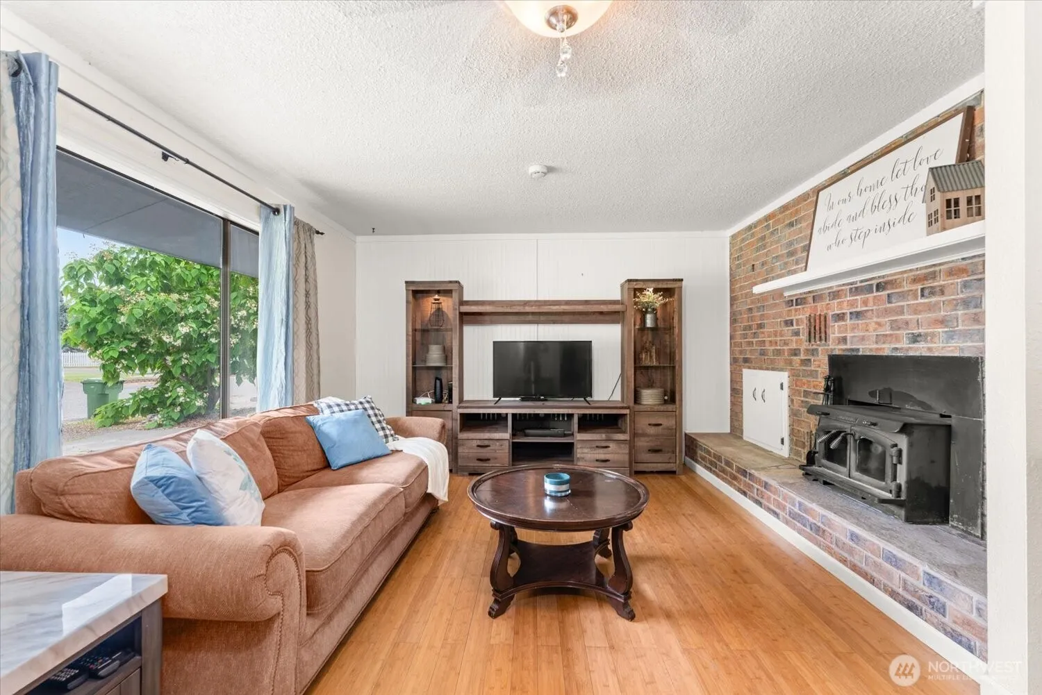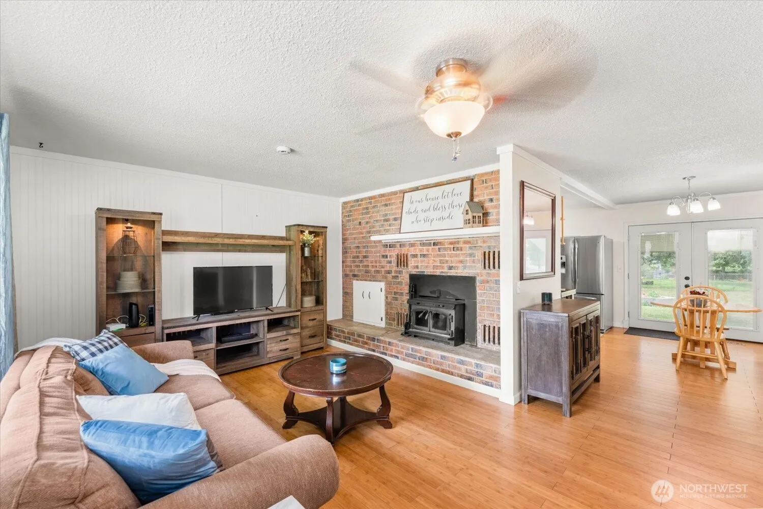 Charming 3-bed, 2-bath rambler offering ideal main level living. The living room features a wood-burning fireplace & flows into the dining area off the well equipped kitchen complete w/stainless appliances & granite composite sink overlooking the backyard & covered patio. Bamboo flooring runs throughout, w/tile in the baths. All bedrooms have ceiling fans & spacious closets, and the primary bdrm has a private ¾ bath. The 3rd bdrm w/ built-ins makes a perfect office or nursery. Enjoy a dedicated laundry room w/ utility sink & cabinetry. Outside features include mature landscaping, a sprinklered front yard & garden area, covered patio, firepit, storage shed, & oversized 1-car garage w/workspace & man door to backyard. Forced air & central a/c
