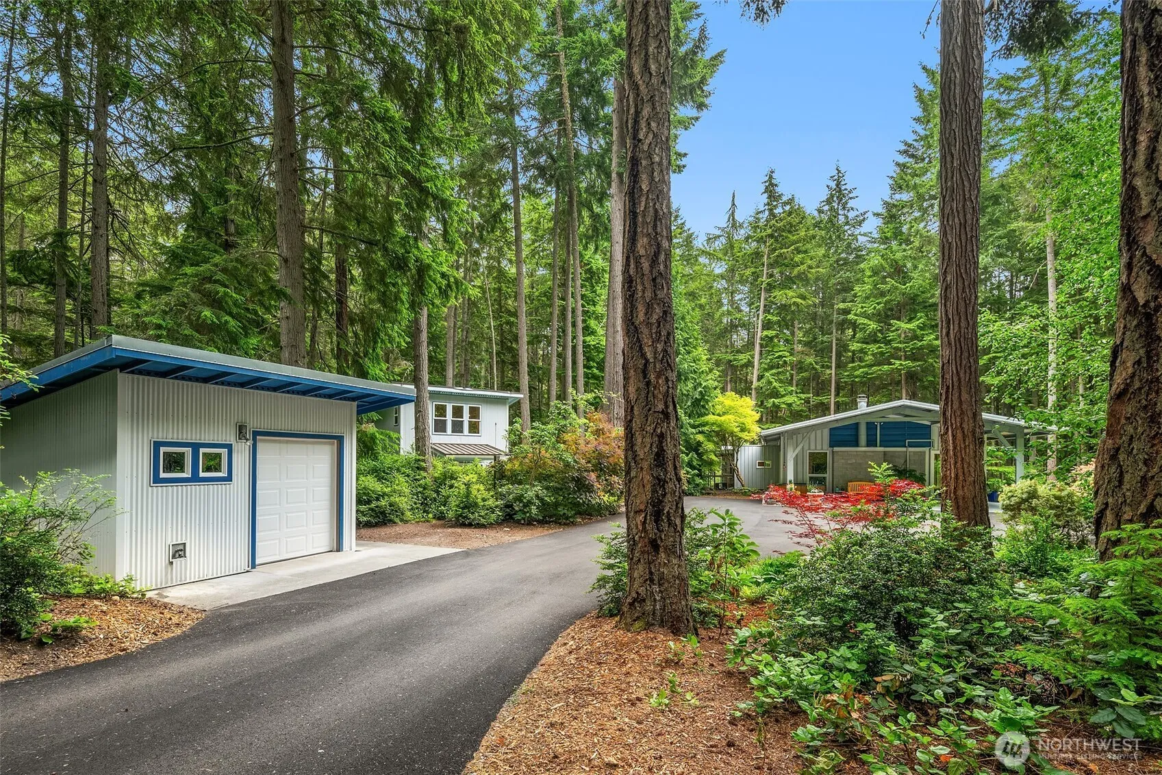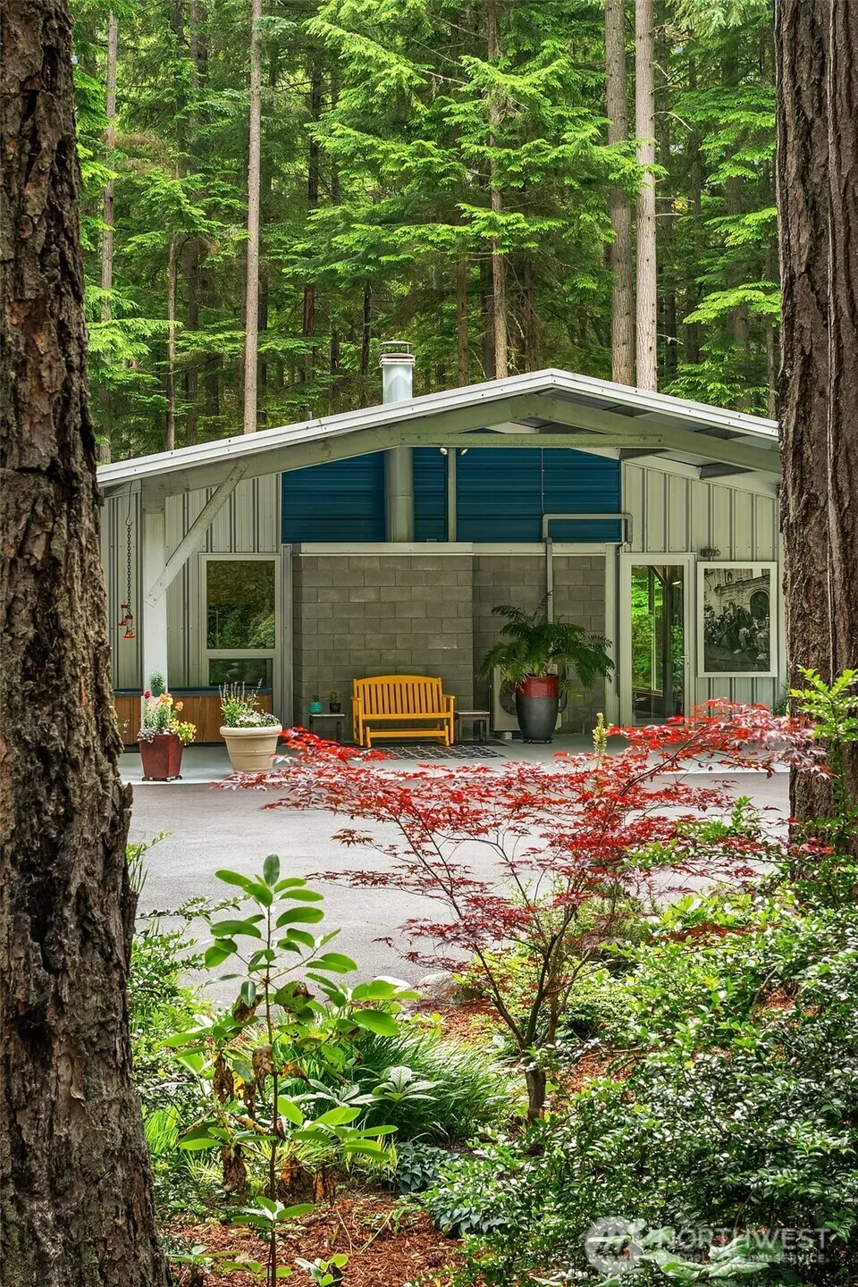 Custom built in 2009, this Westside 4+ acre retreat presents a private, harmonious balance of northwest wilderness and modern, up scale style. Set in a serene forest, the grounds host walking trails that wind through towering trees and natural beauty. Constructed from galvanized steel, the home showcases clean lines, steel accents, and expansive floor-to-ceiling windows that exemplify indoor/outdoor living. Heated concrete floors, Innotech doors/windows and heat pump, elevate comfort and efficiency. A secondary apartment exudes warmth and character, offering versatility as a guest suite or hobby space. Fully fenced and private, this picturesque refuge present a unique lifestyle blending modern comfort and peaceful privacy!