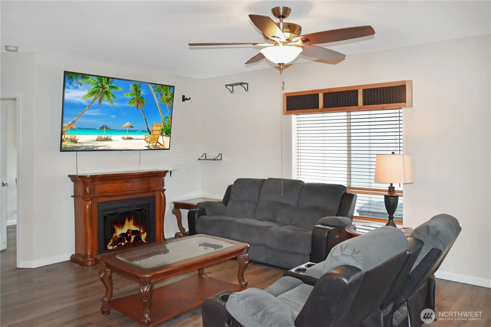 Welcome to the perfect blend of style & energy efficiency in this beautiful 2020 manufactured home located in an all-ages park! This thoughtfully designed 3-bed, 2-bath home features a spacious open-concept Kit, DR, and LR—ideal for hosting dinner parties & everyday living. You’ll love the modern black appliances, large center island, and recessed ceiling in the dining area that adds a touch of elegance. The interior showcases modern tape-and-texture walls, upgraded interior doors, upgraded insulation, hardwood-like laminate flooring, & custom valances. Enjoy covered parking and additional storage for your tools. This move-in-ready home is perfectly located near JBLM, shopping, schools, restaurants, parks, & more—Welcome Home!