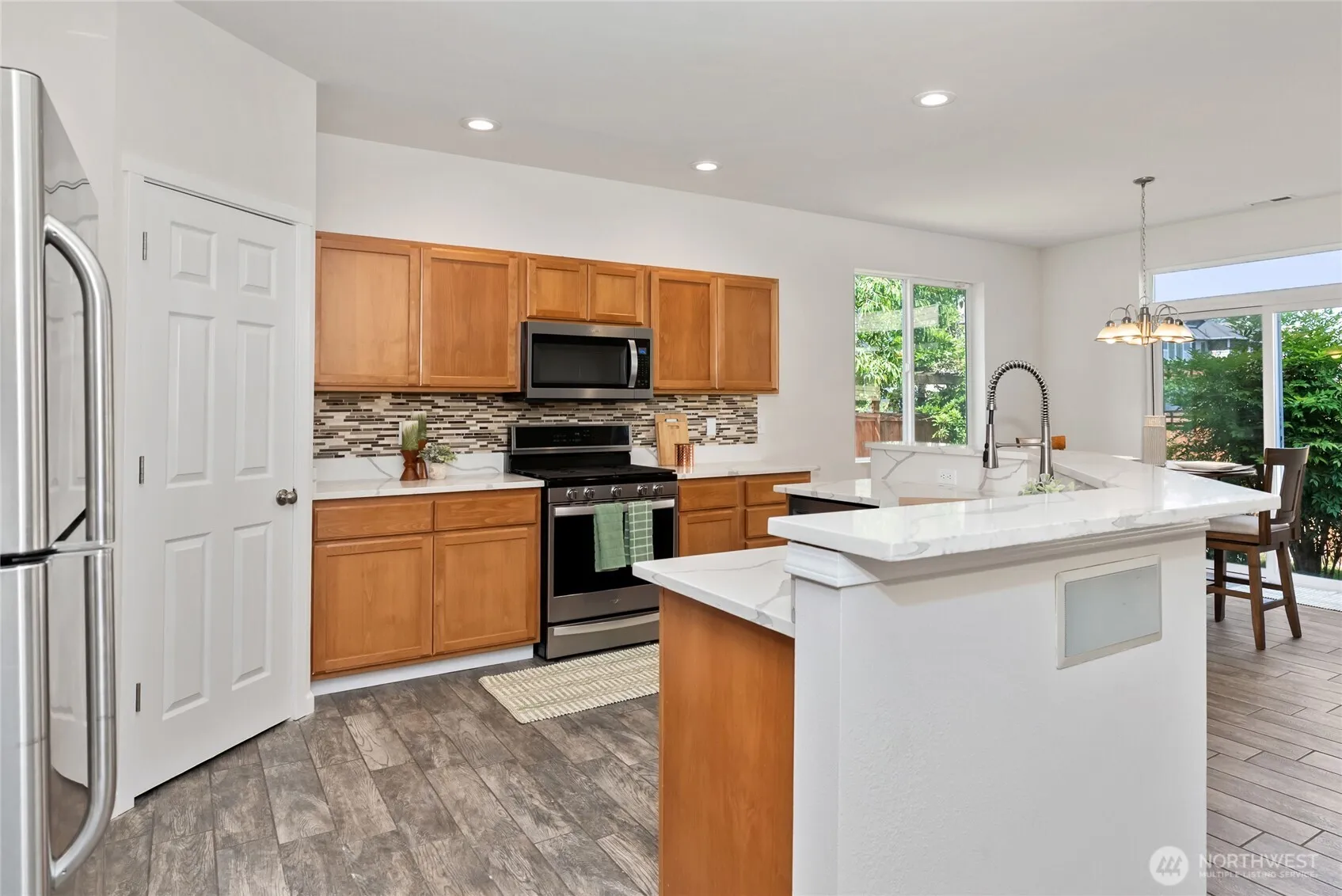 Move-in ready, this stunning 5-bed, 2.5-bath home is located in a highly sought-after neighborhood within the top-rated Tahoma School District. Enjoy peace of mind with a brand new roof and stay comfortable year-round with central A/C and a heat pump. The spacious kitchen boasts stainless steel appliances and flows seamlessly into the dining and living areas, perfect for entertaining. Beautiful tile flooring adds elegance throughout the main level. A spacious office on the main floor offers flexibility for work-from-home or multigenerational living. Oversized bedrooms feature walk-in closets for ample storage. Close to parks, trails, and all the community has to offer!