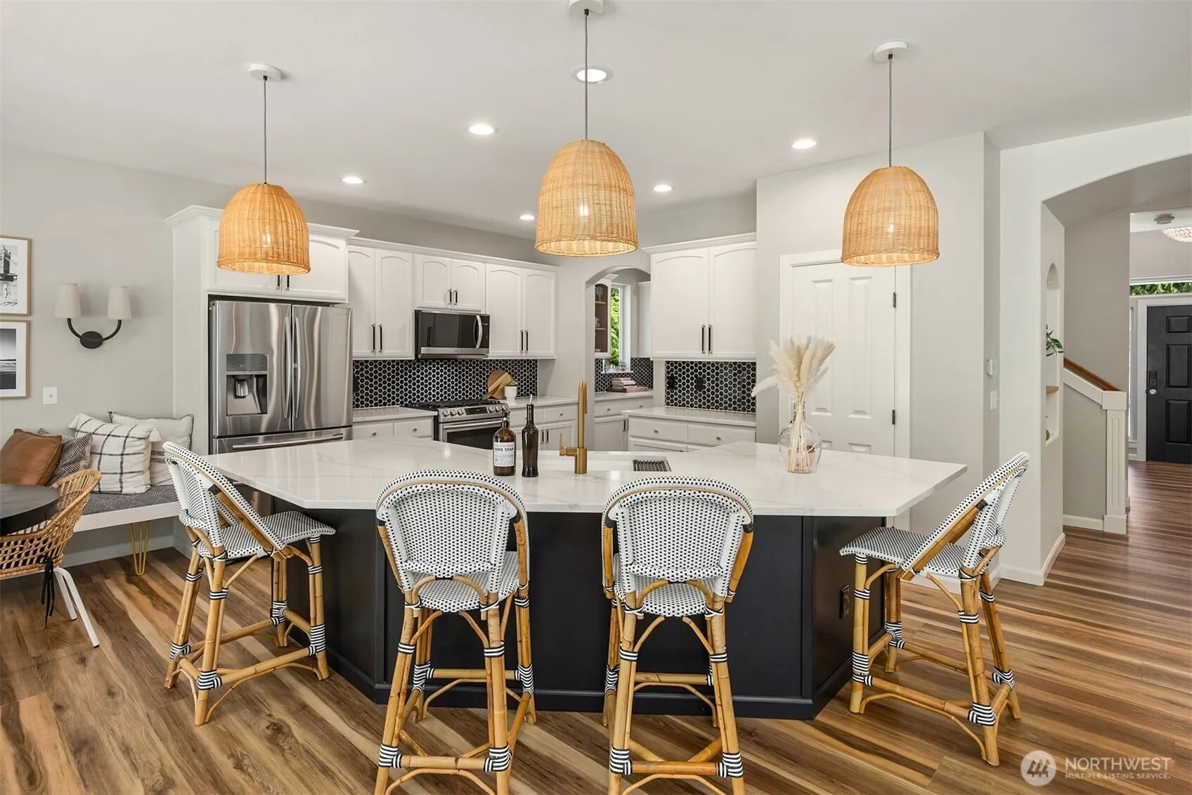 Glamour, beauty & completely updated! This distinctive Newberry Woods home has been professionally remodeled & designed. Every space is beautiful, immaculate, and so livable! Durable LVP flooring throughout, quartz countertops, lovely lighting. A gracious home for everyday & entertaining, including a generous bonus room, den & open kitchen/great room. The amazing .46ac yard is private & features an oversize patio & plenty of room for pets & play! Fresh exterior paint just completed. Newberry Woods is a fabulous large lot neighborhood complete with private neighborhood park, located minutes to Silverdale & directly across the street from Kalhowya Secondary School & Newberry Heritage Park with miles of trails! Such a special property!