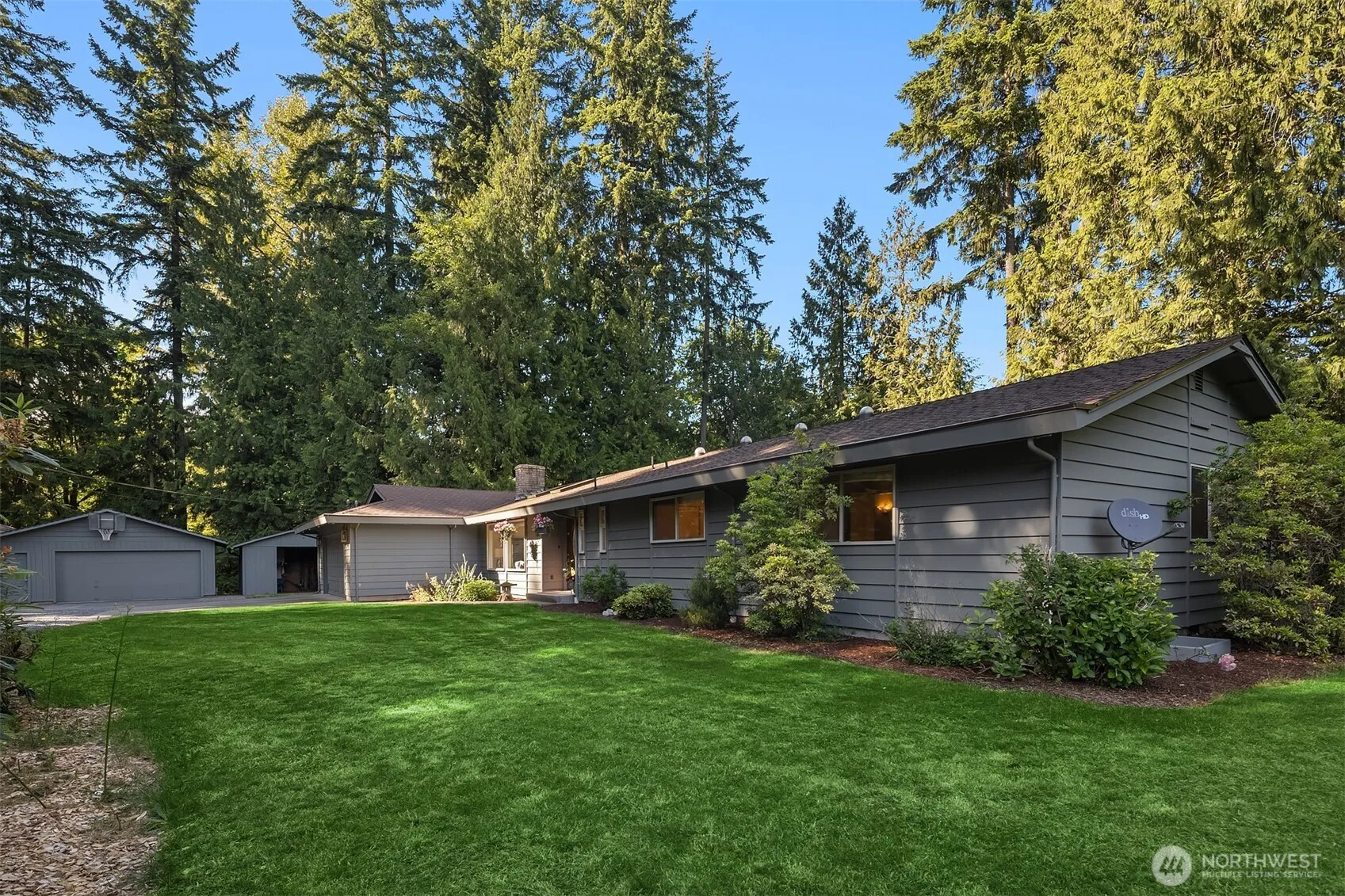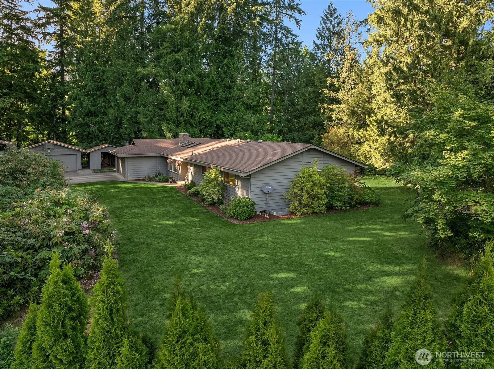 ALL PAVED ROADS LEAD TO THIS PRIVATE PARADISE! Nestled on nearly 4 ACRES, this peaceful retreat offers a mix of vibrant gardens, open space, & mature border trees for seclusion & serenity. Enjoy 2 level terraces w/easy access & relax in your backyard to the tranquil sounds of a seasonal creek flowing on the lower edge of the property. A 2nd well is ready for garden irrigation. This home features new kitchen countertops, beautifully remodeled baths, 3YO FURNACE w/HEAT PUMP, & a WHOLE HOUSE GENERATOR for peace of mind. A 4th bedroom (4 BED SEPTIC) is currently split into a den/exercise rm, providing flex living space. Add’l upgrades: UV WATER FILTRATION SYSTEM, DETACHED 2 CAR GARAGE/SHOP w/220v outlet & storage shed/dog run. PRE INSPECTED.