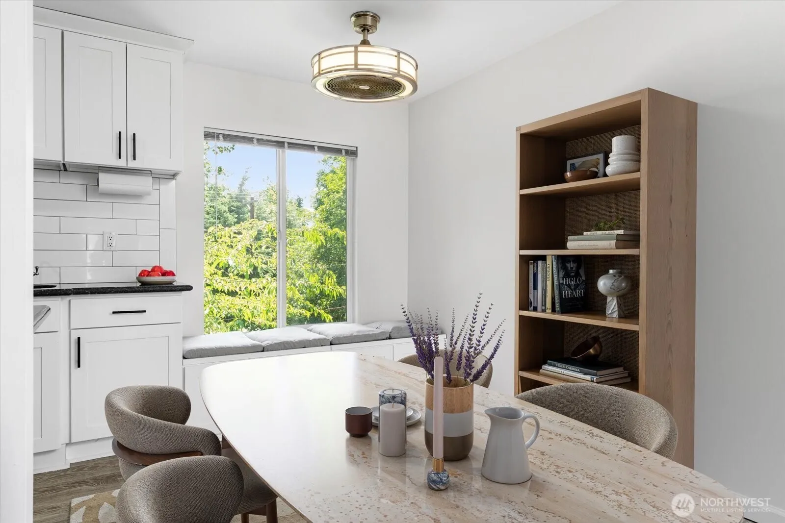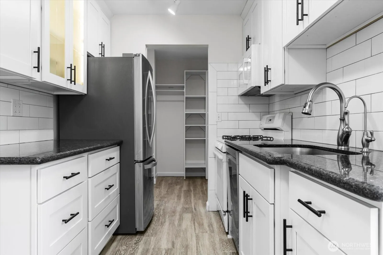 $10K toward closing + full inspection. Updated top-floor 2-bed/1-bath condo offers exceptional value! Bright 819 sq ft end-unit in a well-run 40-unit community. Features fresh paint, granite counters, pull out drawers. A deep stainless sink with reverse osmosis faucet, newer stainless appliances, built-in nook with storage bench. Overhead LR storage, fireplace. Master with walk-in, built-in closet in 2BRs, and private balcony. Enjoy beautiful oak/cork laminate floors, tile in BA, dimmable lighting, and an XL washer/dryer. Rsvd pkg. HOA includes pool, grounds, W/S/G. Building updates: new roof, paving, mailbox; siding/paint 2017. Pet-friendly! Walk to dining, bus, park, Highly rated schools. Near the beach, Boeing, Light R and Aldwood Mall.
