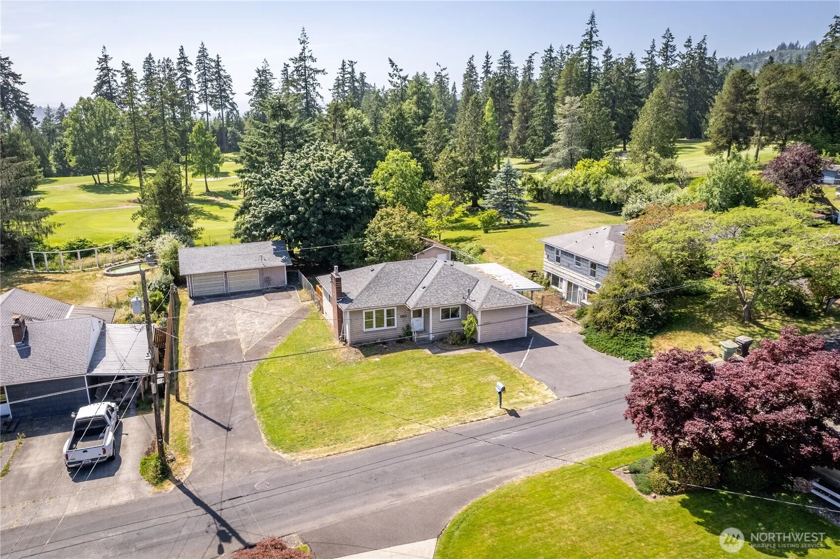 How does just under a half-acre on the 4th hole of the Longview Country Club sound? 4-bedroom house. Dead-end street in a great neighborhood. Original hardwood floors are visible in two bedrooms and may extend beneath the carpet throughout. 832 sq. ft. shop with a new roof and new electrical panel. Brand new pressure treated back deck. Update the house or keep it the same, up to you. Don’t miss this one!