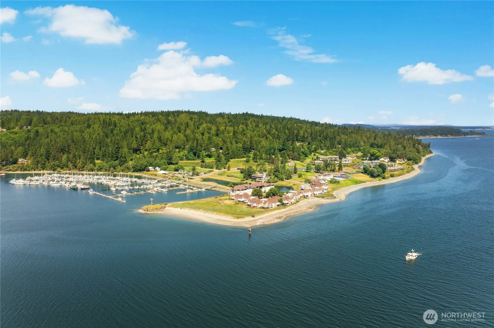 Escape to this impeccable & picturesque Port Ludlow Bay Village WATERFRONT retreat. Seaside & resort lifestyle living awaits! Next to Port Ludlow Inn, marina & yacht club. Light & bright abode with soaring ceilings & walls of windows overlooking the water with great panoramic views in all directions. The great room features hardwood, custom built-ins & fireplace. Enjoy newer Bosch appliances & hickory cabinets with pullouts. Find a primary suite on each level. The upstairs primary boasts water views & a sumptuous, renovated bath. The Beach Club next door includes pools, tennis/pickleball & more. Launch your kayak or relax on the back covered deck soaking it all in. Endless recreation! Short term rentals allowed. Furnishings sold separately.