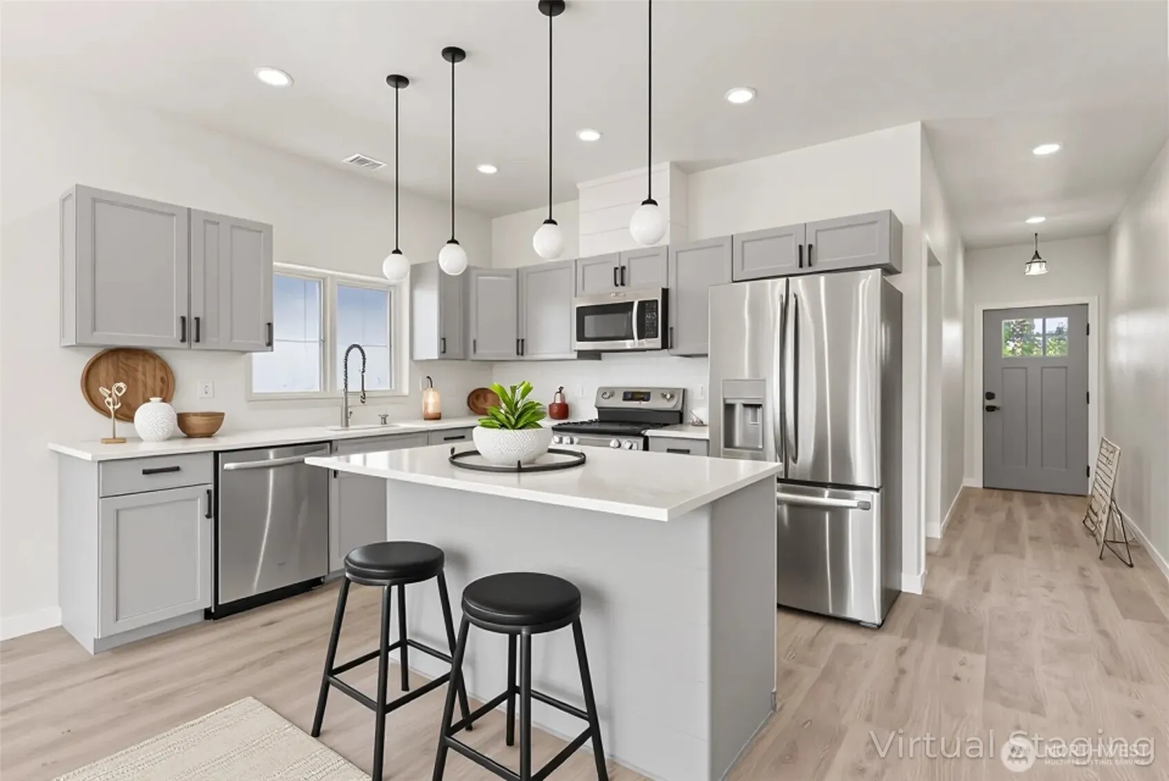 Come take advantage of this unique opportunity to own a new construction single level condo in desirable location. Home has never been lived in before and features, Quartz counters, island kitchen, A/C, laminate floors throughout, all appliances included, quality fixtures-finishes, and more! This is a spacious 869 sq ft 2bd 1 bath home. The attached garage is finished and could make a nice gym or office if need be. Outside you will enjoy a low maintenance landscape and your own back porch. This is some of the best priced new construction housing in SW washington! MUST SEE