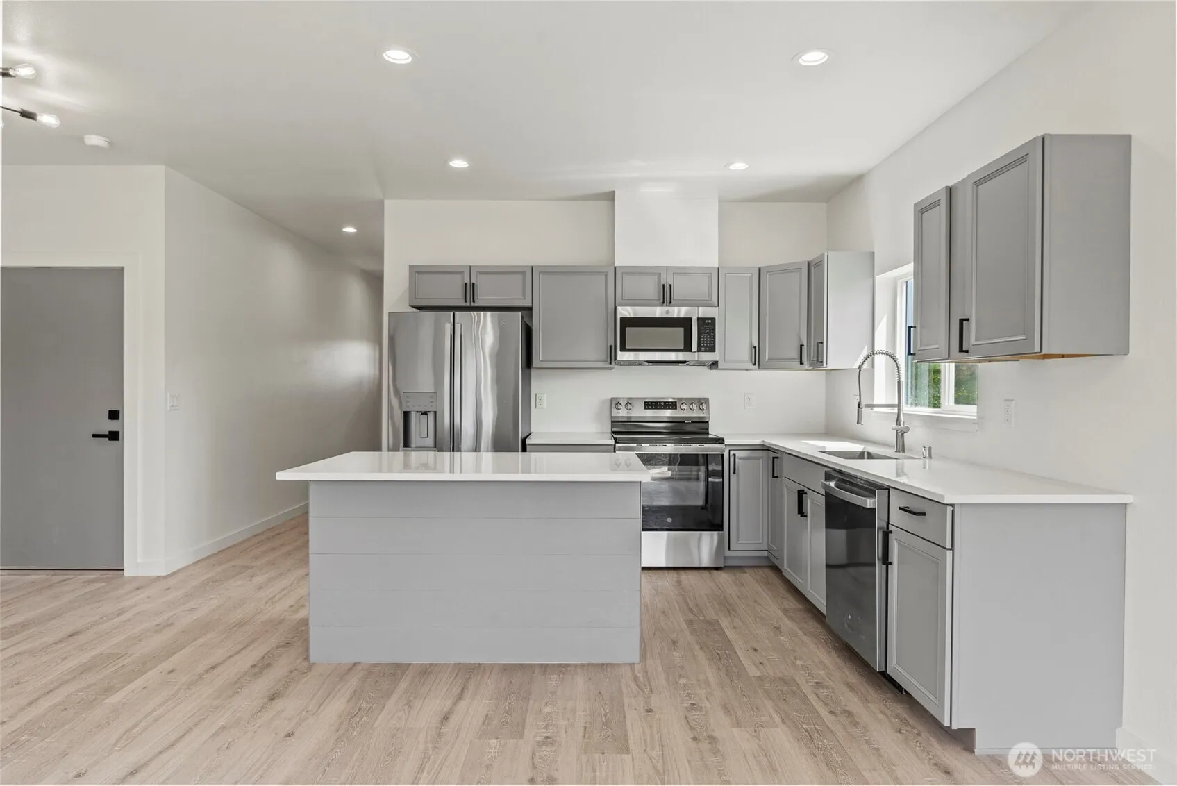 Come take advantage of this unique opportunity to own a new construction single level condo in desirable location. Home has never been lived in before and features, Quartz counters, island kitchen, A/C, laminate floors throughout, all appliances included, quality fixtures-finishes, and more! This is a spacious 869 sq ft 2bd 1 bath home. The attached garage is finished and could make a nice gym or office if need be. Outside you will enjoy a low maintenance landscape and your own back porch. This is some of the best priced new construction housing in SW washington! MUST SEE