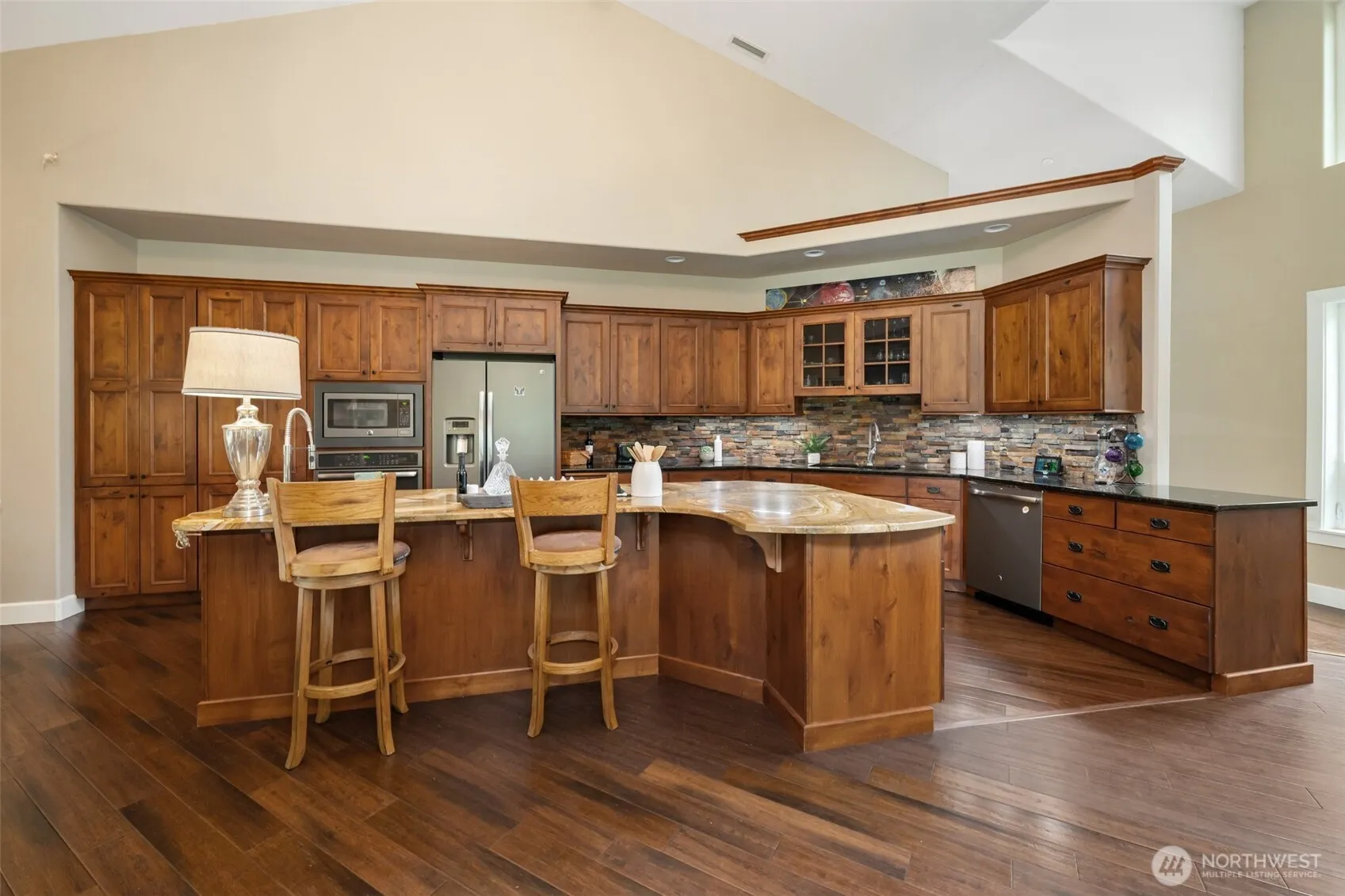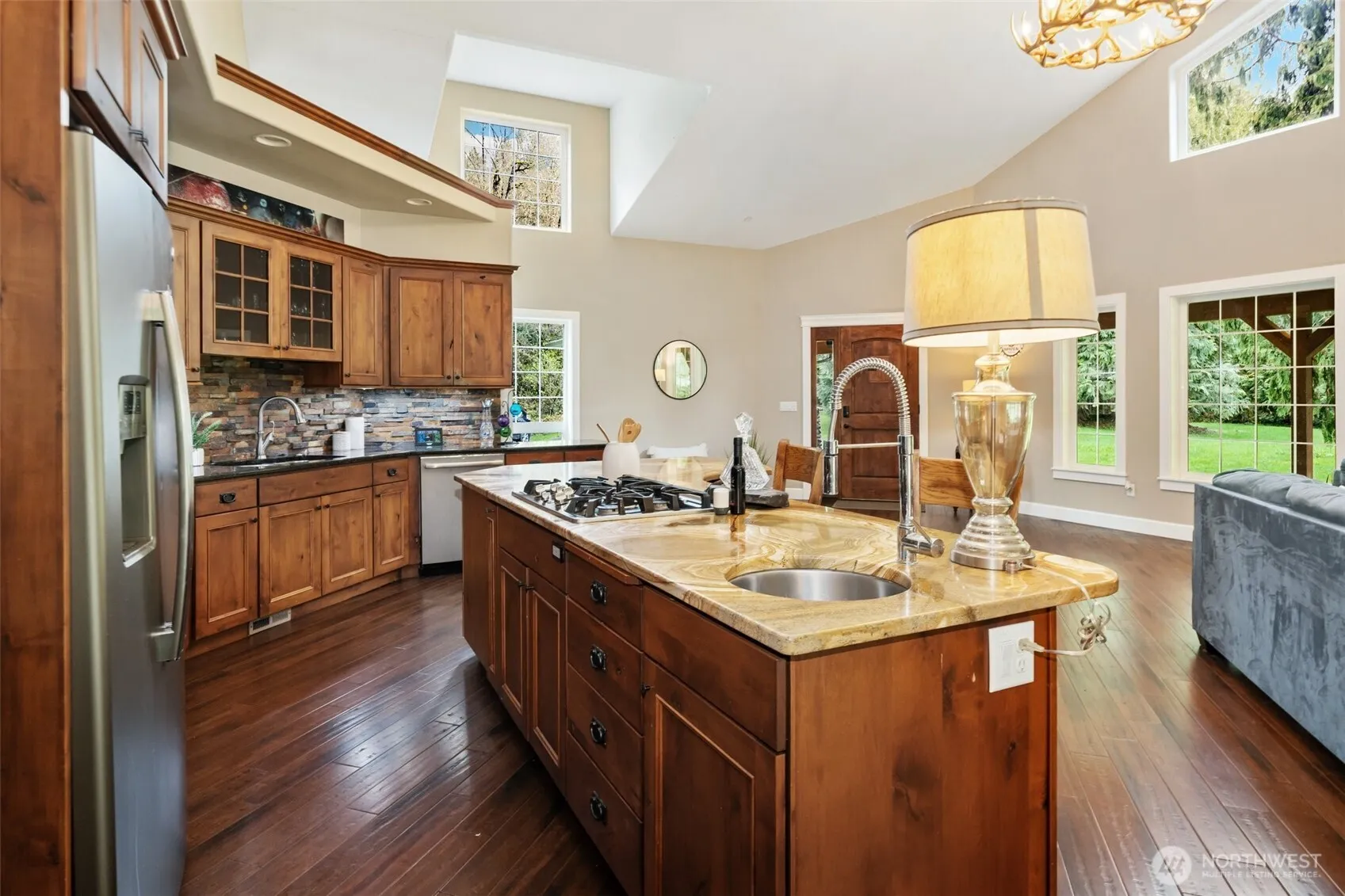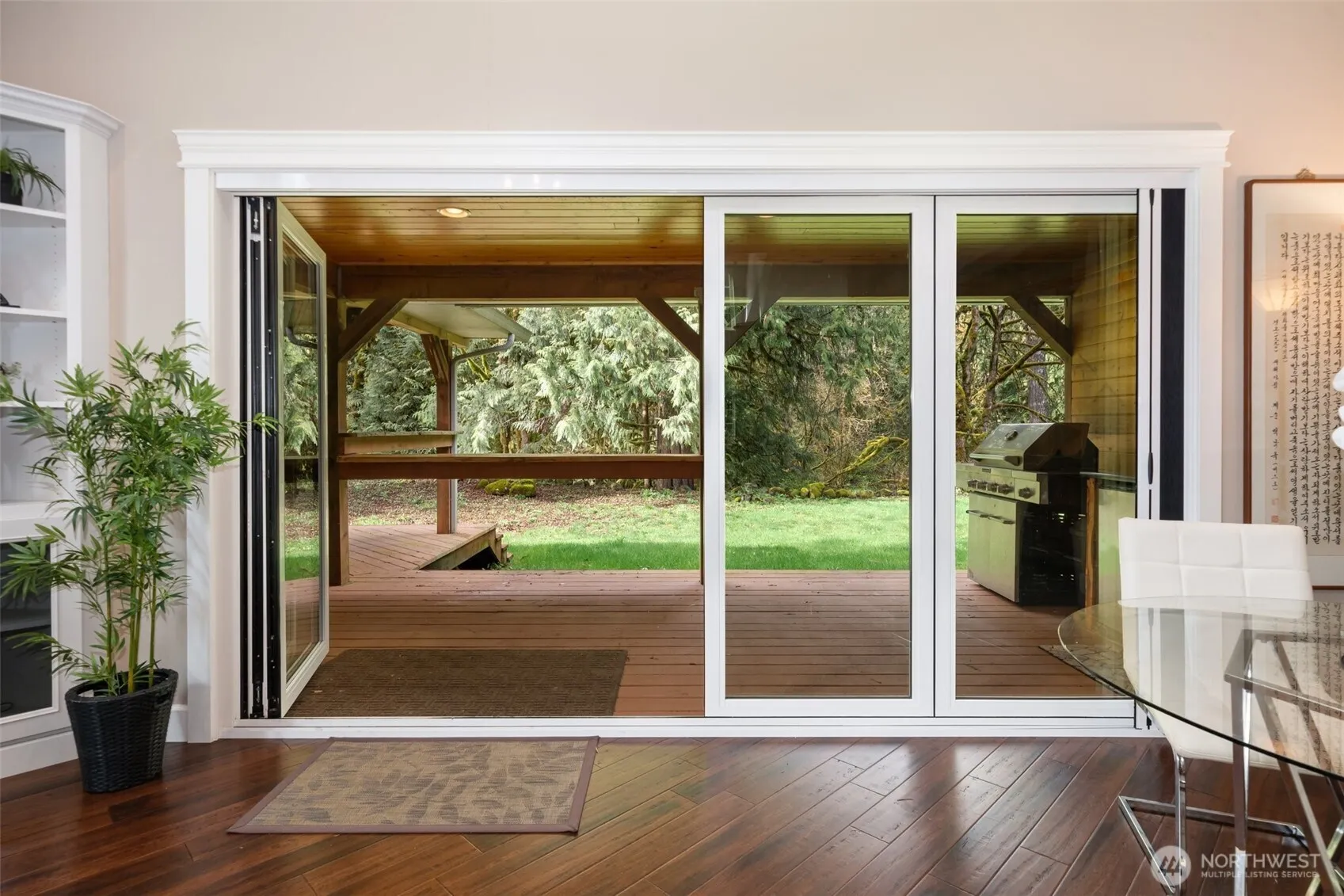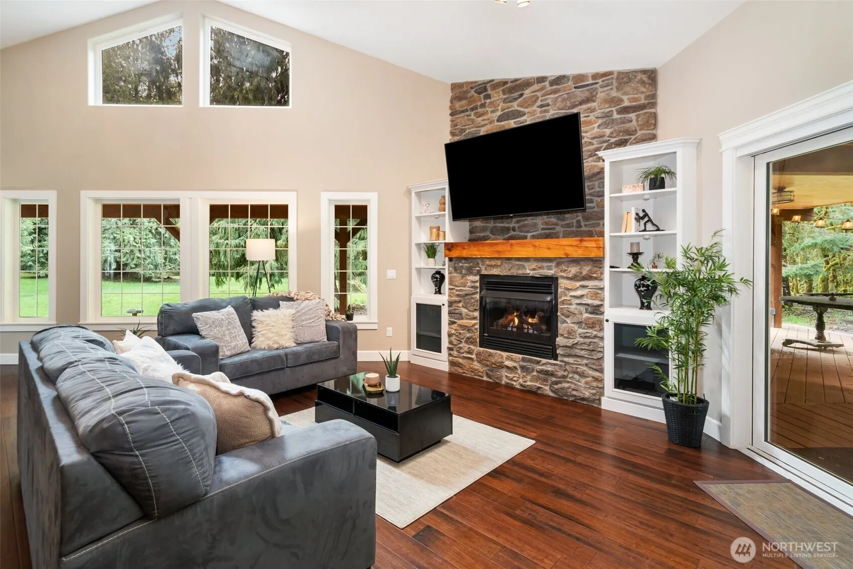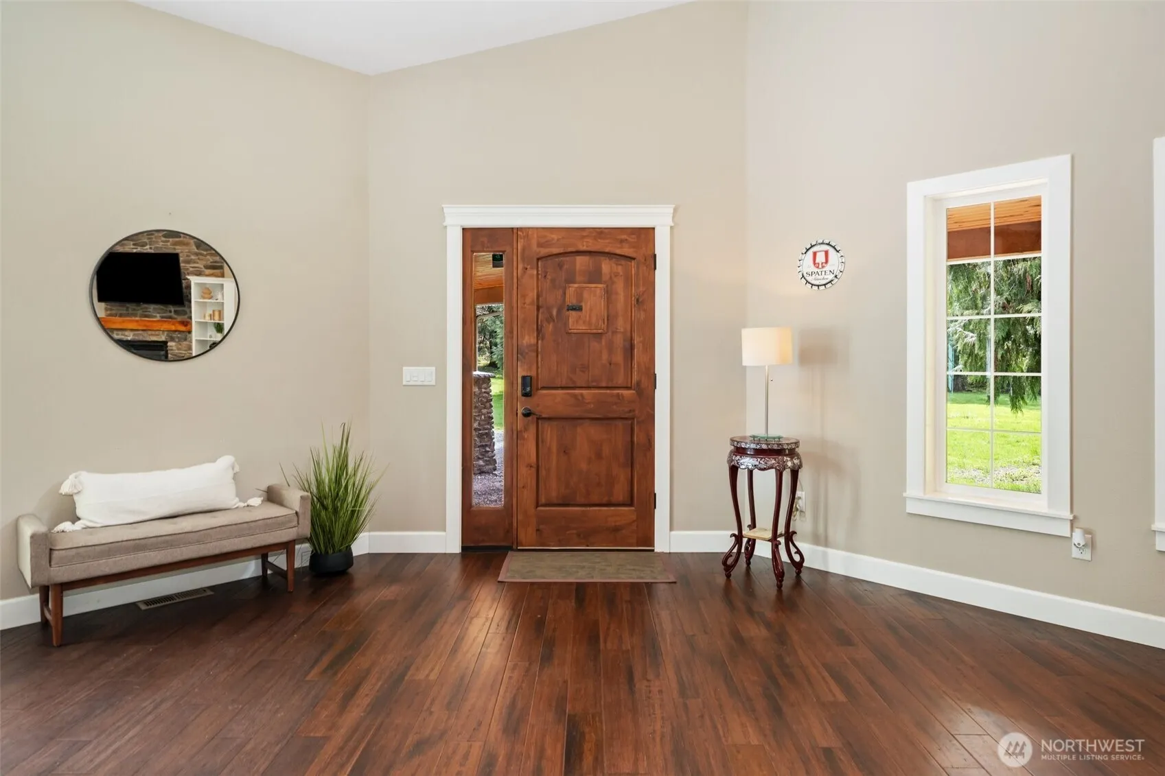 Discover privacy and peace on this 5.49-acre gated estate along Cedar Creek, featuring 300 feet of protected salmon-spawning creek frontage. Surrounded by lush forest, this Pacific Northwest retreat offers space for multi-generational living with potential for two ADUs. Enjoy a wrap-around porch, outdoor kitchen, and wood-burning fireplace. Inside, the kitchen showcases petrified wood and granite countertops with folding sliders to outdoor spaces. The main-floor primary suite has private deck access and forest views. A nearly 1,100-sq-ft barn with electricity, RV hookups, and 220V power adds flexibility. Nature, comfort, and opportunity await.