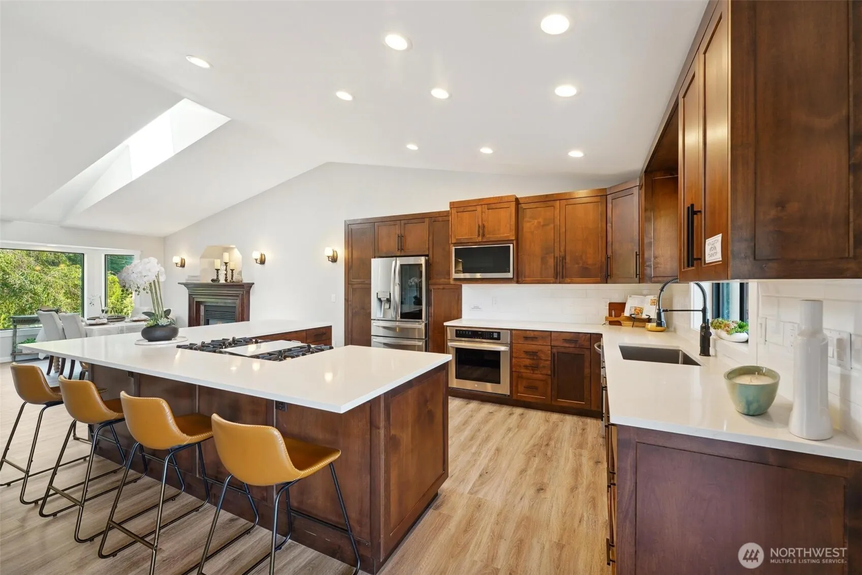 Experience luxury lakefront living on Lake Tapps! This better-than-new 3 bed, 3 bath home boasts vaulted ceilings, expansive quartz island, beautiful custom cabinets, new stainless appliances, built in wireless speakers and a expansive wrap around Trex deck, perfect for entertaining. Stroll the paved path to your private dock with boat lift and storage shed. Includes insulated spacious shop w/ (4) 220 outlets a carport and tons of attic storage. Nu-Ray Lifetime Metal roof, Hardy plank siding, fresh paint. New carpet and wide plank luxury vinyl flooring. Stay comfortable year round with A/C and generator hook-up for possible winter power outages. -just minutes to schools, restaurants, towns and Hwy 167 on a quiet dead-end street.