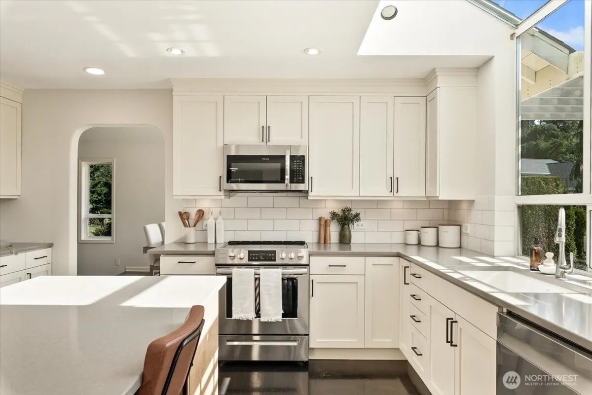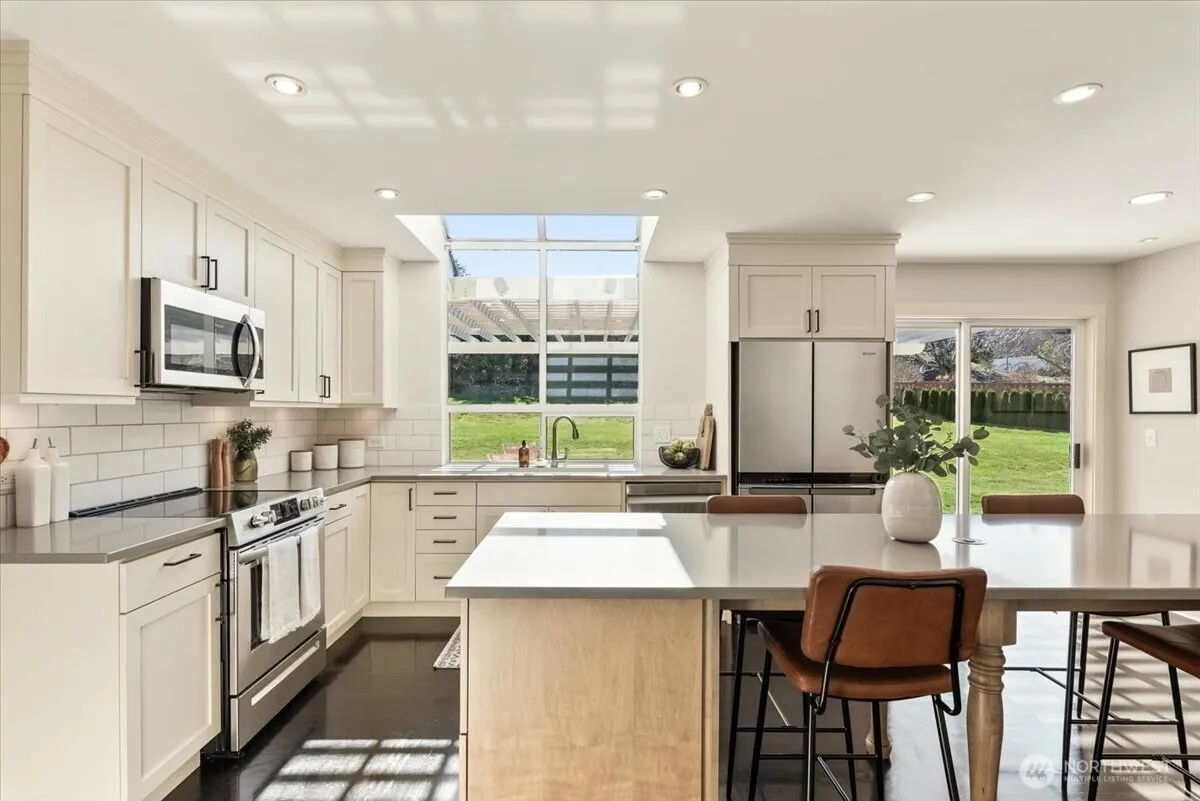 The High Life awaits you at Utsalady! This lovely,light & bright oasis has a HUGE new designer kitchen, all stainless appliances, coffee station/wet bar, walk-in pantry: A Great room concept. Office off the grand foyer, Formal living & dining rms—beautiful main floor flow is pure luxury, comfort and efficiency:an entertainer’s dream come true! Up: Primary w/walk-in & custom built-ins, en suite 5-pc bath w/huge soaking tub & separate shower, double vanity & water views! Newly updated guest bath & 2 more generous B/R+tons of bonus storage & closets. Gleaming hardwood floors, vaulted ceilings, storage galore and a newer roof. A sunny 1/2 acre w/decks, patios, varied gardening & play spaces, even a dedicated wildlife habitat. You’ve arrived!
