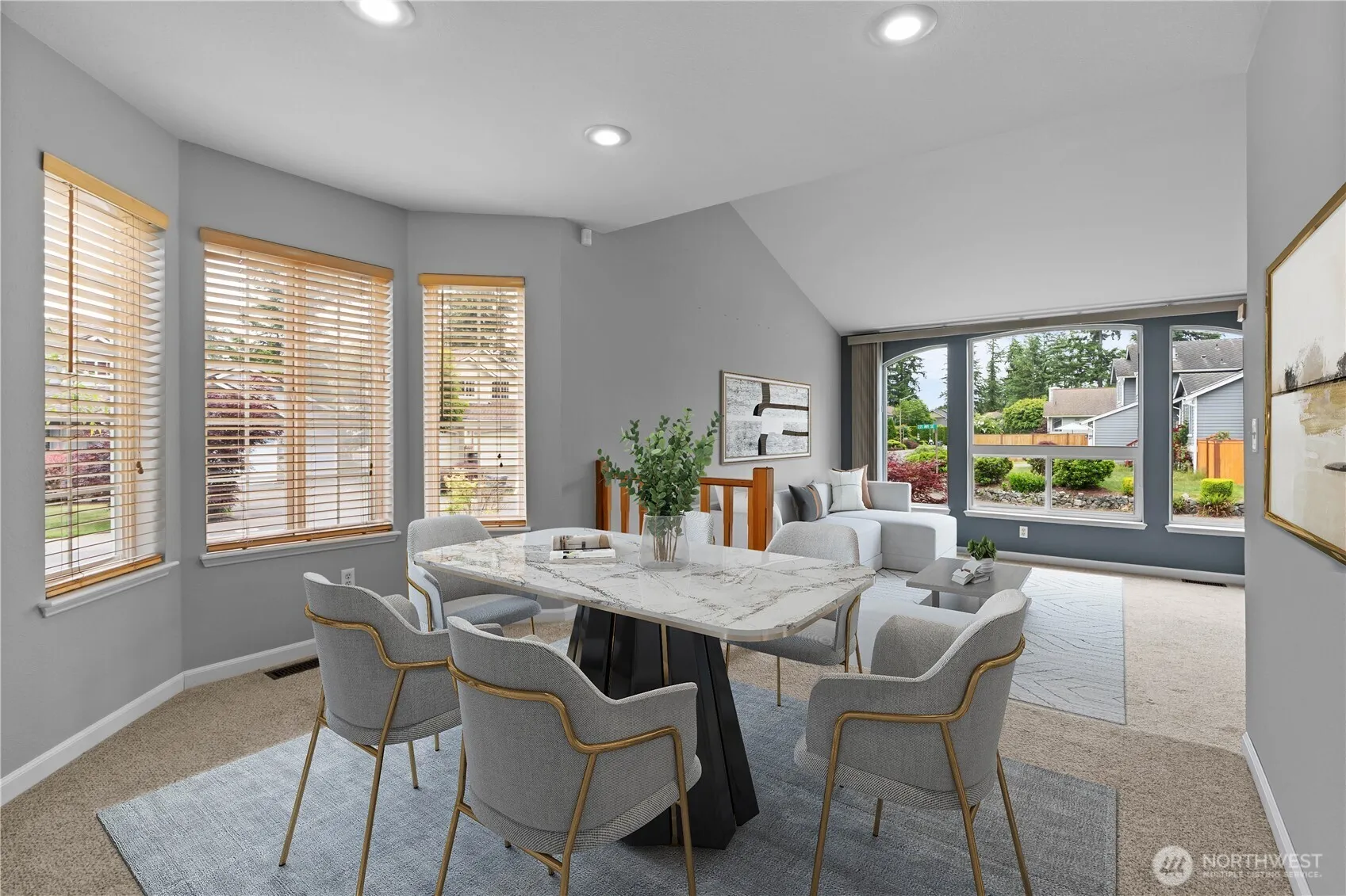 Beautifully updated 4-bed, 2.5-bath home on a sunny corner lot in Maple Valley! This spacious home features a 3-car garage, presidential roof, & central A/C for year-round comfort. Inside, you’ll find vaulted ceilings, durable LVP flooring, & an open layout filled with natural light. Modern kitchen boasts white shaker cabs, quartz countertops, & stainless appliances. Perfect setup for cooking & entertaining. Cozy up by the fireplace or step outside to a large Trex deck, ideal for relaxing or hosting gatherings. The primary suite offers a quiet retreat with great space & style. Located in a peaceful neighborhood close to parks, trails, & highly rated schools. This move-in-ready home combines comfort, upgrades, & an unbeatable location!