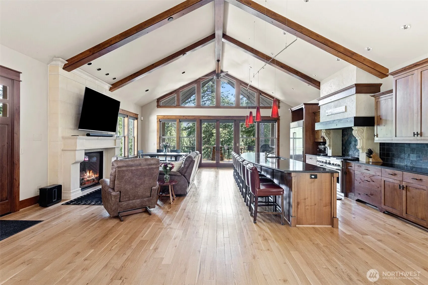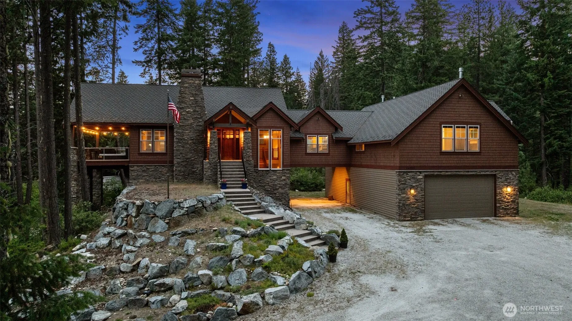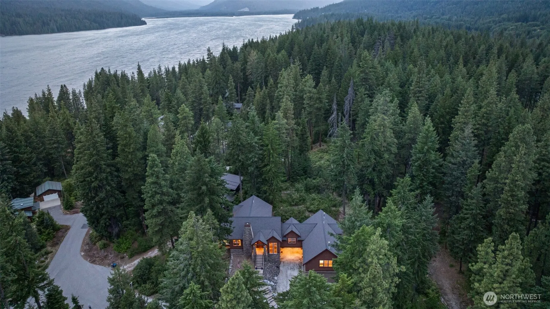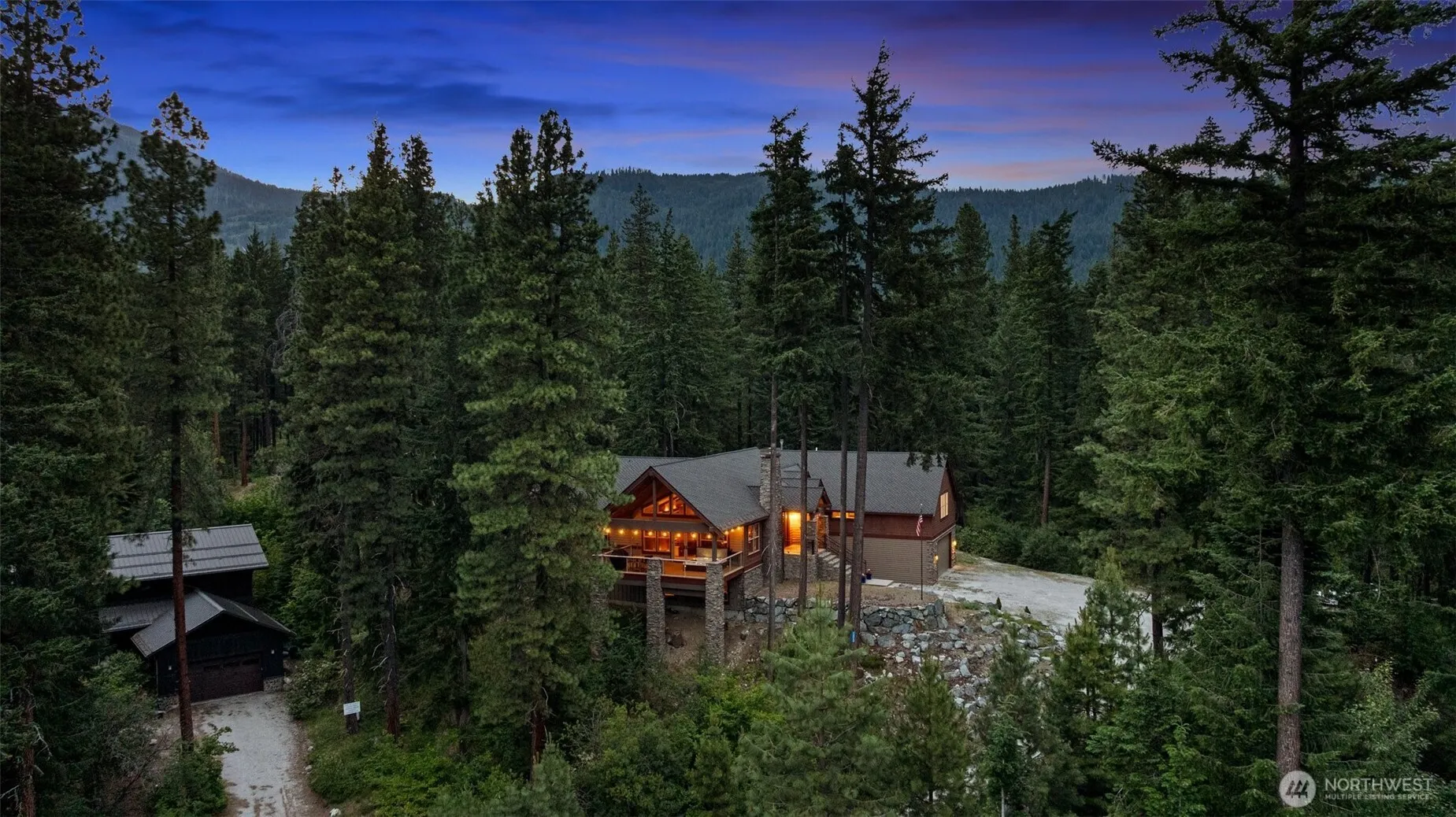 Nestled above the serene shores of Lake Wenatchee, this exquisite NW Craftsman offers unparalleled luxury & tranquility. Spanning 5,279 sq ft on a private 1-acre lot, the residence boasts a seamless open-concept design, highlighted by a grand 16-foot kitchen island for entertaining guests. The expansive owner’s suite serves as a personal retreat, featuring a spa-like en-suite bathroom and a generous walk-in closet. Additional amenities include a newly installed sauna, private wine tasting room with cellar, and spacious media room on the lower level. A drive-through six-car garage, equipped with heating and air conditioning, provides ample space for vehicles & recreational equipment. A private trail leads directly to a nearby public beach