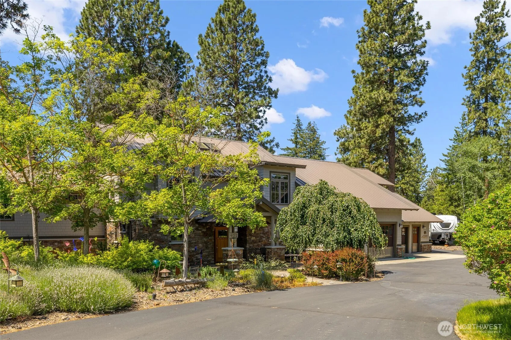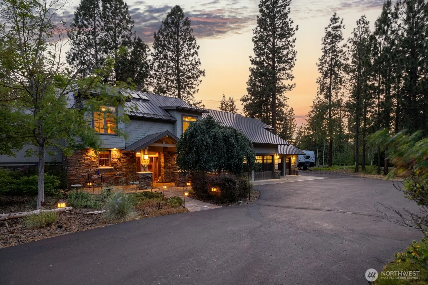 Designed by Baylis Architects, this unique river home situated on a gated 8+ acre parcel is elegantly crafted with a timeless, rustic style. Every inch of this home is thoughtfully finished from top to bottom. Enjoy 3 bedrooms, a large game room, office, and a great room with vaulted ceilings, stained glass accents and handcrafted stone fireplace. Master suite with walk in closet, sunken shower and fireplace has direct access to the patio. From the great room to the kitchen, a wall of windows frames a forested river view and a massive 2-tiered patio with a hot tub and fire pit accented with stonework, all just steps away from the river. Attached heated 3 car garage, plus a detached 2 car, heated garage for all the toys. Fenced garden space.