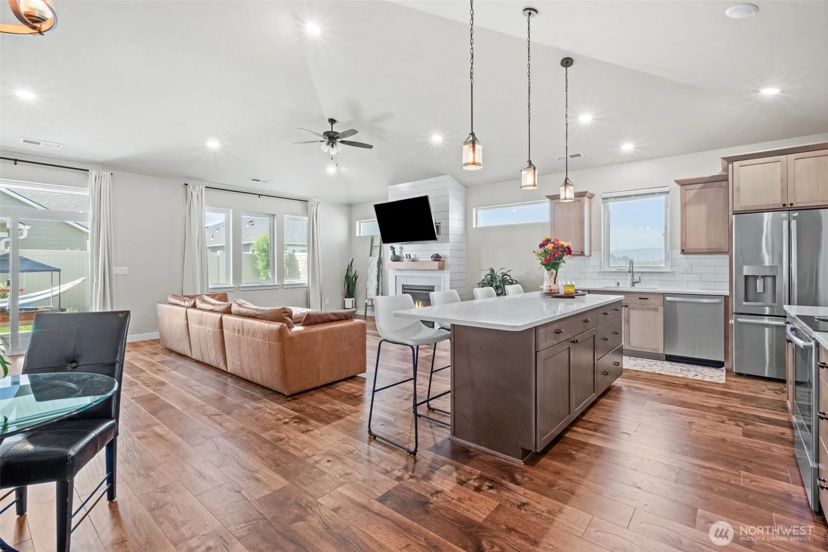What a find! Gated community-all of the landscaping & snow removal taken care of by the HOA at low cost of $175/mo. The home built by Devoted Builders, a pay attention to detail, quality, top-notch builder. The home has 9′ ceilings w/ vaulted ceiling in the first bedroom & also in the great room/dining/kitchen area. Huntwood soft-close beautiful cabinets, quartz counter tops throughout, special feature of shiplap walls framing wonderful propane fireplace, large island for counter seating & rolling out those yummy cinnamon rolls. Laminate flooring, stainless steel appliances, special Huntwood bench to sit to take off shoes. Location of this fantastic gated neighborhood is perfect. No age restriction. Call today!