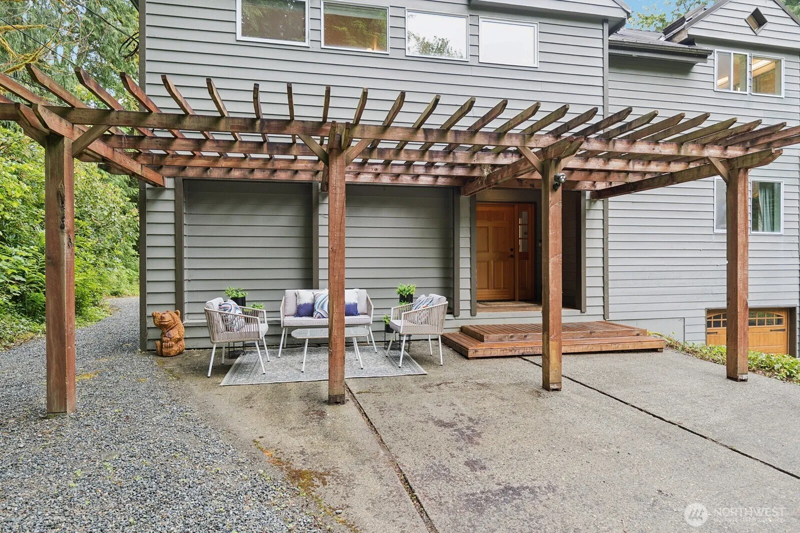Tucked in the forest, this 7+ acre North Bend retreat offers a rare blend of nature, comfort & functionality. Explore the private pond, meadow & access to Christmas Creek—perfect for nature lovers & outdoor living. Inside, vaulted ceilings, hickory hardwoods, & oversized windows invite warmth & light throughout. Two cozy wood fireplaces enhance the ambiance. The thoughtfully updated kitchen includes granite counters, SS appliances, a farmhouse sink & soft-close cabinets. Two dedicated offices offer flexible work or creative space. Step outside to a huge deck & covered balcony ideal for entertaining. A 2-car garage with workshop & a 30’x40′ heated, air conditioned, & insulated shop provide storage, workspace, or business potential.
