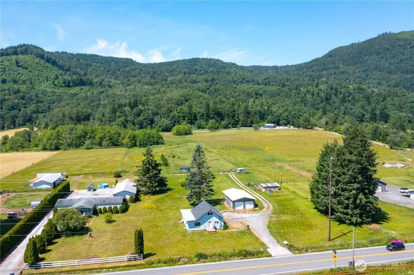 Build your dream home on this beautiful 6.89-acre parcel! Gently sloped with flat areas, this cleared property features a newer two-bay shop and approved 3-bed septic. Great for equestrian, hobby farming or private estate. Good soils, full sun exposure and stunning mountain views. Utilities include well, power and cable. Located just minutes from incredible outdoor recreation—world-class fishing, Silver Lake Park, Mt. Baker Ski Area, hiking trails and mountain biking—this property offers the lifestyle you’ve been dreaming of. Soak in the breathtaking mountain views, breathe in the fresh country air & settle into the peace and privacy of the valley. NOTE: Existing, 1915 built 1,088 SF home is not habitable. Needs complete rehab or removal.