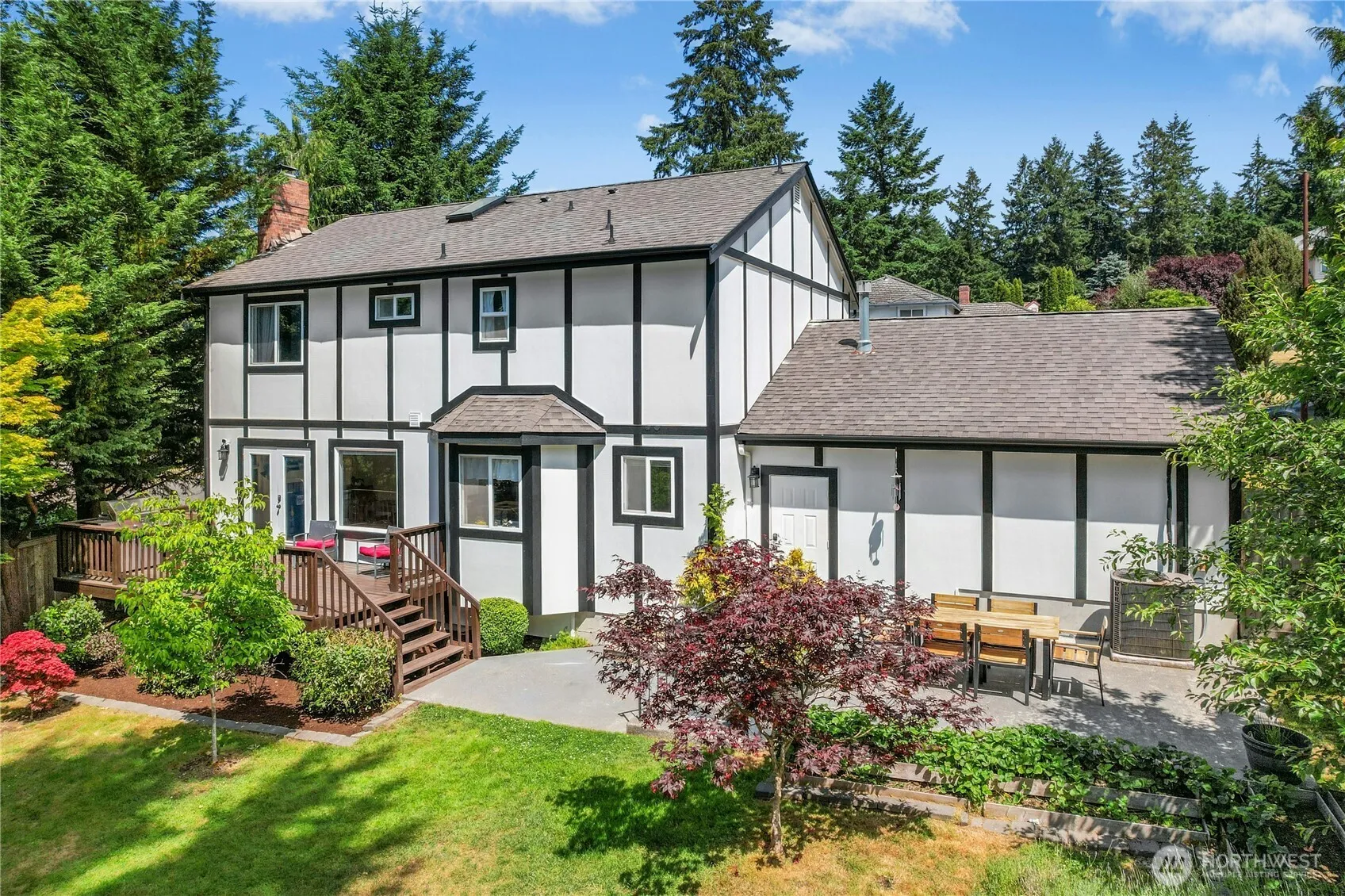 Welcome to this beautiful English Tudor home in the sought-out Cormorant Passage neighborhood. As you step inside, you’ll be welcomed by a bright, clean & inviting space w/fresh paint. Traditional formal living & dining room. Kitchen w/newer SS appliances connected to family room w/cozy fireplace. French doors leading out to large deck overlooking the spacious fully fenced parklike backyard w/mature landscaping, lush lawn & peaceful setting on a quarter acre lot. Upstairs an expansive primary suite offers WIC closet, updated ensuite bath & an adjoining den. Two large additional bedrooms & bathroom provide ample space. Boasts A/C, newer roof & siding for a fresh look. Top rated schools. Mins to I-5, JBLM, downtown Steilacoom, lakes & Sound.