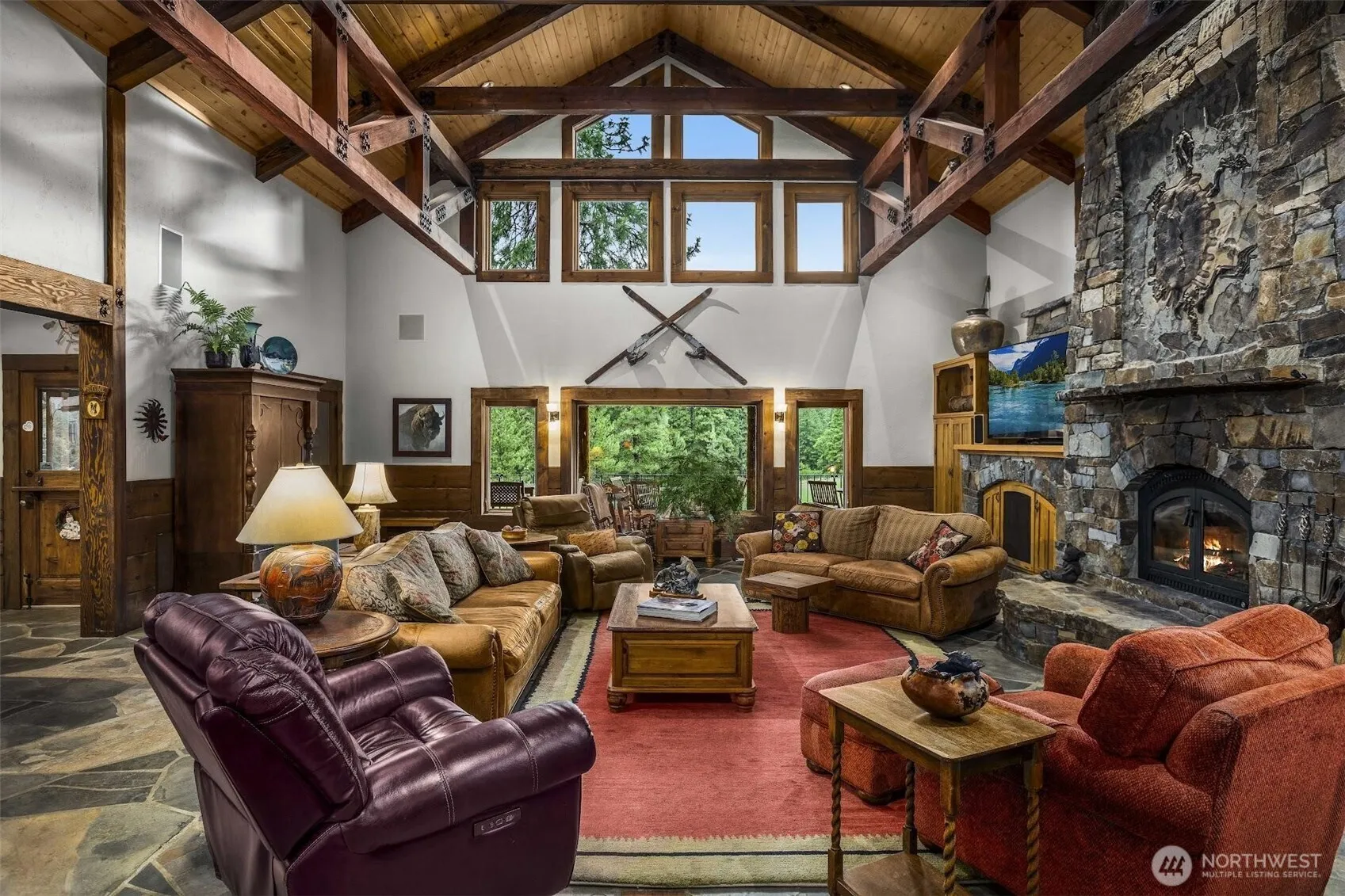 The Dalles Ranch Sets Majestically Amongst Stands of Scattered Pines. Overlooking Ponds, this Stunning Lodge Provides Ultimate Seclusion. Unobstructed View Of Mt. Hood In All It’s Glory. Ideal for Large Gatherings, Retreat & Events. Floor to Ceiling Stone Fireplace & Walls of Windows, Large Open Beams. All Bedrooms Have Private Baths. Theatre Room on Lower Level. All Spaces Open to Outdoors Via the Warp Around of Covered Porches. Far From the Hustle of the Outside World. Realize Paradise! 40 Minutes SW of The Dalles.